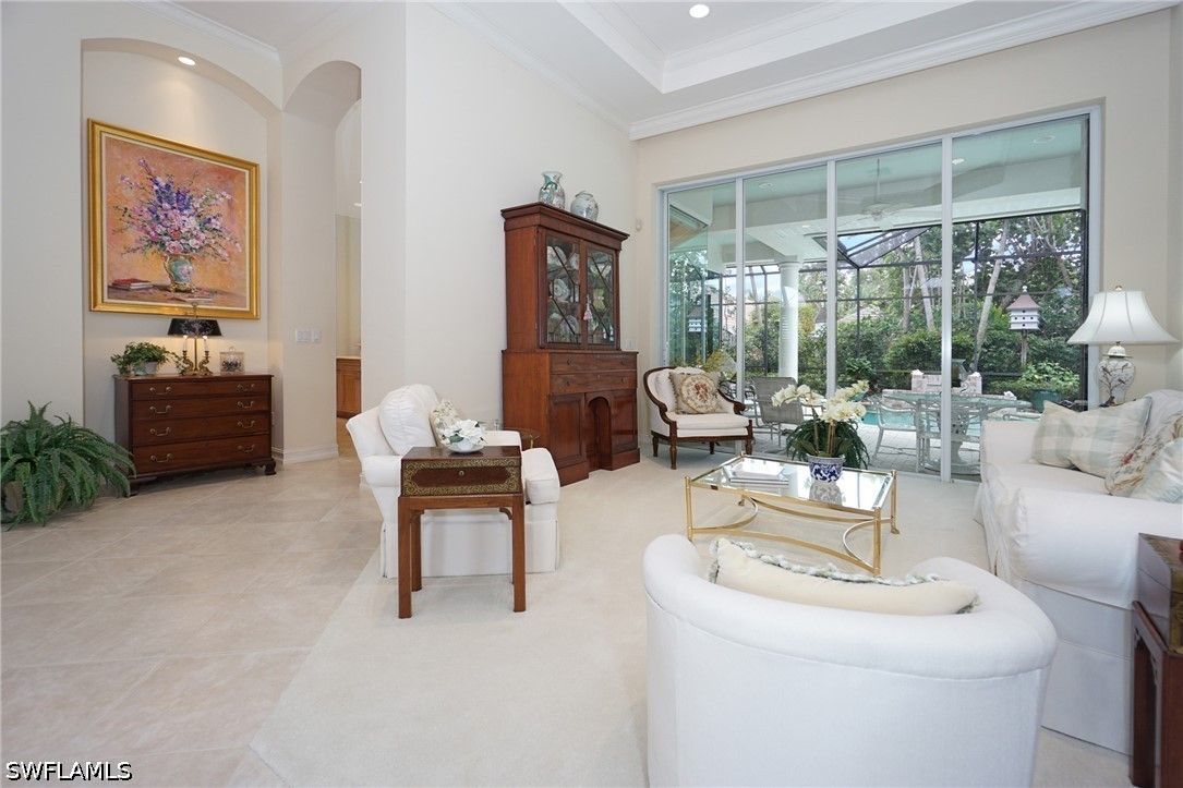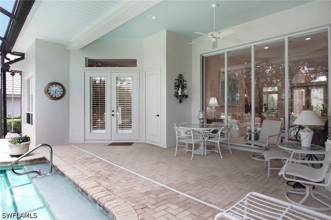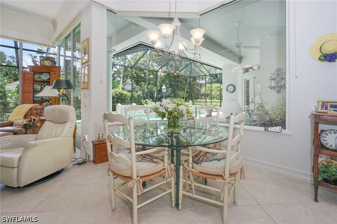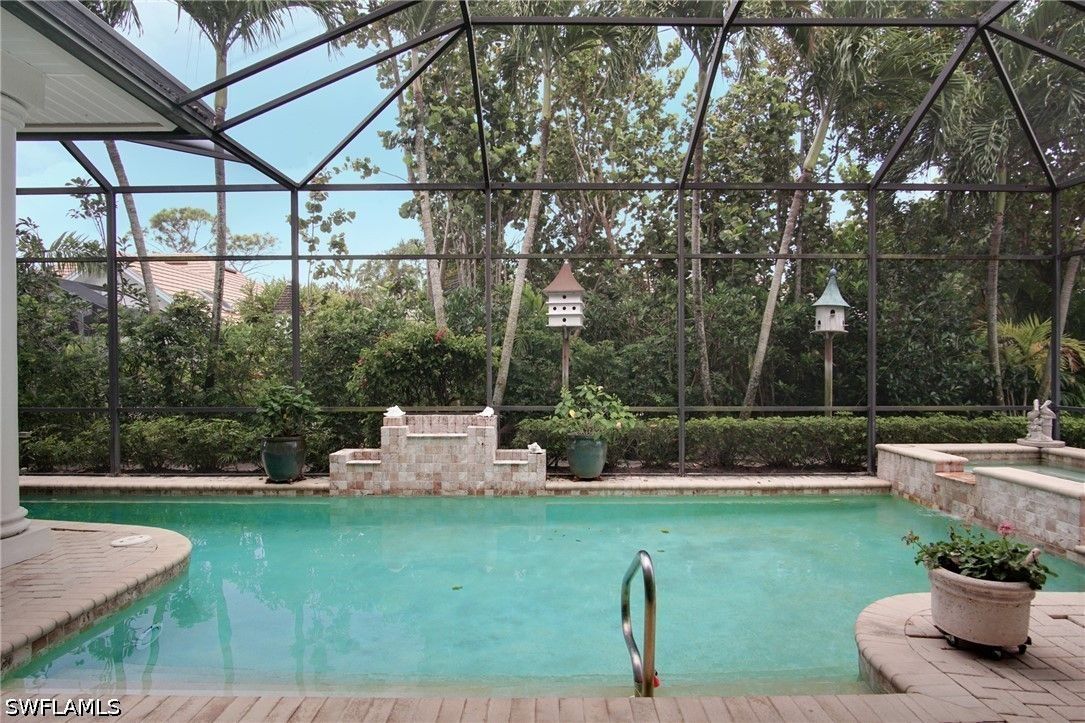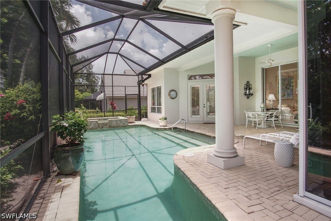 Lovely home with a bright southern exposure. Situated on the 700 block in Oakmont steps to the walking path and Oakmont lake. Interior features include a bright open floorplan, volume ceilings, 8 foot doors, updated kitchen, flooring and baths. Exterior features include a screened lanai with pool and spa overlooking lush tropical flora. Pelican Bay amenities include miles of walking paths, three miles of beachfront with two private pavilions. Kayaks, canoes and sunfish, Fitness center, 18 tennis courts and pickleball. All for resident use. Centrally located between the upscale Waterside Shops, Restaurants and the Ritz Carlton Beach Resort. The is Florida Resort living at its best.