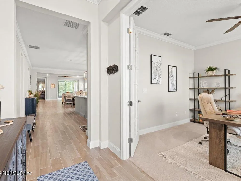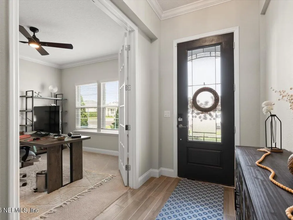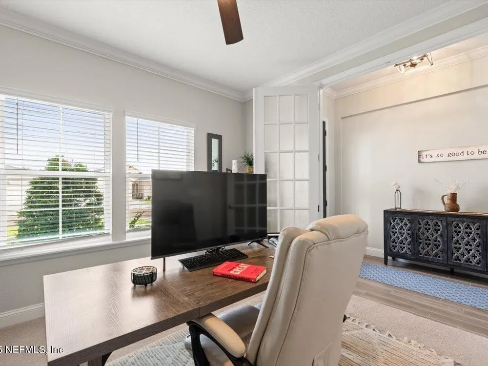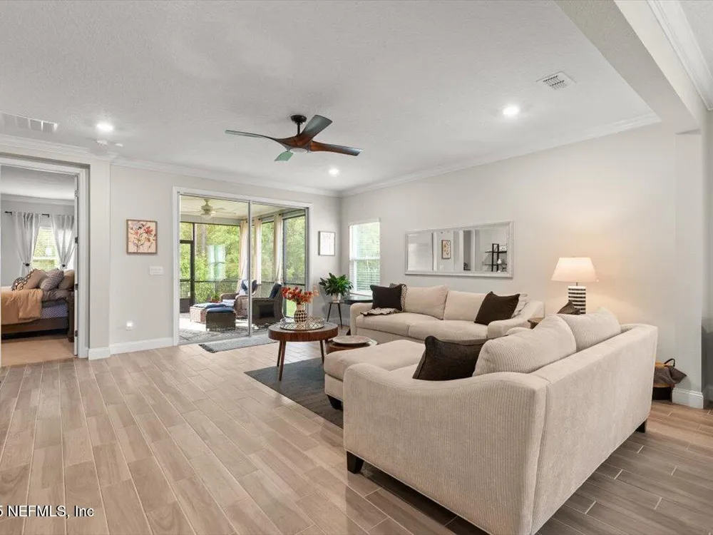Love to Golf? Stillwater was named ''Development of the Year'' By Golf Inc. Magazine. Each homeowner has a Golf Club Membership (all green fees included), full resort style amenities & NO YARD MAINTENANCE! All included! This is where luxury meets low-maintenance. St. Johns' premier 55+ active adult community. This Sierra floor plan boasts 4 bedrooms, a private study, 2.5 baths, and a 2-car garage, offering plenty of space for comfort, hobbies & guests. Better than new, this home is loaded with thoughtful upgrades, including ceramic wood-look tile in all wet areas, extended into the family room, dining area, and hallways for a seamless & stylish look. Crown molding adds a refined finish throughout, and a tankless gas water heater provides energy-efficient hot water on demand. Living in Stillwater means embracing an active, resort-style lifestyle. Enjoy exclusive access to a championship golf course, resort-style clubhouse with a restaurant and bar, a state-of-the-art fitness center with aerobics studio, plus pickleball & tennis courts, a sparkling pool & picnic areas for outdoor gatherings. This home has it all. Architects: Bobby Weed Golf Design