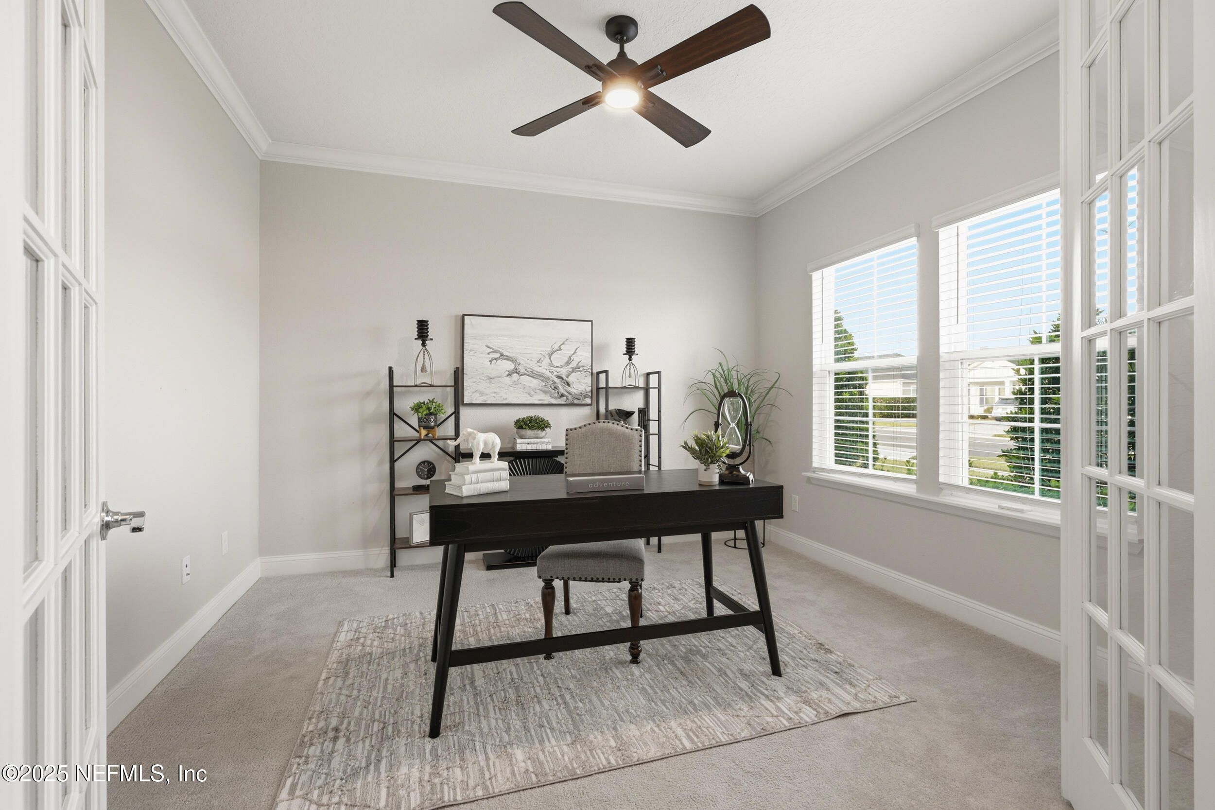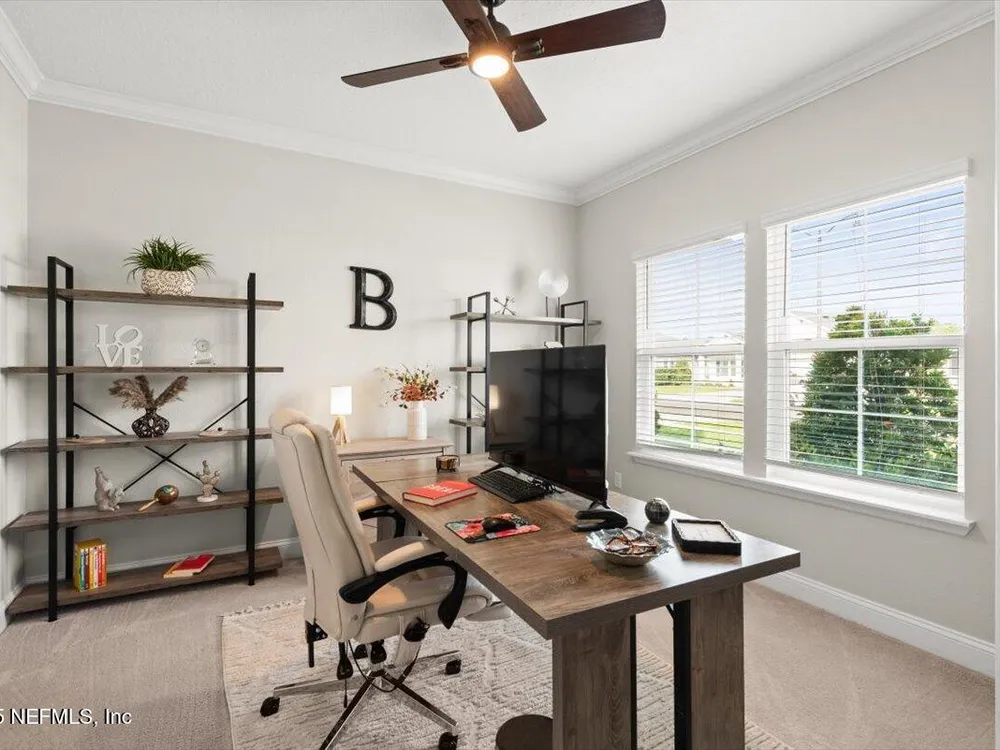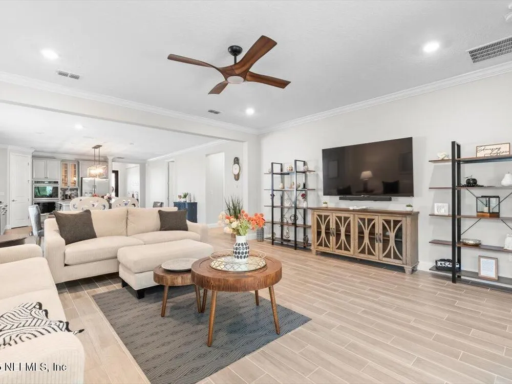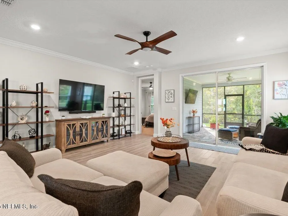 Love to Golf? Stillwater was named ''Development of the Year'' By Golf Inc. Magazine. Each homeowner has a Golf Club Membership (all green fees included), full resort style amenities & NO YARD MAINTENANCE! All included! This is where luxury meets low-maintenance. St. Johns' premier 55+ active adult community. This Sierra floor plan boasts 4 bedrooms, a private study, 2.5 baths, and a 2-car garage, offering plenty of space for comfort, hobbies & guests. Better than new, this home is loaded with thoughtful upgrades, including ceramic wood-look tile in all wet areas, extended into the family room, dining area, and hallways for a seamless & stylish look. Crown molding adds a refined finish throughout, and a tankless gas water heater provides energy-efficient hot water on demand. Living in Stillwater means embracing an active, resort-style lifestyle. Enjoy exclusive access to a championship golf course, resort-style clubhouse with a restaurant and bar, a state-of-the-art fitness center with aerobics studio, plus pickleball & tennis courts, a sparkling pool & picnic areas for outdoor gatherings. This home has it all. Architects: Bobby Weed Golf Design