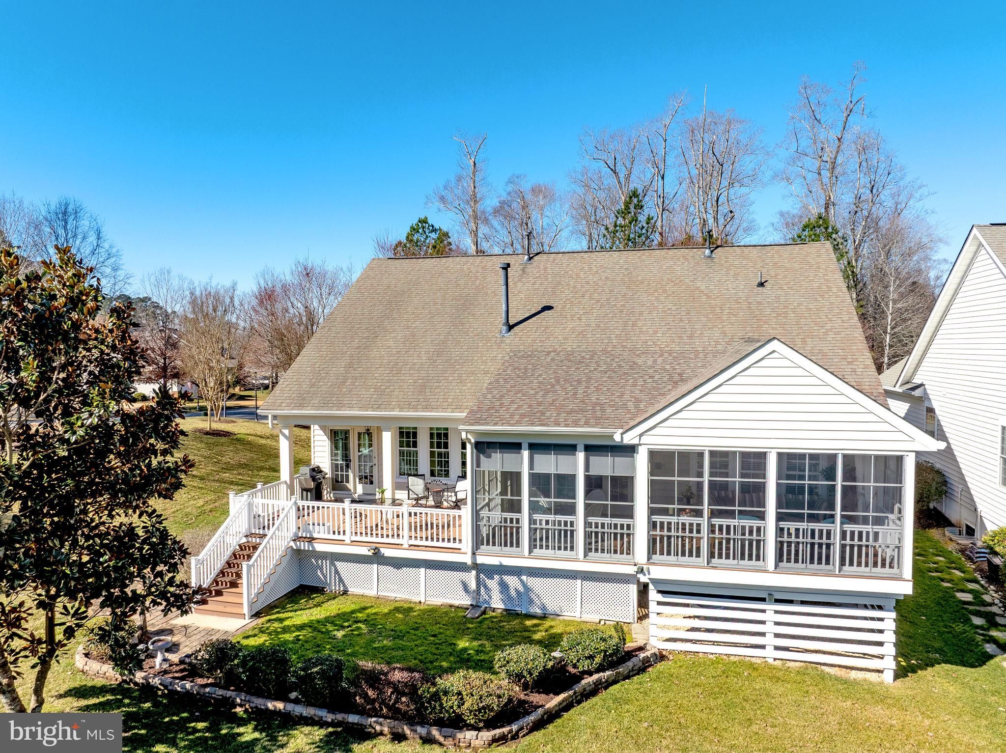 Tucked within one of the most private and peaceful settings in sought-after 55+ Colonial Heritage, this elegant residence blends refined main-level living with exceptional entertaining space. A dramatic atrium entry showcases vaulted ceilings, a striking central staircase, abundant natural light, and beautiful golf views. The main level offers a private guest suite with full bath and office/optional bedroom, along with a serene primary retreat featuring vaulted ceilings, generous closet space, and a spa-inspired bath. Gracious living and dining spaces are anchored by a double-sided fireplace and flow into the beautifully updated kitchen with newer stainless steel appliances, breakfast area, reading nook, and lovely golf and garden views. The two-tier all-season porch with Eze-Breeze is a true retreat. The lower level offers expansive entertaining space, 2 bedrooms, a full bath, and abundant bonus/storage space.