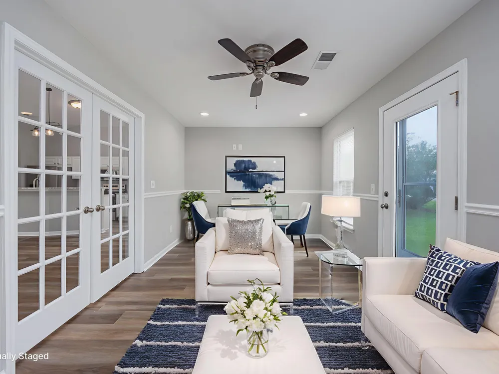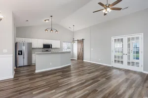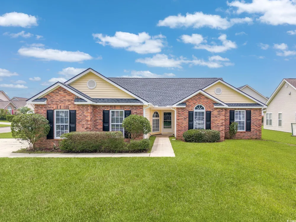 This beautifully updated single-level brick-front home is move-in ready and nestled on a spacious corner lot with a side-load two-car garage. Featuring all-new luxury vinyl plank flooring, fresh paint, and stylish new fixtures throughout, this home offers the perfect blend of comfort and modern appeal. Step inside to discover a spacious open floor plan highlighted by vaulted ceilings in the living room, creating a bright and airy feel. Just off the main living area, you’ll find a cozy Carolina room—ideal for relaxing or entertaining—as well as a dedicated office space, elegantly accented by a sliding barn-style door. The kitchen features stunning new granite countertops and stainless steel appliances! The owner’s suite is a true retreat, boasting a large walk-in closet and an en suite bath complete with a new quartz vanity, framed mirror, updated fixtures, and a walk-in shower. Both guest bedrooms include ceiling fans, and the guest bath features a matching quartz vanity and framed mirror for a cohesive look. Additional highlights include: * Finished garage floor and two windows for added natural light * Fresh, modern updates throughout the home * Vaulted ceilings for added spaciousness * Corner lot offering extra yard space and curb appeal Located in the desirable Camelot section of the Myrtle Beach Golf & Yacht Club, residents enjoy access to a range of amenities including a large swimming pool, picnic shelters, playground, and a recreational facility. All of this just a short drive from area beaches, restaurants, shopping, and attractions. Don’t miss the opportunity to make this beautiful home yours! “Some photos in this listing have been virtually staged.” Owner is SC licensed Broker/Agent.