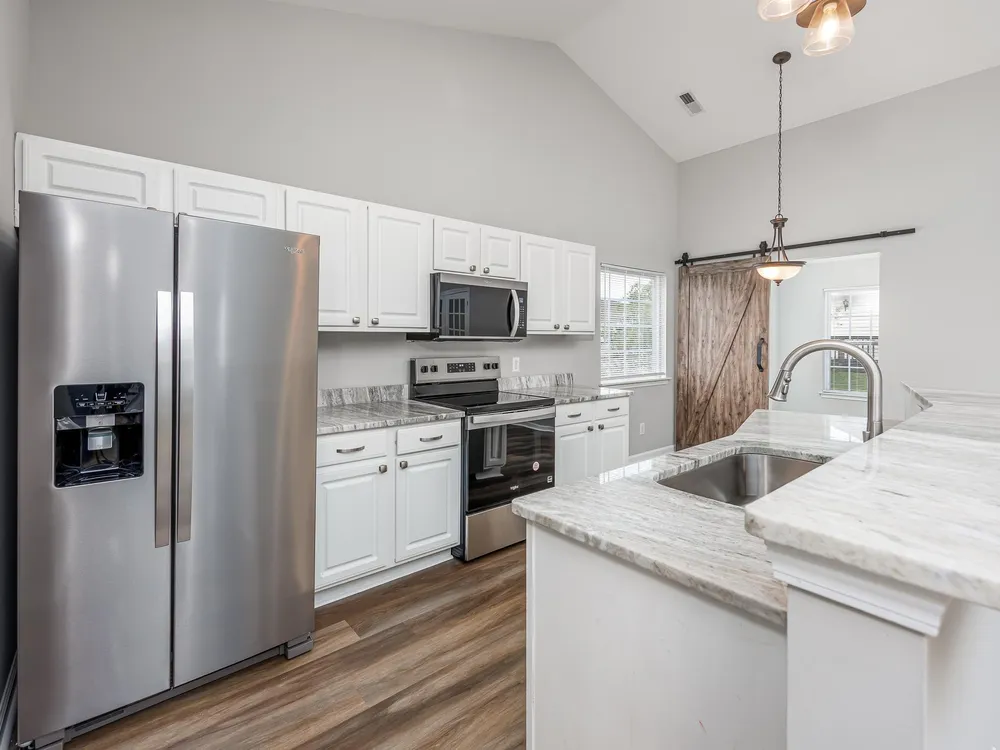 - Breakfast Bar, Bedroom on Main Level, Kitchen Island, Stainless Steel Appliances, Solid Surface Counters