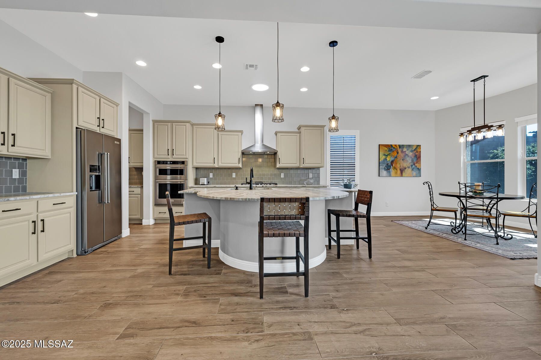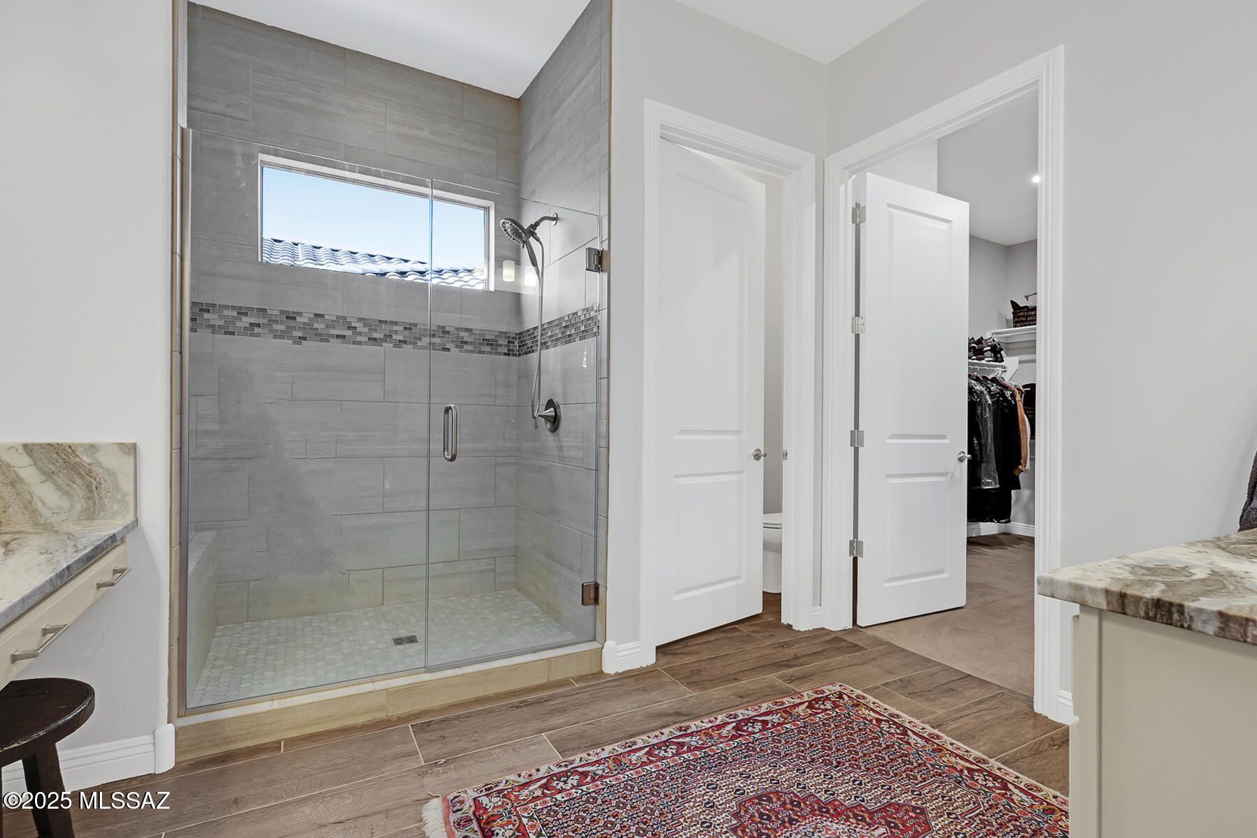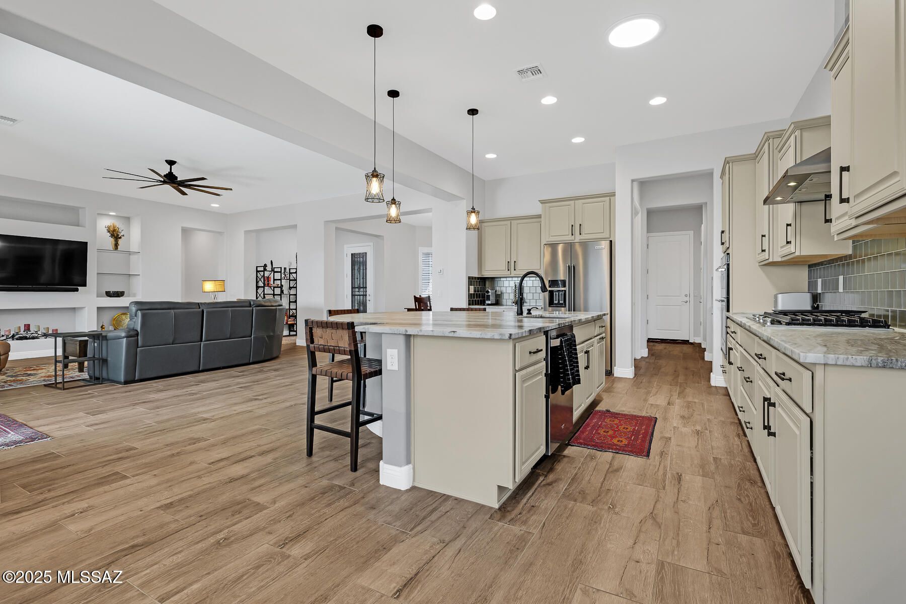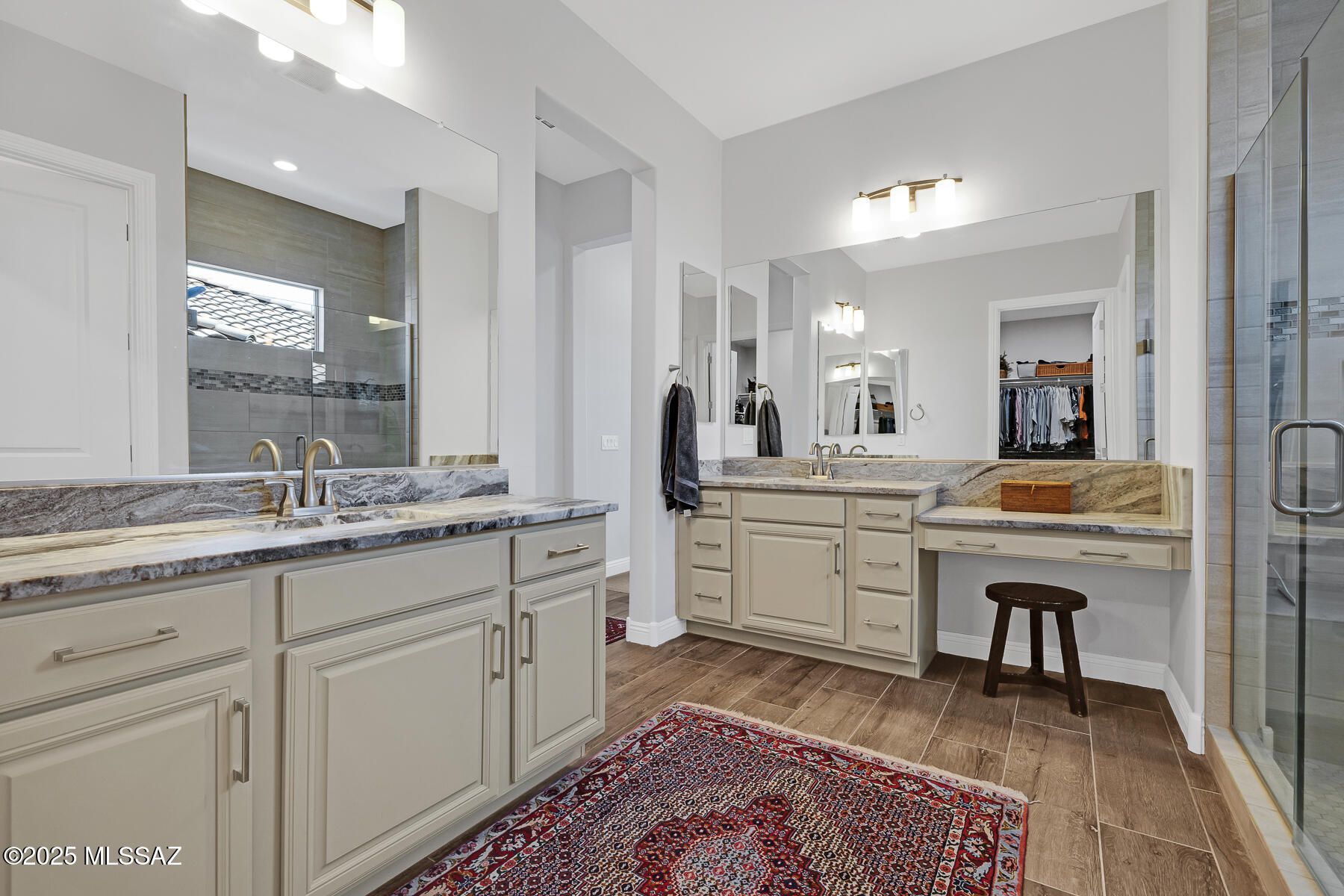 Welcome to this meticulously maintained 2BD/2.5BA (2514 sqft) Journey Model located in Del Webb at Dove Mountain active adult 55+ community. Owned solar! Step into an open-concept floor plan featuring a spacious great room, formal dining area, and a stunning chef's kitchen complete with upgraded cabinetry, premium countertops, top-of-the-line appliances, and a butler's pantry with a large walk-in pantry for extra storage. Luxurious owner's suite offers a spa-like retreat with a generous walk-in shower, dual vanities, and a spacious walk-in closet. Your guests will enjoy the comfort of a private en suite guest bedroom, while the versatile den/office includes a custom Murphy bed, perfect for accommodating visitors. Retreat outdoors to a gorgeous backyard oasis featuring a covered patio