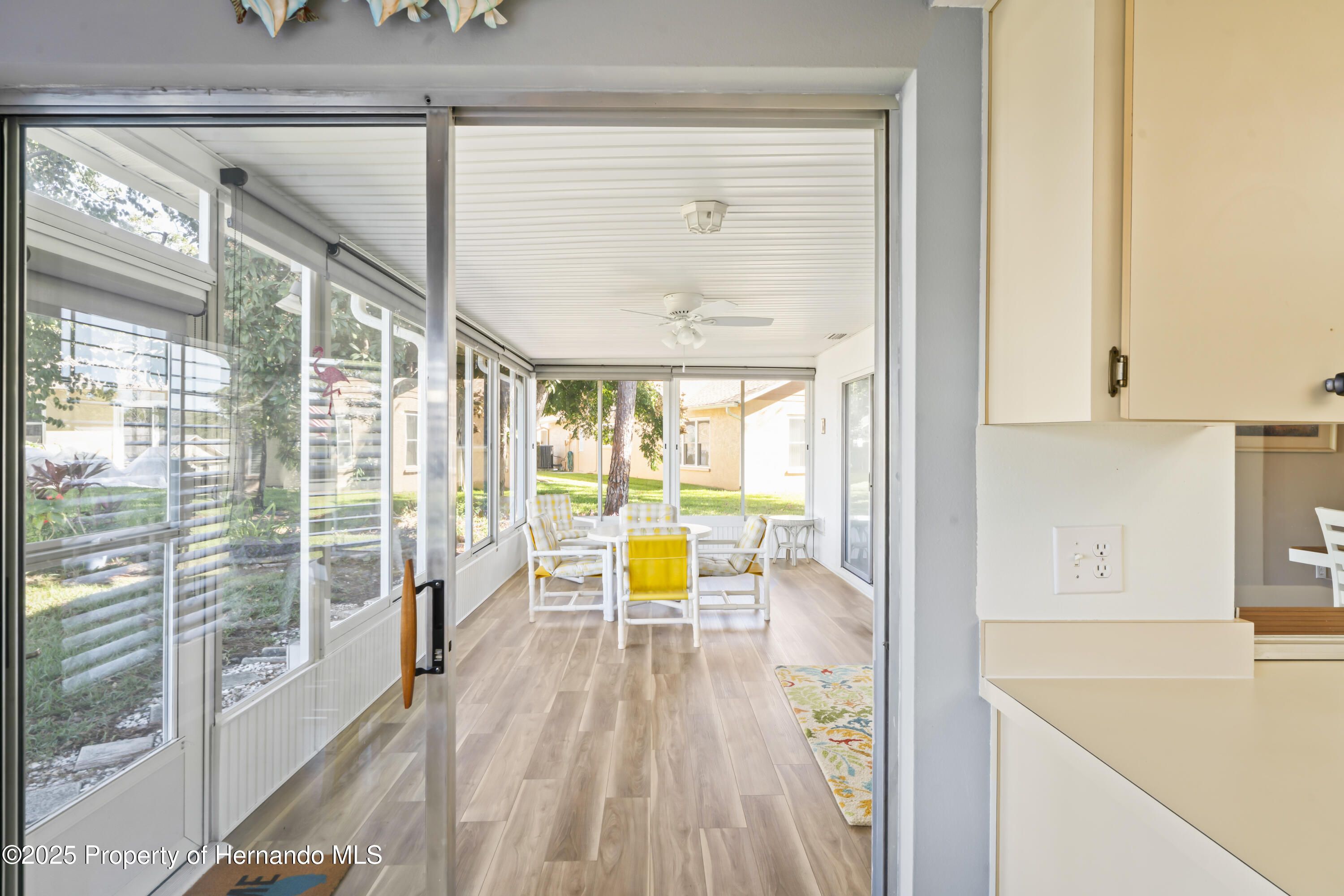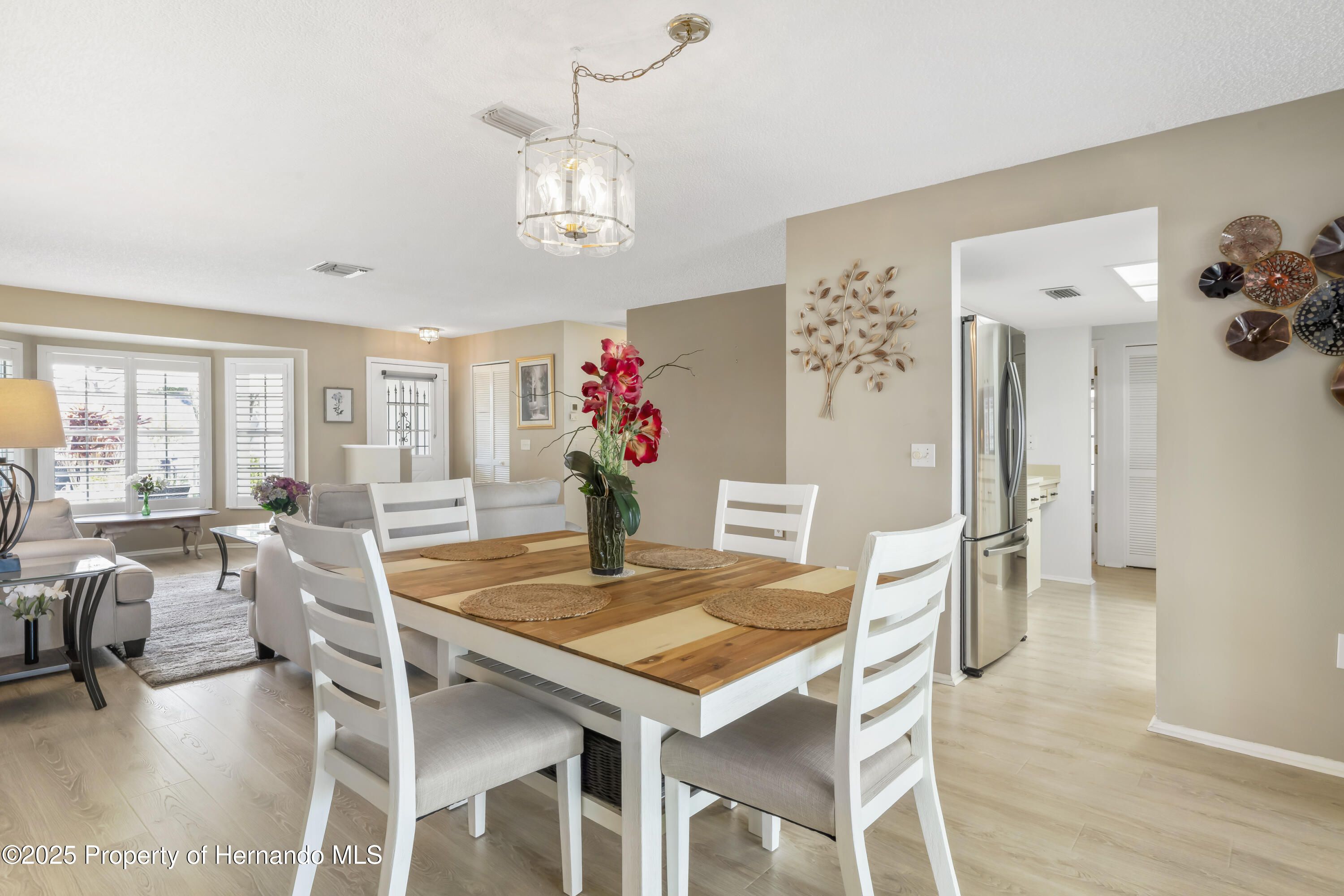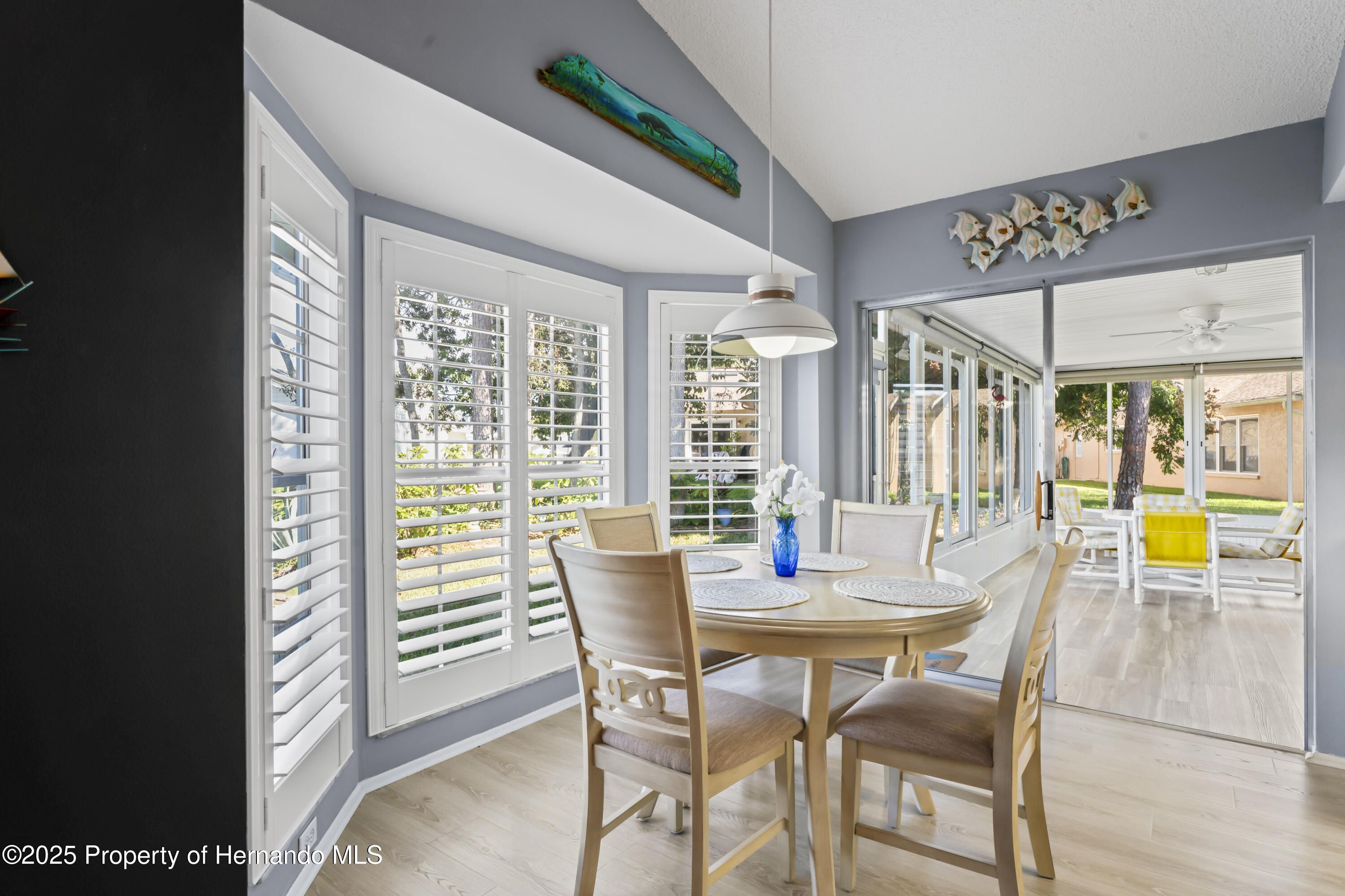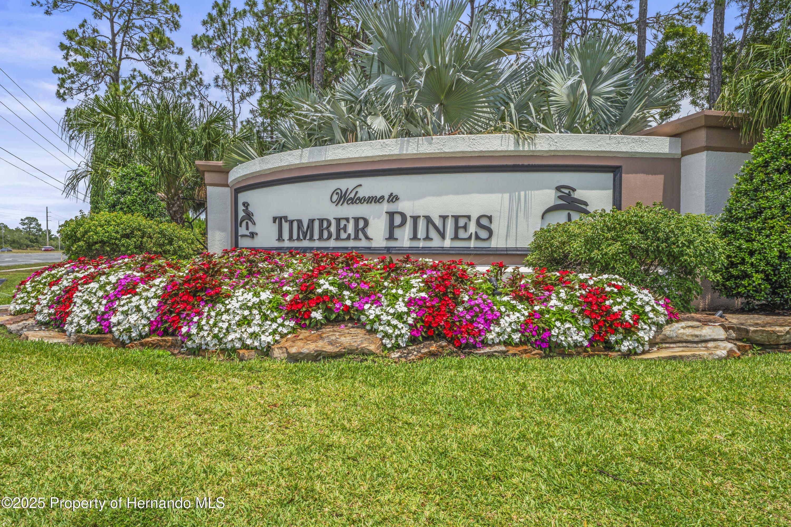Step into this bright and inviting home featuring a formal living and dining area. The split bedroom floor plan offers privacy, while the family room seamlessly connects to the kitchen. Enjoy the comfort of an enclosed lanai with both air conditioning and heating. The home boasts upgraded luxury vinyl plank flooring throughout, new appliances, plantation shutters, and a new hot water heater. The spacious two-car garage includes a GOLF CART! The very reasonable HOA fees, include security with gated community, cable TV, clubhouse access, gated golf courses, dog park, fitness center, swimming pool and spa, tennis and pickleball courts, and more, make this an ideal active adult community! The home comes fully furnished. Come and live the Florida lifestyle in Timber Pines!