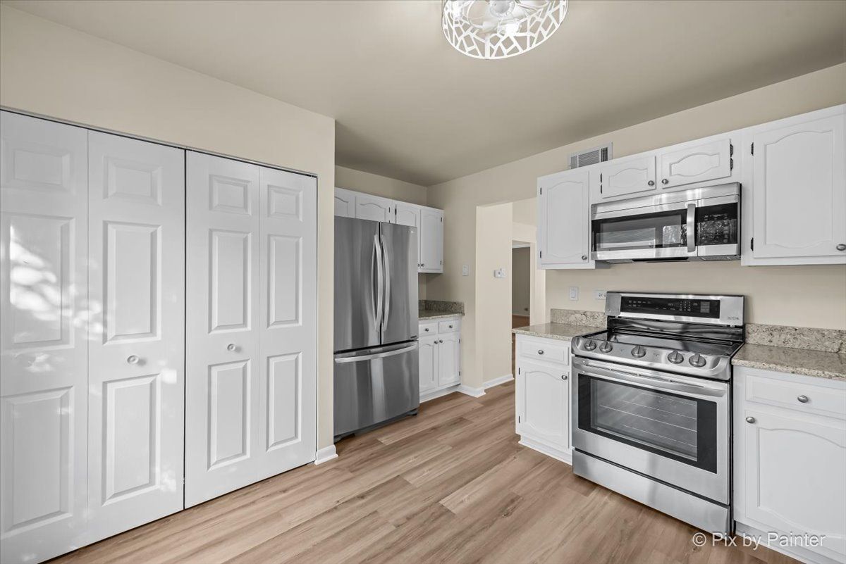 Welcome to carefree living at Leisure Village! Your next chapter begins in this beautifully updated 2-bedroom, 1-bath ranch condo where everything is taken care of and your days are yours to fill with the people and activities you love, not the burden of home maintenance. Step into 989 square feet of thoughtfully updated, single-level living designed for ease and elegance. Fresh paint throughout creates a serene backdrop, while brand-new LVP & Carpeted flooring flows seamlessly from room to room, offering both beauty and easy-care convenience. Natural light pours through large windows, illuminating open spaces that feel welcoming the moment you arrive. The heart of this home is the updated kitchen, featuring white cabinetry, granite countertops, and stainless steel appliances, including a convenient breakfast nook area with patio access. Whether you're preparing a quiet breakfast or hosting a small gathering, this space works effortlessly. The kitchen also includes handy in-cabinet washer and dryer for ultimate convenience. The NEWLY REMODELED BATHROOM showcases modern fixtures and a walk-in shower with thoughtful safety features that make daily routines feel like small luxuries. Both bedrooms offer generous closet space, with the primary bedroom providing peaceful backyard views, your private retreat for morning coffee or evening relaxation. SENIOR-FRIENDLY DESIGN YOU'LL APPRECIATE: This home was built with your comfort in mind. NO STAIRS TO NAVIGATE as everything you need is on one convenient level. The open floor plan eliminates awkward transitions, while wide doorways and smooth flooring transitions make movement throughout the home effortless. The attached garage provides direct interior access, protecting you from the elements, and the screened porch extends your living space while keeping insects at bay. A LIFESTYLE, NOT JUST A HOME: Leisure Village is a thriving 55-PLUS ACTIVE ADULT COMMUNITY where neighbors become friends and every day offers new possibilities. Enjoy RESORT-STYLE AMENITIES including a woodshop, swimming pool, pickleball, par 3 golf course, bocce ball courts, and scenic walking paths through mature landscaping, community clubhouse with social events, lakefront views, and GATED ENTRY WITH SECURITY. Best of all, your HOA handles ALL EXTERIOR MAINTENANCE, which means NO LAWN MOWING, NO SNOW REMOVAL, and no exterior repairs! PRIME FOX LAKE LOCATION: Minutes to Northwestern Medicine McHenry Hospital and Advocate Condell Medical Center, with urgent care and specialists easily accessible. Major highways Route 12 and Route 59 provide convenient access throughout Lake County. Shopping, dining, and services are nearby, and Metra stations in Fox Lake and Round Lake offer direct Chicago service. You're also in the heart of the Chain O'Lakes region with abundant boating, fishing, and outdoor recreation. This is more than a house, it's the home base for your most fulfilling years. It's the place where you'll finally have time for what matters: morning walks by the pond, afternoon pickleball with friends, evenings on your screened porch, and the deep satisfaction that comes from living in a community that truly supports you. The lawn is mowed. The snow is removed. The exterior is maintained. Your only job? Living well. Schedule your showing today and discover why Leisure Village residents call this home paradise!