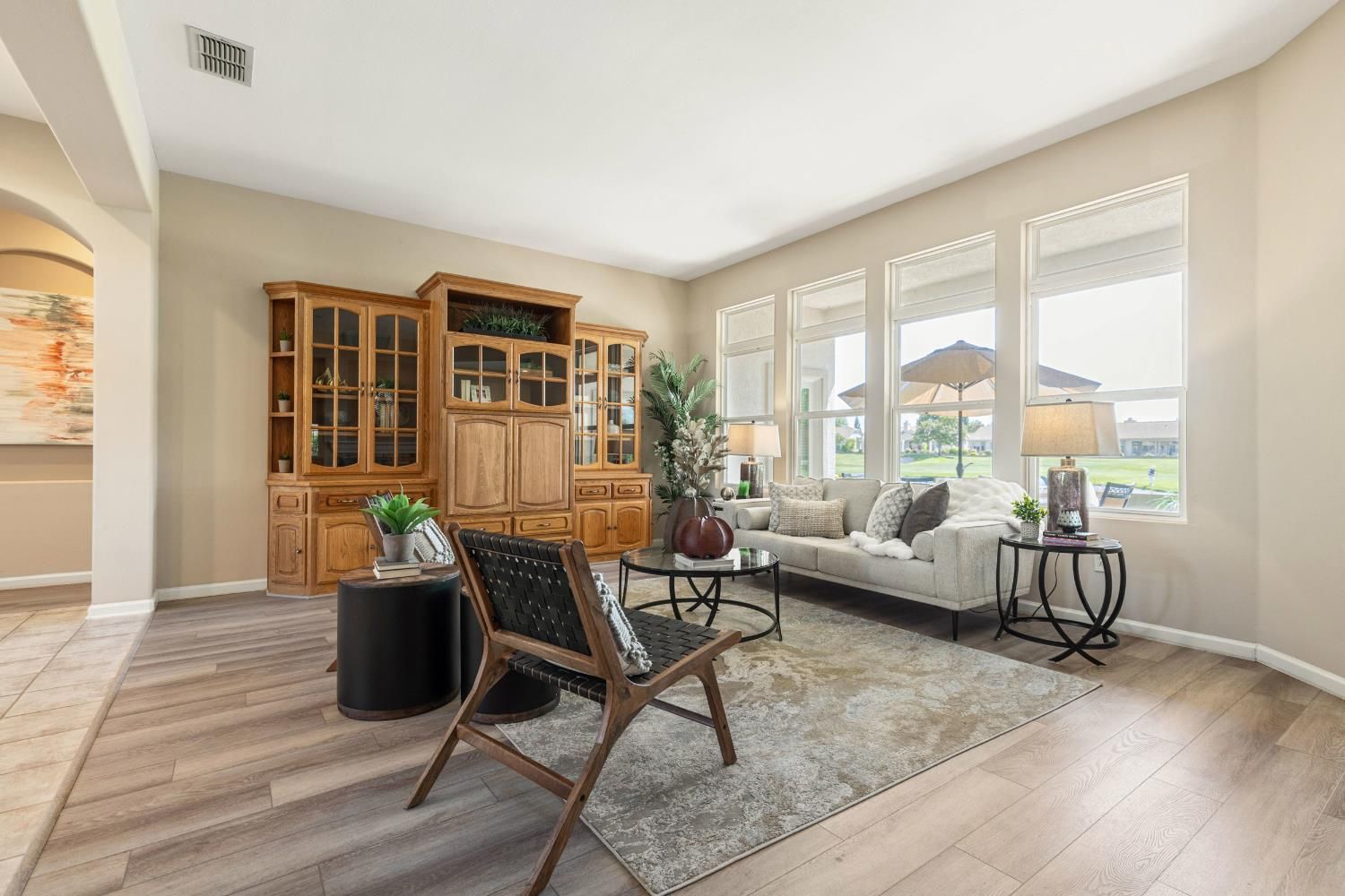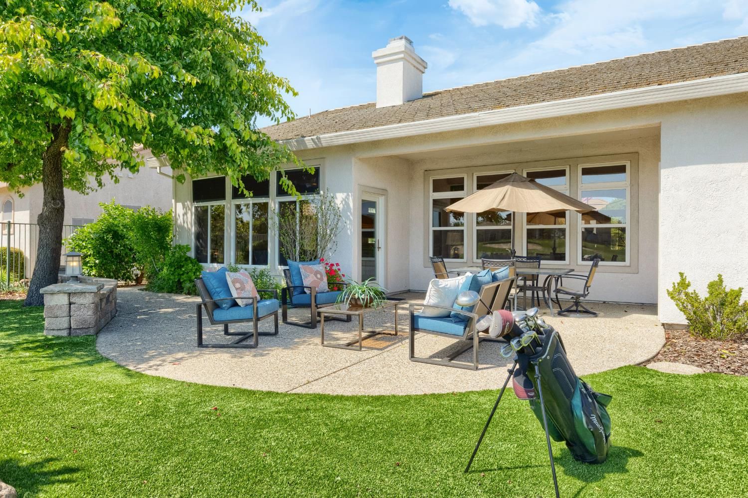 Enjoy breathtaking views of the 8th hole and tranquil water feature of Sun City Roseville Timbers Golf Course--the true star of this exceptional property. This highly desirable Plumas Model offers a light, open floorplan and has been lovingly maintained with thoughtful updates throughout. The renovated kitchen features newer appliances, stylish finishes, and great functionality for both everyday living and entertaining. The open floorplan seamlessly connects the kitchen, breakfast area, and living room, all thoughtfully positioned to capture abundant natural light and showcase the beautiful golf course views creating that on vacation every day feeling. The double-sided fireplace adds to the ambiance. The Primary Bedroom ensuite is the lap of luxury from the doorway to the walk-in closet and everything in between. Both bathrooms have been tastefully updated, and newer flooring enhances the home's fresh, modern appeal. Thoughtful built-ins add functionality, organization and work-space. The well-appointed home office provides a plethora of cabinetry and workspace. The guest bedroom is tucked away at the end of the hall providing lots of privacy. Plenty of storage in the garage with attic access as well. Beautiful, low-maintenance front and back yards provide inviting outdoor spaces to relax and take in the peaceful setting. Ideally located close to golf, clubhouse amenities, shopping, and dining, this home offers the perfect blend of comfort, convenience, and lifestyle. Don't miss the opportunity to own this special golf course property in sought-after Sun City Roseville!