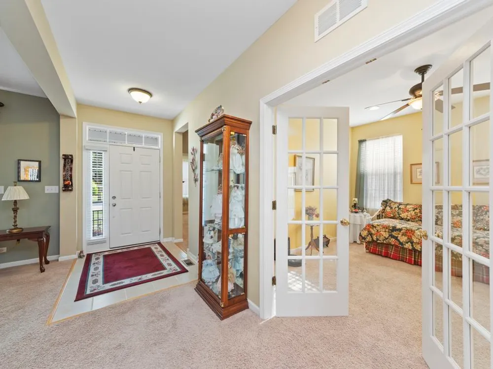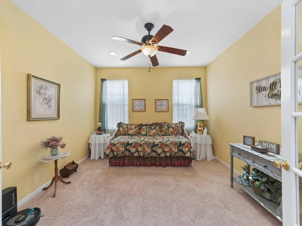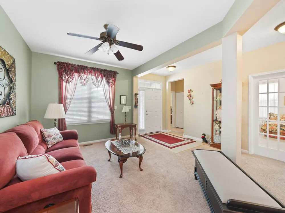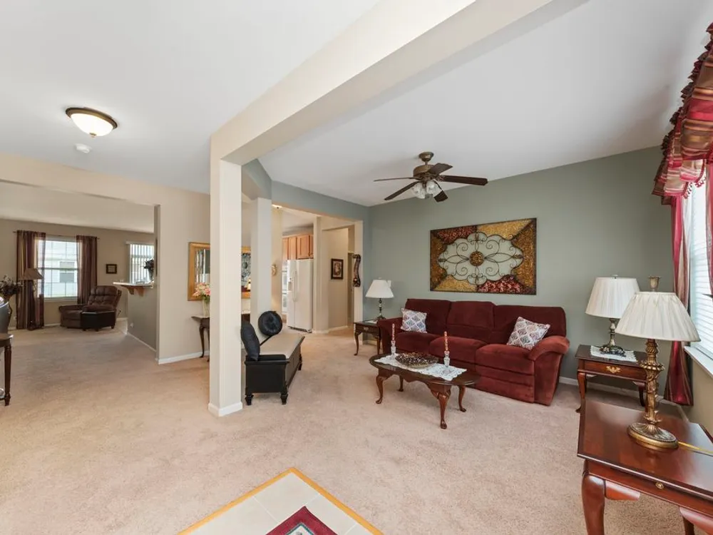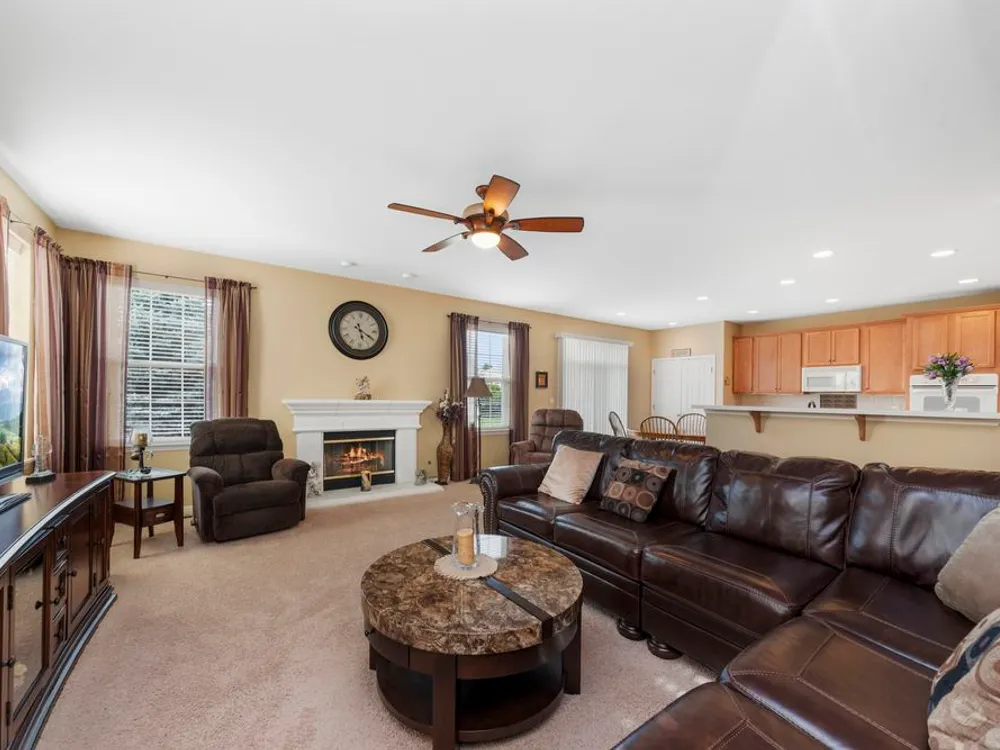 Welcome to Steeplechase, a premier active adult community (55+) where comfort, convenience, and connection come together. This former model home offers one of the community's largest floor plans, with just over 2,000 square feet of thoughtfully designed space perfect for both everyday living and entertaining. The open-concept layout features 2 bedrooms, a spacious den, and 2 full baths, blending functionality with a warm, inviting atmosphere. The kitchen is a true centerpiece-offering abundant cabinetry, Corian countertops, a double oven, gas cooktop, and large pantry-opening seamlessly to the family room with its cozy fireplace. A formal living room provides additional flexibility for dining or relaxation, while the expansive primary suite boasts a walk-in closet and a private bath with a beautiful vanity and walk-in shower. French doors lead to the light-filled den, ideal for a home office, hobby space, or guest retreat. Step outside to enjoy a peaceful backyard with an oversized concrete patio, perfect for morning coffee or evening gatherings. Attached and oversized 2 car garage. Life at Steeplechase means more than just a beautiful home-you'll enjoy a vibrant clubhouse, sparkling pool, and a calendar of activities that make it easy to meet neighbors and stay engaged. Plus, with endless shopping, dining, and recreation just minutes away, everything you need is right at your doorstep.