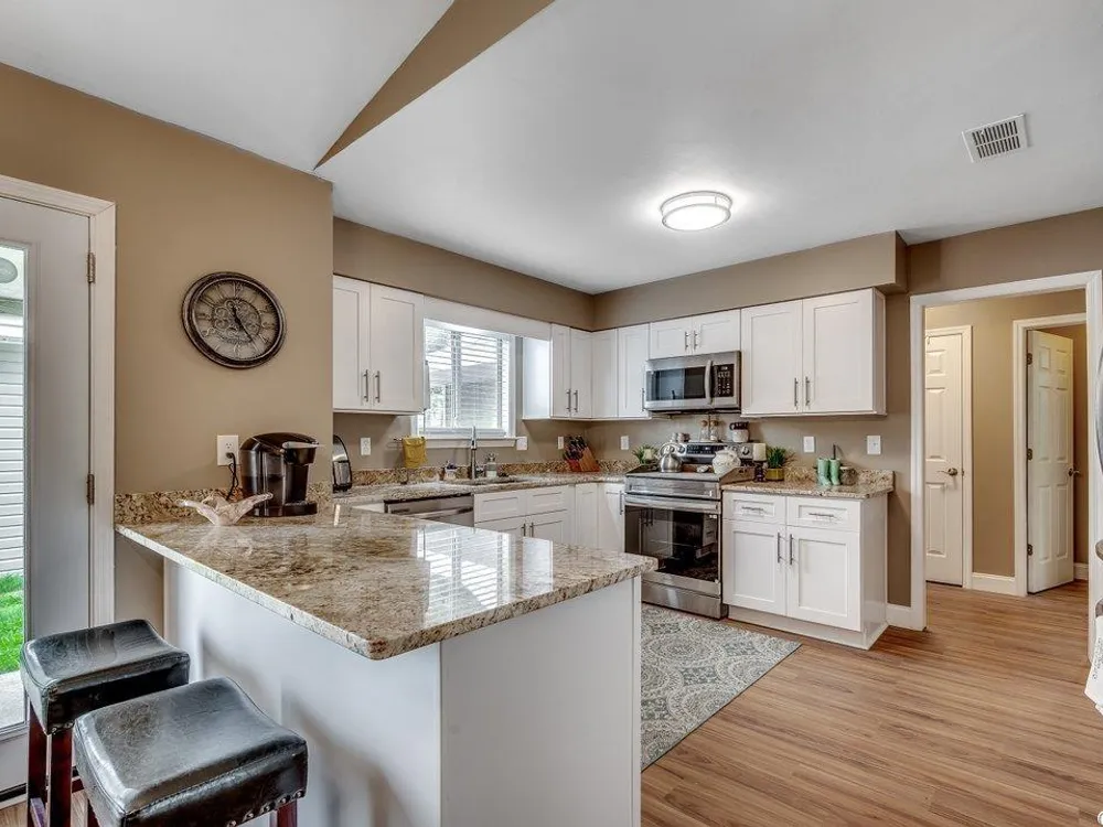 Renovated and updated, fully furnished, home with great curb appeal in the Island Green community in Myrtle Beach. So much to offer including all new siding, nice yard, two car garage, large driveway, new LVP flooring, new shaker cabinets, new granite countertops, new stainless-steel appliances, pantry, vaulted ceilings, modern electric fireplace, neutral colors, renovated bathrooms, nice fixtures, good sized bedrooms, and a walk-in closet. This place is turn-key and ready to move into!