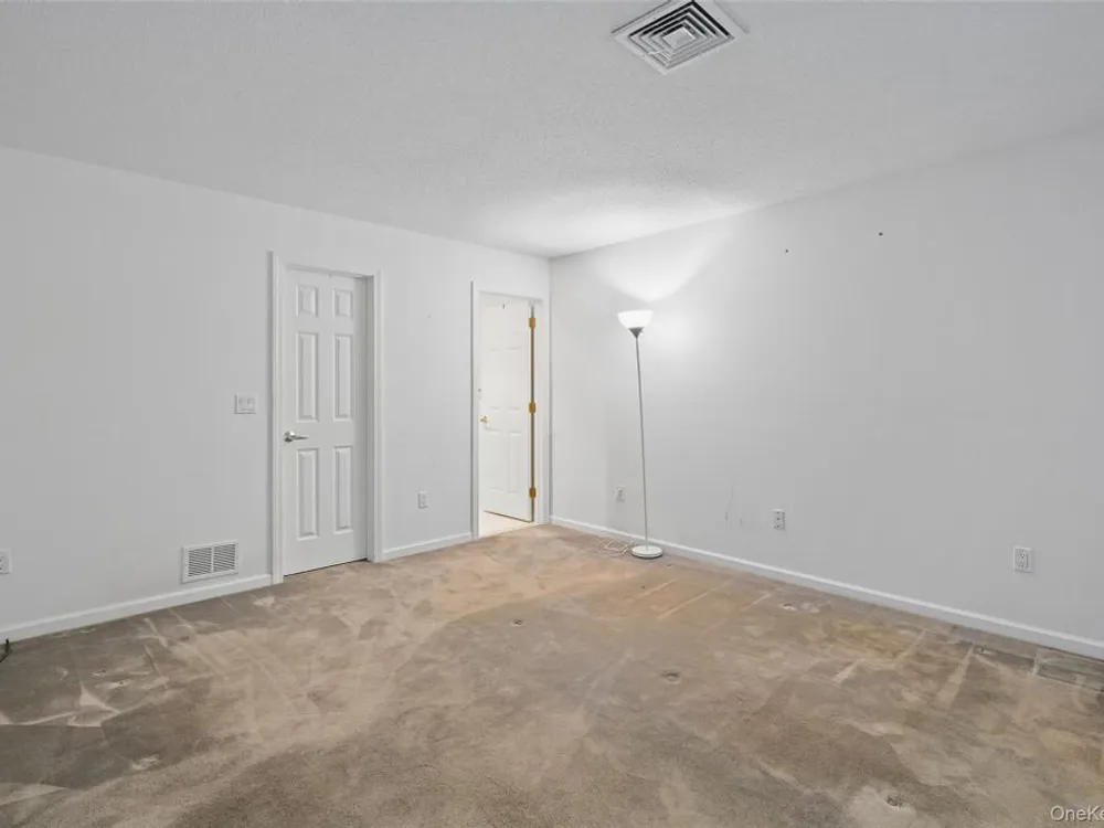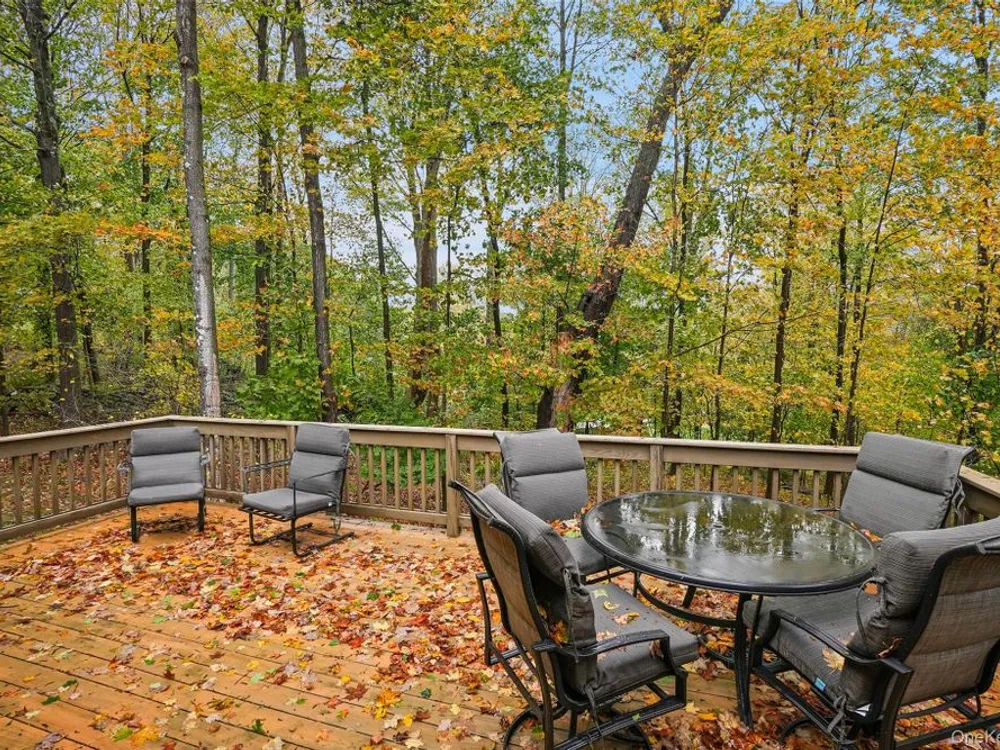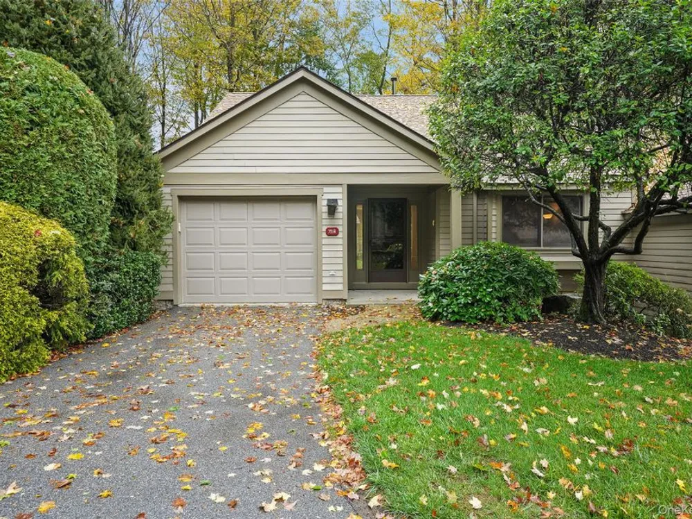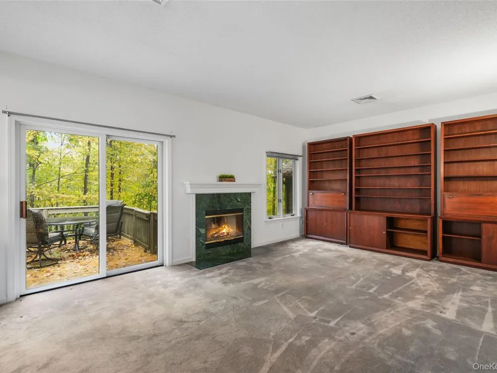 Desirable one-bedroom, two-bath, one-level Amherst end unit with a den that can easily function as a second bedroom or home office, complete with pocket doors for privacy. This condo lives like a two-bedroom and features gas heat, and an attached one-car garage. The formal living room offers a brick wood-burning fireplace, perfect for cozy evenings, while the eat-in kitchen includes white cabinetry, white appliances, and a slider leading out to a private deck overlooking the woods—a peaceful, scenic setting ideal for relaxation. The primary bedroom features an ensuite bath and a walk-in closet. Additional highlights include stackable washer/dryer in the hall bath, a new water heater (2024), HVAC (2014), roof (2021). With four visitor parking spots directly adjacent to the unit, and a quiet location, this condo is a wonderful opportunity in Heritage Hills. Condo is being sold as is. Enjoy the Heritage Hills lifestyle: 5 pools, tennis, pickleball, Activity Center, Fitness Center, 24-hour security with EMS, free shuttle to train and shops, and much, much more. Buyers are required to pay a one-time fee of $1500 to Society at closing. HOA of $584.52 includes (Condo 29 fee $448.41) + (Society fee $136.11). Sewer fee is $48.61 monthly; water is approximately $40 per month, based on usage. Taxes are without Basic STAR exemption of $1447.22. No assessments.