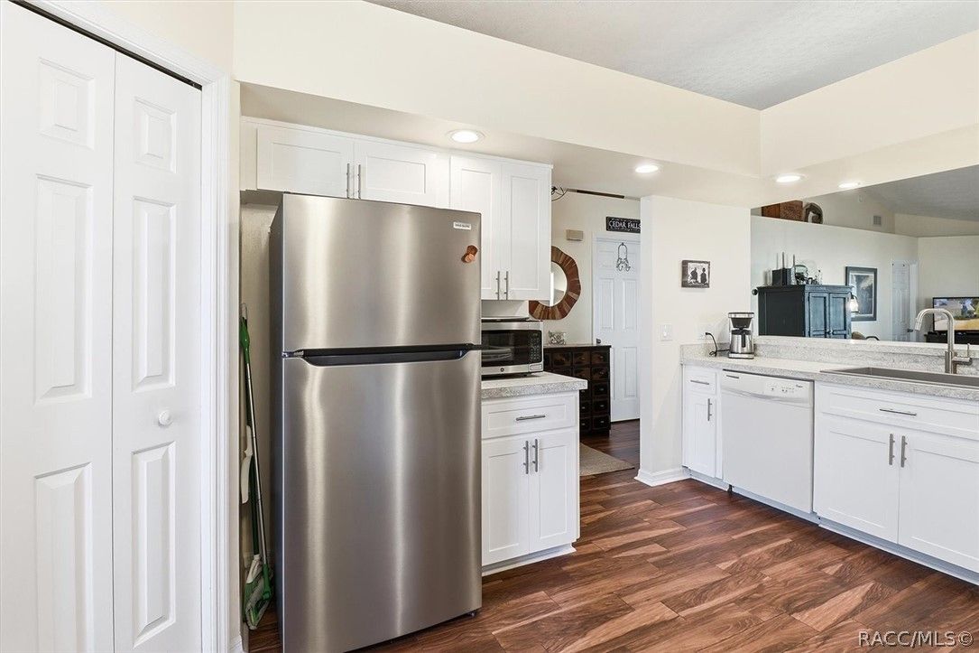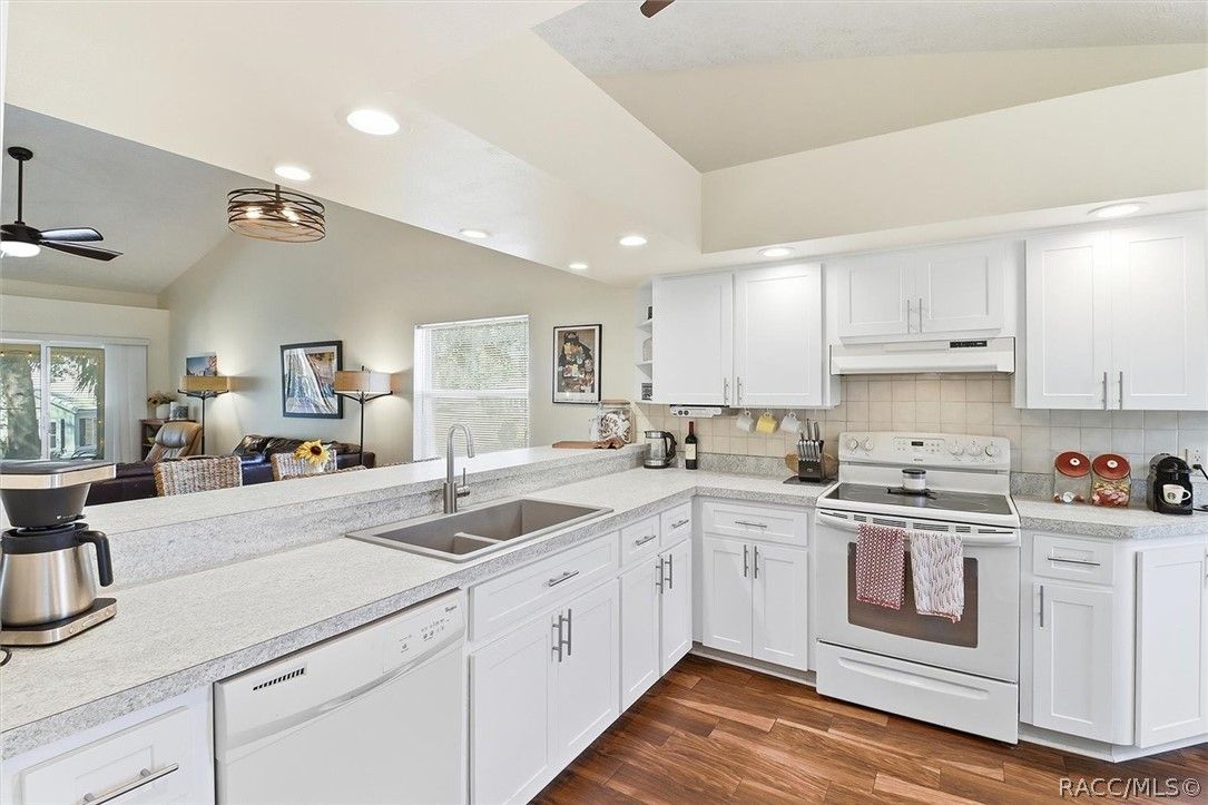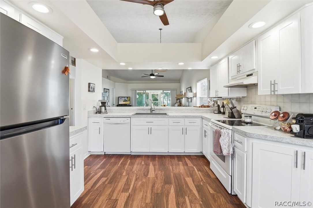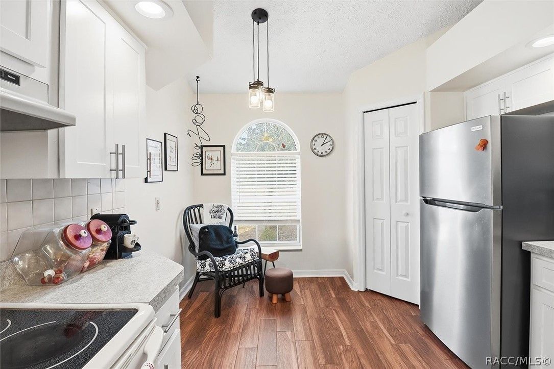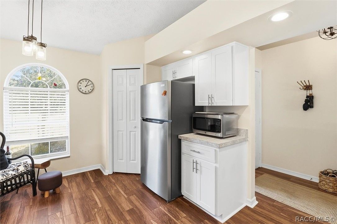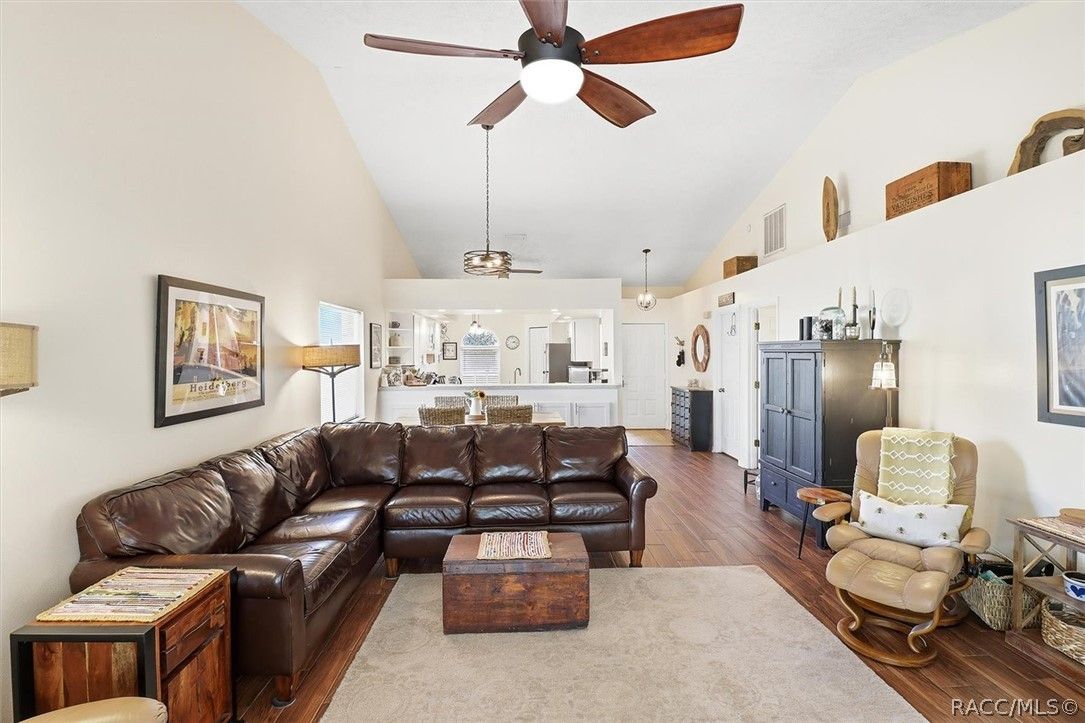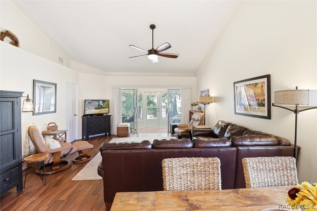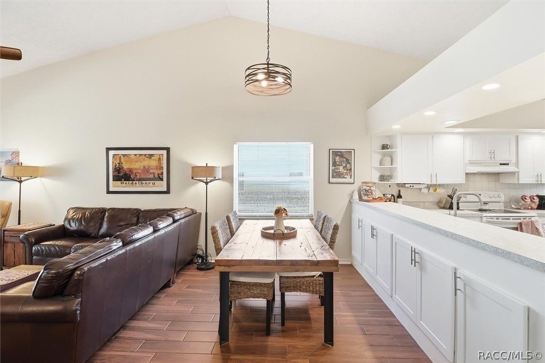 Discover the ease of maintenance-free living in this charming 2-bedroom, 2-bath end-unit villa (with Tile Roof installed in 2024) located in the amenity-rich community of Windermere. With a 1-car garage and 1,186 square feet of living space, this home is designed to enhance your lifestyle with comfort, convenience, and style. Step inside to find high ceilings and abundant natural light, creating an inviting sense of openness throughout. The light and bright kitchen features modern lighting, ample storage, new fridge, and pantry that make meal prep a pleasure. The open floor plan flows seamlessly across beautiful plank tile flooring in warm, natural tones, connecting the living and dining areas into a cohesive, welcoming space. Contemporary light fixtures and ceiling fans add a fresh, updated feel. The split floor plan ensures privacy for both bedrooms. The spacious primary suite includes a walk-in closet and an ensuite bathroom with a walk-in shower. The second bedroom is conveniently located at the front of the home, offering privacy for guests and easy access to the main bathroom. Enjoy Florida living at its finest in the enclosed Florida room, for relaxing with morning coffee or unwinding at the end of the day. Step outside to the adjoining patio for fresh air and sunshine. This delightful villa combines comfort, style, and low-maintenance living in a community filled with amenities—an ideal place to call home. The community enjoys an ideal location near the Withlacoochee State Trail, giving you the option to walk or bike straight into downtown Inverness. Windermere’s HOA fee includes cable, Wi-Fi, building and grounds maintenance, and access to a well-appointed clubhouse, heated pool and shuffleboard courts. But wait, there's more! Residents can also take advantage of the community dock, a peaceful spot for fishing or simply enjoying the surrounding nature. Plus there is RV/Boat Storage for your convenience at no extra cost. You won't be disappointed, call today!