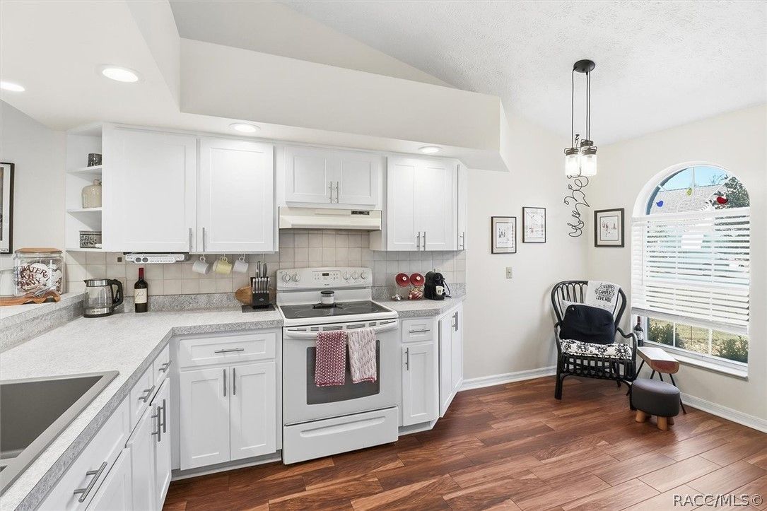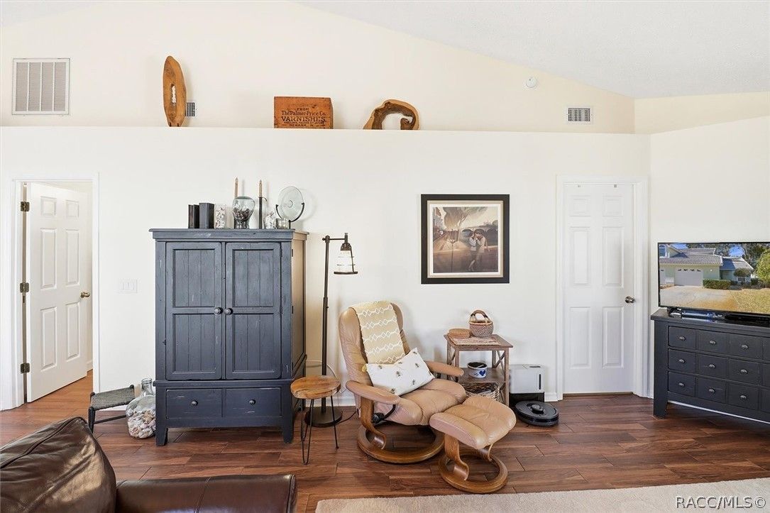 - Cathedral Ceiling(s), Eat-in Kitchen, High Ceilings, Laminate Counters, Main Level Primary, Primary Suite, Pantry, Split Bedrooms, Separate Shower, Vaulted Ceiling(s), Walk-In Closet(s), Window Treatments, First Floor Entry, Sliding Glass Door(s)