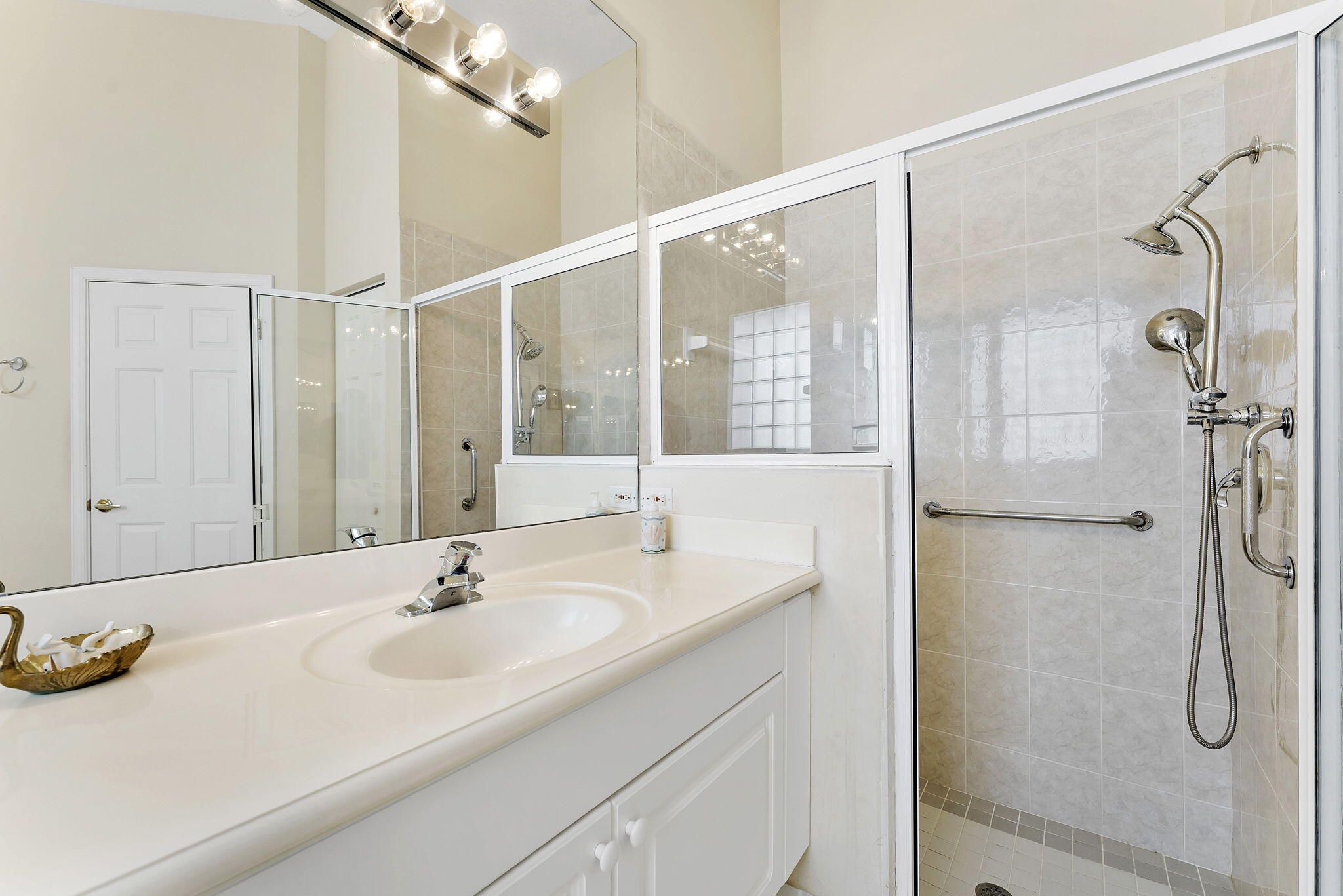 - Entry Level Living Area, Entrance Foyer, Split Bedrooms, High Ceilings, Walk-In Closet(s), Home Office, Great Room, Living/Dining Room, Eat-in Kitchen, Blinds, Single Hung Metal Window(s), Sliding Window(s), Window Vertical(s), Dual Sinks, Primary Downstairs, Separate Shower, Bathtub, Storm Shutters