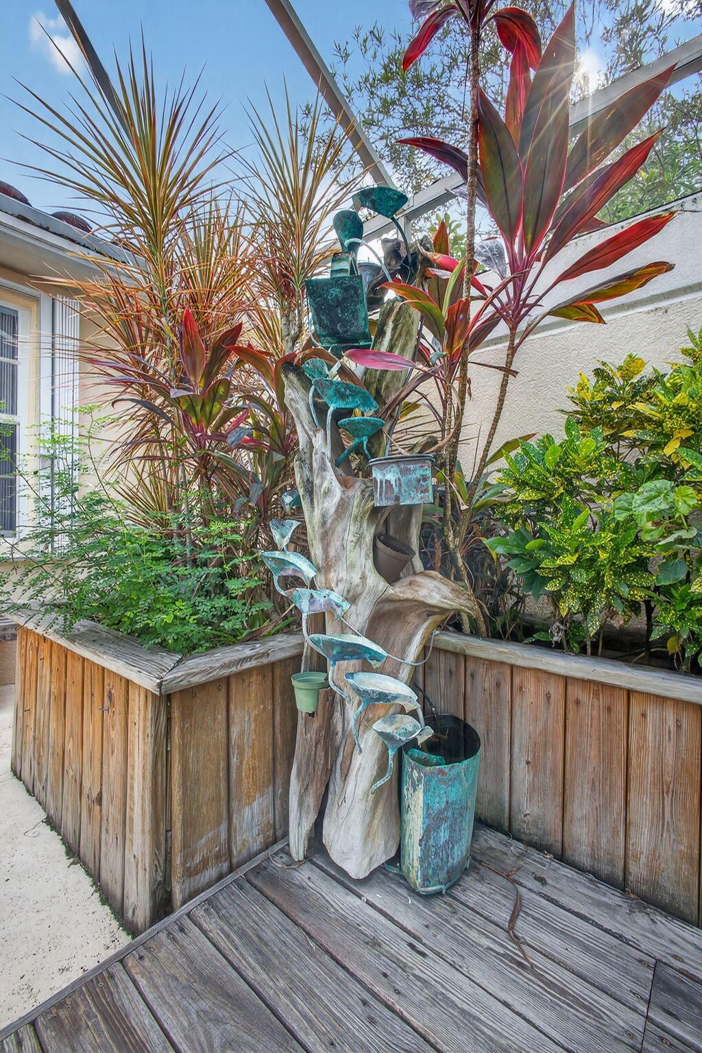 Artist-Owned & Curated Villa w Stunning Waterfront Views! Step into this beautiful move-in-ready 2BR / 2BA villa with a 2-car garage & NEWER ROOF (2022) in the sought-after Riverwalk community. DON'T WAIT This home is full of thoughtful upgrades & creative touches. Enjoy fabulous views from the spacious screened lanai featuring plank and concrete flooring & electric awning, fountain-perfect for entertaining, sipping your favorite beverage, or simply relaxing / chillin. This solid DiVosta-built home offers peace of mind with a newer roof, accordion hurricane shutters, & concrete construction. Inside, you'll find a updated kitchen &, plantation shutters, newer renovated main bathroom with dual sinks and a walk-in shower, granite countertops, tile flooring, and stainless steel appliances.