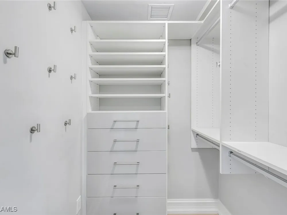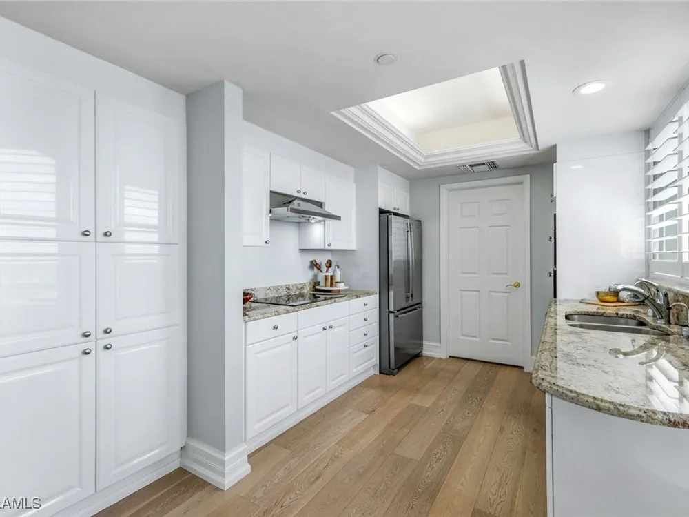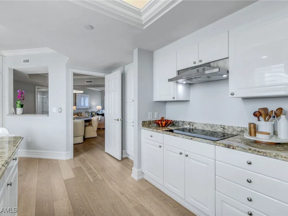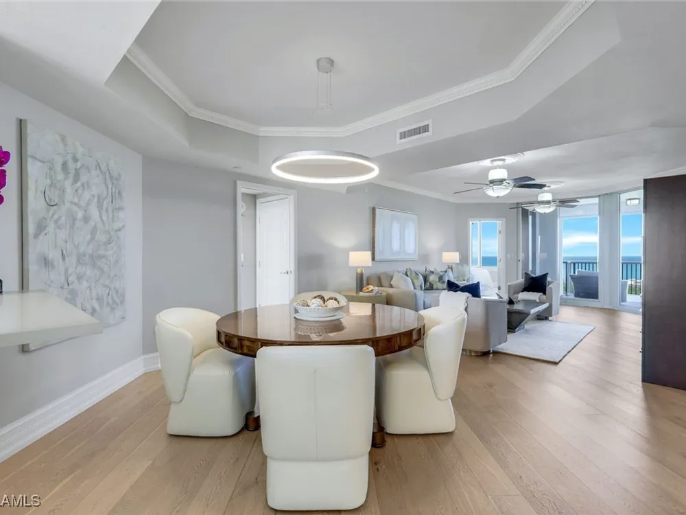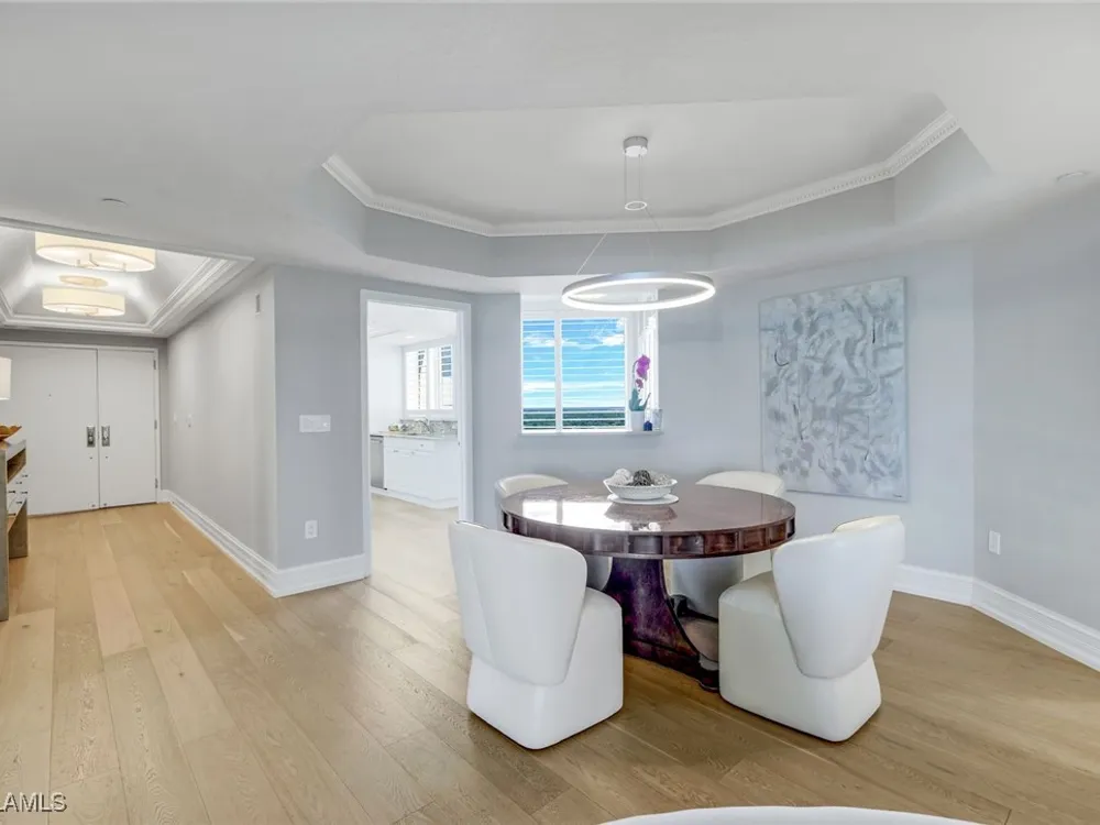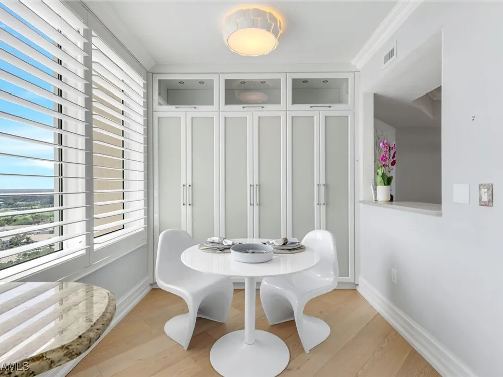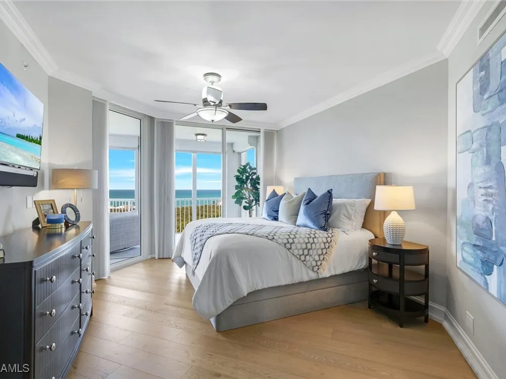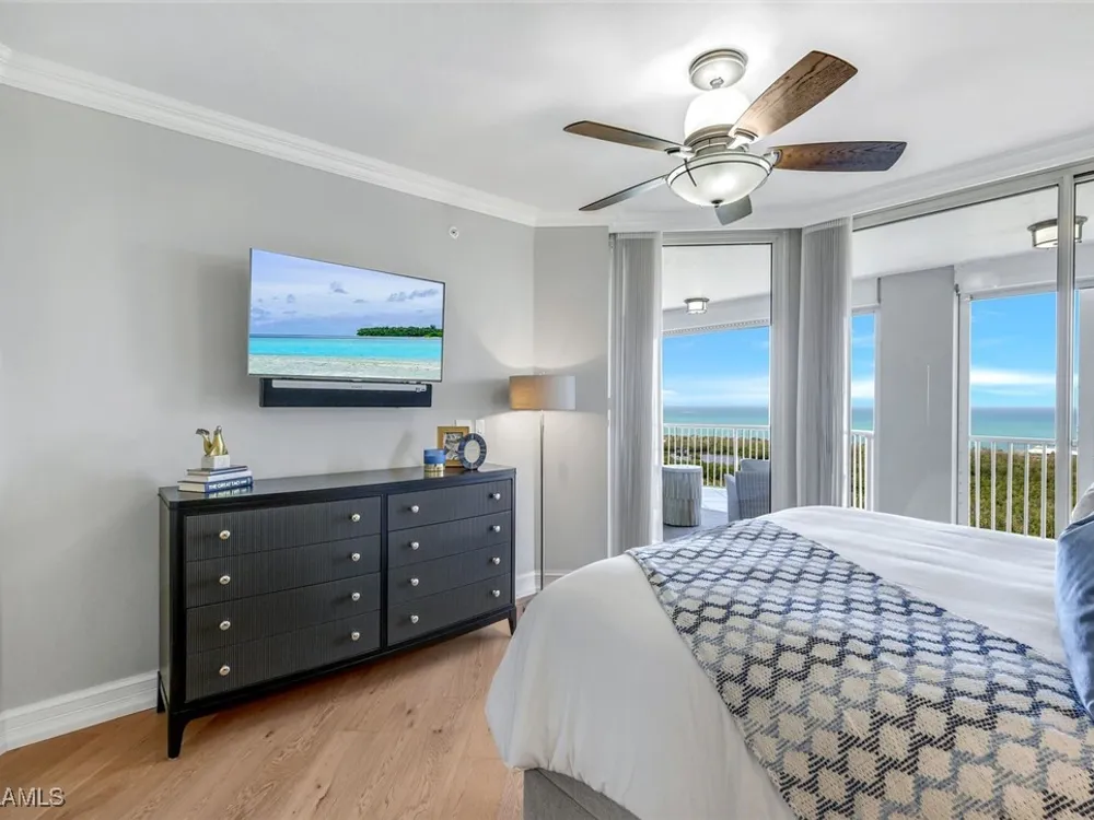 Introducing this exquisite beach access oasis in the heart of Naples, where luxury meets coastal living. This 16th floor St Raphael unit in Pelican Bay features 3 bedrooms and 3 full bathrooms with gorgeous 5" wide plank wood flooring throughout, tray in tray ceilings, plantation shutters, custom automatic shades, updated lighting, with gorgeous views from every room. The kitchen has been updated with granite counter tops with ogee edges, Wolf induction cook top and JennAir appliances and has an eat in kitchen area where you can enjoy your morning coffee overlooking the golf course. Each room has had custom organization added as well as additional storage space. A custom built home office was designed for one of the bedrooms. Enjoy peace of mind with electric hurricane shutters on your lanai space. Revel in the breathtaking views of the Gulf of Mexico from your balcony, while relishing the convenience of nearby irresistible amenities such as two Gulf-front restaurants, near by tram access, tennis facilities, a 27-hole golf course, boardwalks, Fitness & Wellness center as well as on-site amenities including a pool & hot tub, fitness room, tennis courts, library& club room and conceirge services. You are only a short distance to Waterside Shoppes with luxury shopping is offered and the choice of multiple dining options as well Baker Museum - Artis Naples where you can enjoy numerous events and exhibits. This unit also features 2 deeded garage parking spaces as well as 2 additional joined storage spaces on garage level and 1 add'l storage closet on 16th floor. You will love living in this premier community centrally located in Naples.