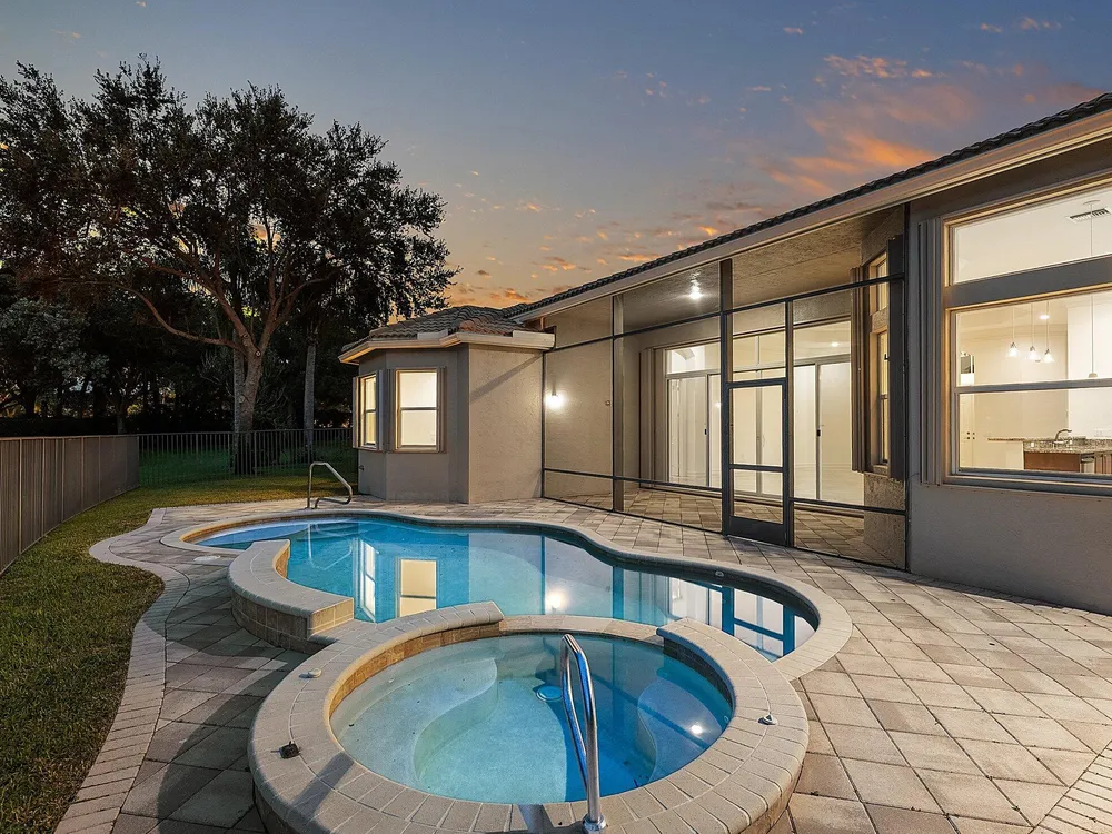 Beautiful 4 Bedroom 3.5 bath home located in Valencia Pointe . Large open floor plan with primary bedroom overlooking the pool. Office with built in shelves and storage. Recently repainted neutral color ready for immediate move in. This is a very Active 55+ community. Clubhouse recently renovated. HOA requires 6 month HOA fee capital contribution of ($4710) and a $450 annual usage at cafe.