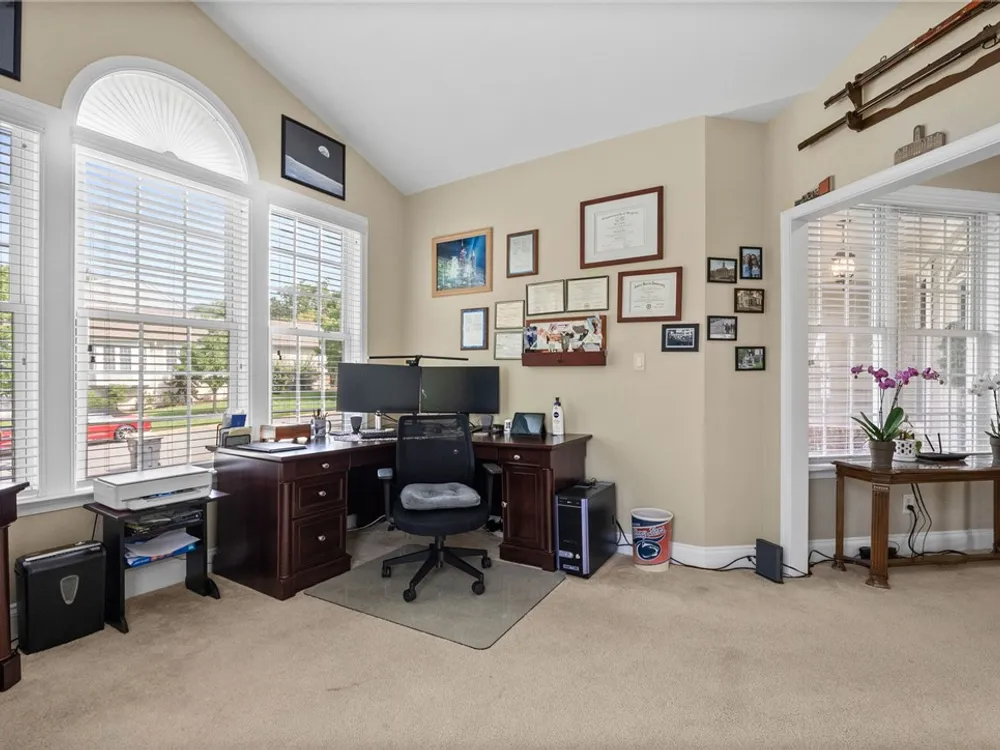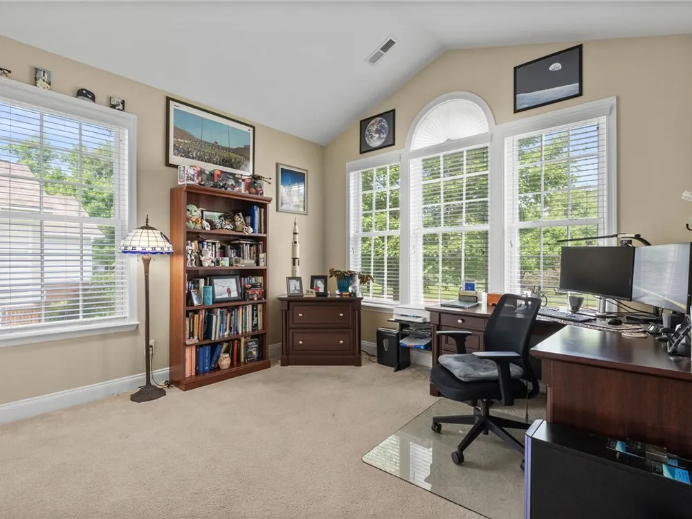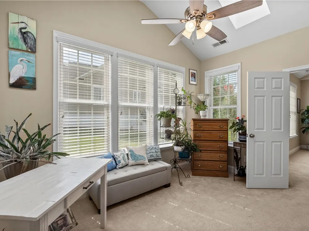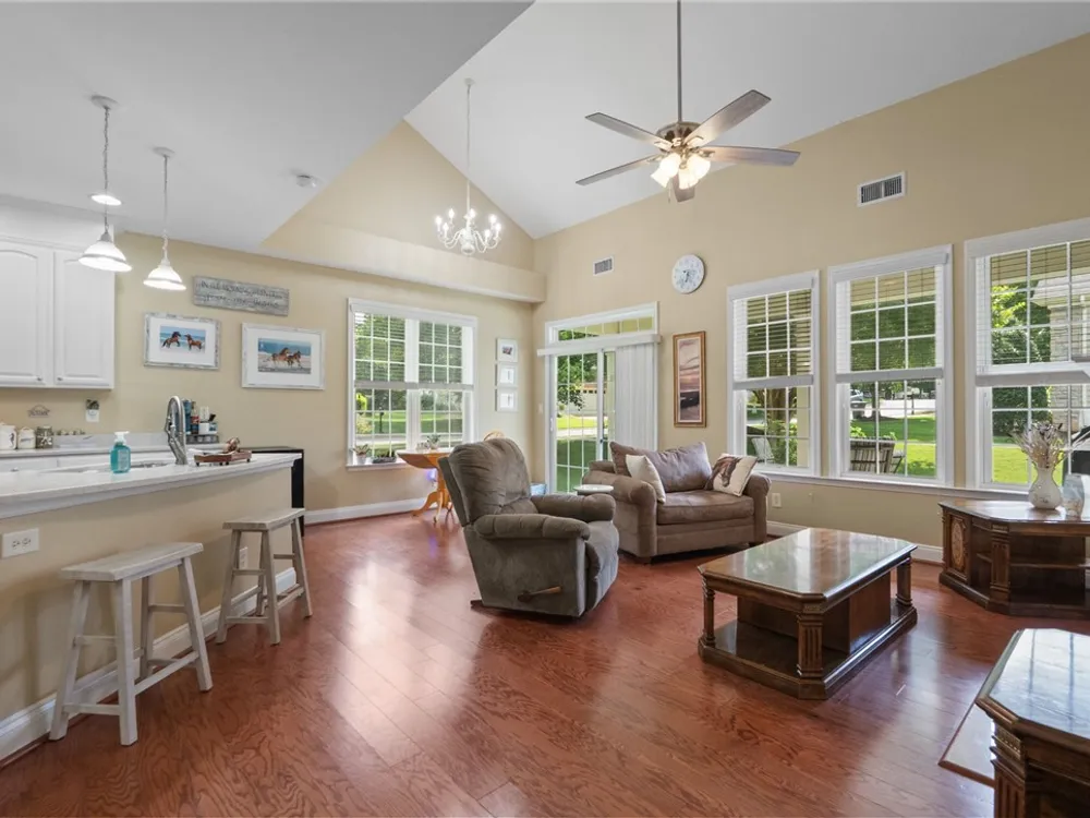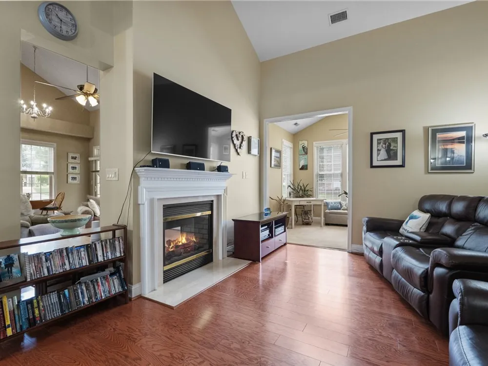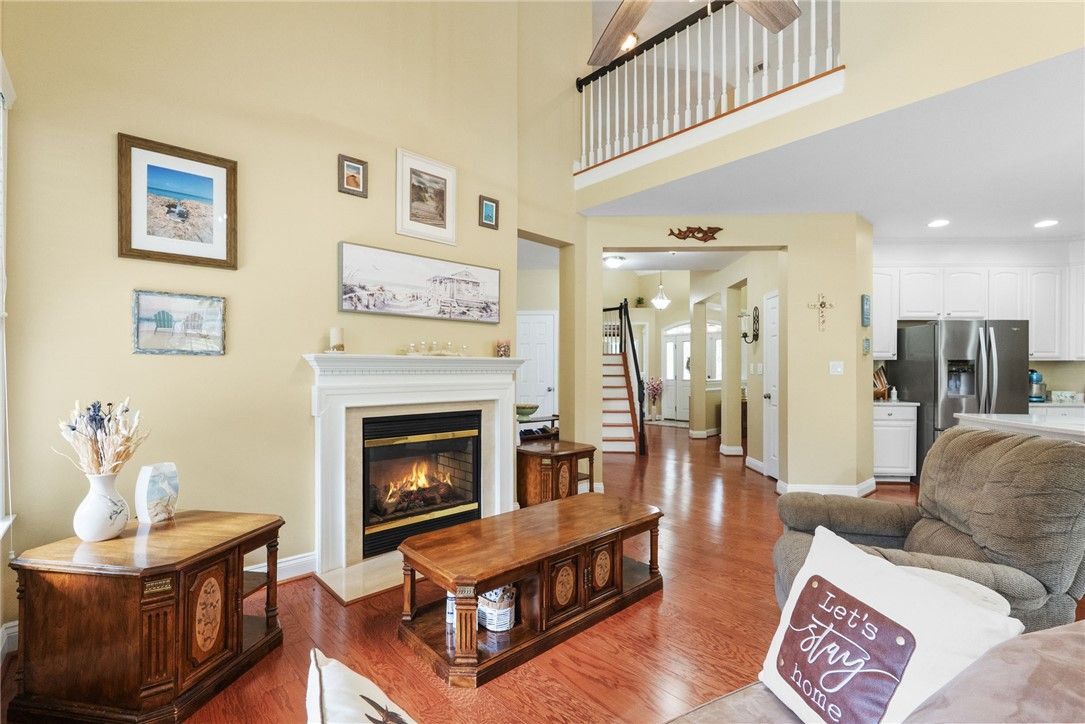A MUST SEE! This meticulously maintained home features a fantastic first-floor layout with flexible living spaces. A wide foyer opens to a formal dining room on the left and a versatile office, library, or guest room on the right. The great room boasts a double-sided fireplace and spacious sitting area, while the casual dining space flows seamlessly into the updated kitchen with granite countertops, gas cooking, white cabinets, ss appliances to include a brand-new dishwasher (6/2025). The open-concept kitchen leads to a back porch perfect for indoor-outdoor living. The 1st floor primary suite offers cathedral ceilings, an oversized walk-in closet, a spacious bath, and a cozy sitting area. Upstairs, enjoy a charming loft, 2 additional bedrooms, a full bath, and abundant storage. Situated on a quiet corner lot close to Williamsburg and the Colonial Heritage main entrance, with shopping, dining, and medical care just minutes away! Schedule your showing today!