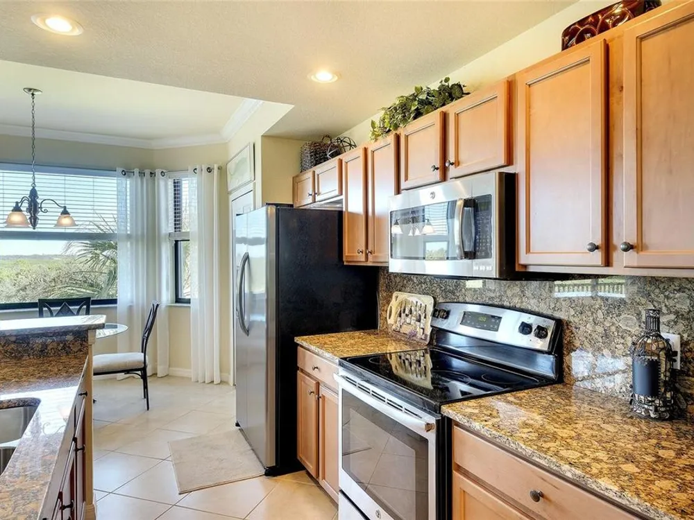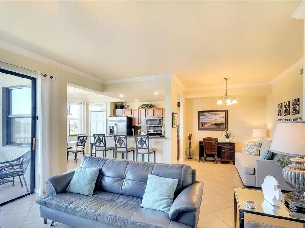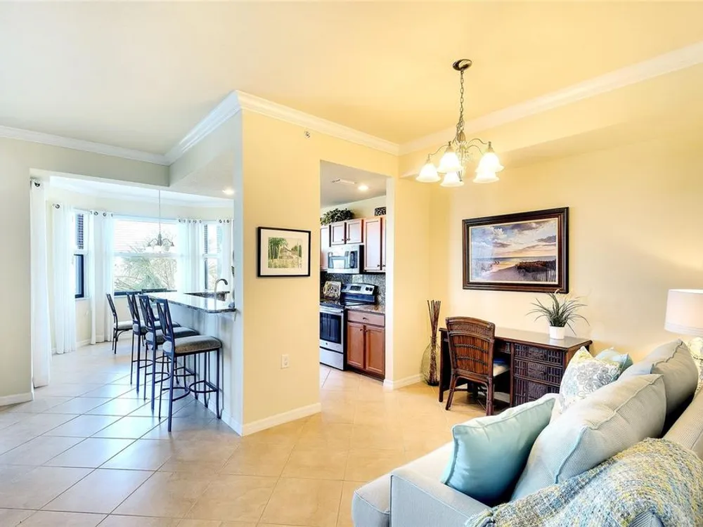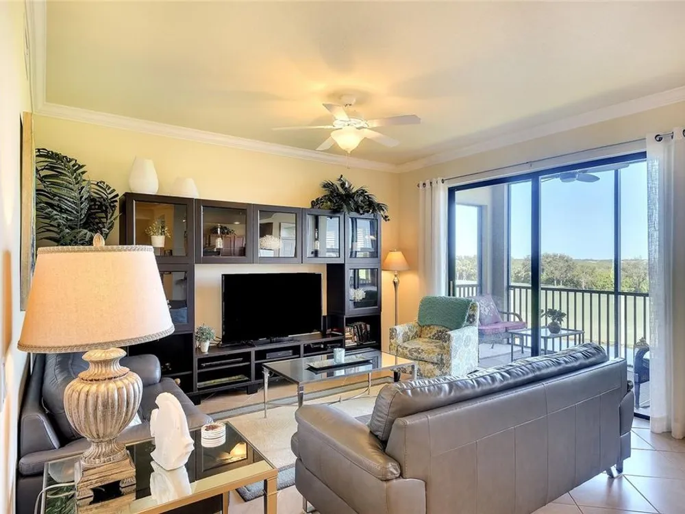 PREPARE TO FALL IN LOVE with this tastefully decorated and meticulously maintained TURN-KEY FURNISHED and "GOLF INCLUDED" Brookside floor plan. Located within the gates of River Strand Golf and Country Club and available for immediate occupancy, this popular 2-bedroom 2-bath OPEN FLOOR PLAN with amazing lake and golf course views represents exceptional value. Furnished with everything you see included and decorated in a modern COASTAL décor the property features crown molding, window treatments, porcelain tile installed on the diagonal, digital door locks, NEW A/C in 2023 and high impact “HURRICANE RESISTANT” windows and doors for safety and peace of mind. The central well-equipped kitchen features granite countertops with full granite backsplash, solid wood cabinets, breakfast bar, stainless-steel appliances, and all kitchen contents are included. An oversized storage room adds to the convenience with additional storage for golf clubs, bicycles and beach chairs. Warm and inviting, the primary suite with tropical views of the lake and golf course features ensuite bath with his & hers walk-in closets. River Strand has a progressive rental program for monthly rentals, if generating income is on your radar when not in use by you or your family. Also, the Seller is the original owner, did not have pets, a non-smoker and the unit was never rented and only used seasonally two or three months annually. The recent Master Plan assessment for amenity updates has been PAID IN FULL by the current owner and with construction scheduled to be completed early in 2026 you’ll benefit from the facility improvements without additional cost. Ownership includes DEEDED GOLF MEMBERSHIP in the 27-hole championship course and updated modern club house with on-site restaurant and “19th hole” grill room & bar. Popular “lifestyle” amenities include 2 state-of-the-art fitness centers with 24/7 access, pool-side Tiki Bar, 2 resort style pools with hot tub and resistance pool plus 8 heated satellite pools, and a separate TENNIS CLUB with 8 Har-Tru lighted courts and PICKLE BALL courts. Conveniently located next door to one of the heated satellite pools, the convenience of this LOCATION cannot be overstated as it’s ideally situated just minutes from all essential amenities and top attractions: 2.5 miles to the new Marketplace at Heritage Harbour home to Costco, Target, Miller’s Ale House, Academy Sports, and Hobby Lobby, with several additional stores proposed. 3.5 miles to the Walmart Super Center, 3.6 miles to Home Depot, 8.5 miles to the Ellenton Premium Outlet Mall and 16 miles to the Bradenton/Sarasota Int’l Airport. With easy access to I-75 the University Town Center with upscale shopping and dining is only 13.5 miles as well as the many attractions of downtown Sarasota and Bradenton, multiple performing arts venues, galleries, world class dining, award winning beaches, and so much more…just minutes away. TRULY A GOLFER’S DREAM!! LIVING IS EASY, CONVENIENT AND SECURE in this ACTIVE LIFESTYLE COMMUNITY where you’ll enjoy the "lock and leave" convenience of maintenance free living! A Seller approved inventory and floor plan are attached to the listing.