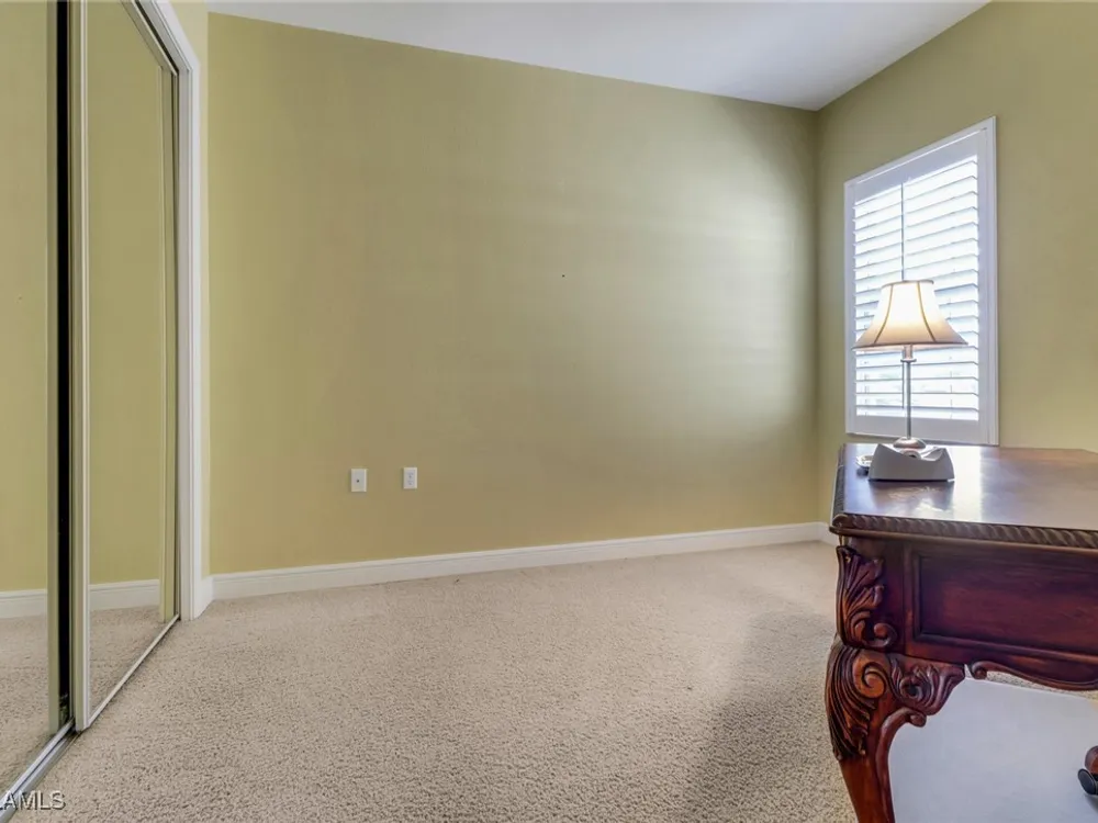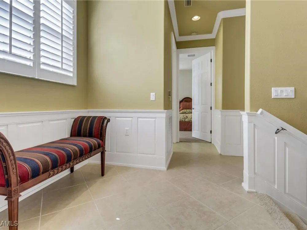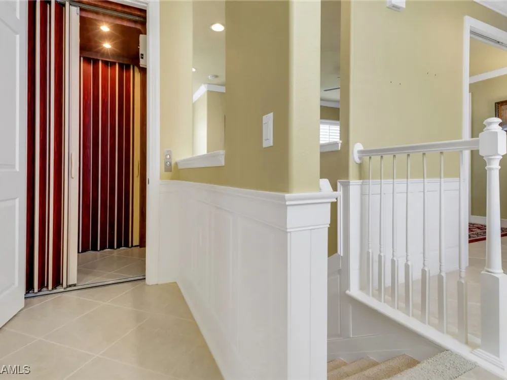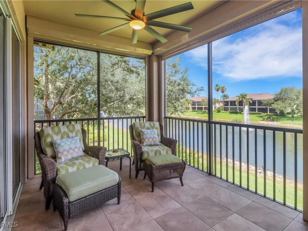 Located in stunning Regency Reserve within the Vineyards, this large and expanded 3 bedroom + den condo is being offered turnkey furnished. It is immaculate, meticulously maintained and has plenty of living space for you and your guests to spread out and enjoy the good life. The cozy den invites you to get comfortable and watch tv or read a book. Open concept living and dining areas extend out to the large screened lanai for even more seating. This is where you will enjoy your morning coffee with a front and center view of the large lake and fountain! Pride of ownership shines throughout this home where you will also find custom built wainscoting, crown molding and plantation shutters throughout! The addition of a private elevator makes second floor living seamless. Custom office space has been added above the stairs. Electric hurricane shutters enclose the lanai to provide safety and security! The primary bedroom has a king sized bed, walk in closets and a large bath with soaking tub, his/her sinks and a large shower area. The en suite guest bedroom has a walk in closet and is set up with twin beds. The second guest bedroom is currently being used as an office. This spotless condo is just steps to the beautiful community clubhouse with a lovely pool, hot tub, grilling area and weight room. Located in the heart of Naples, you will find every convenience at your fingertips.