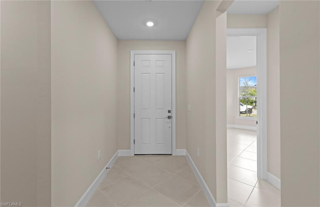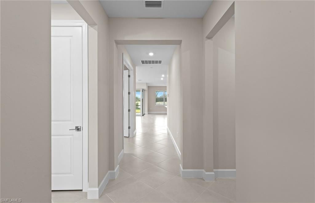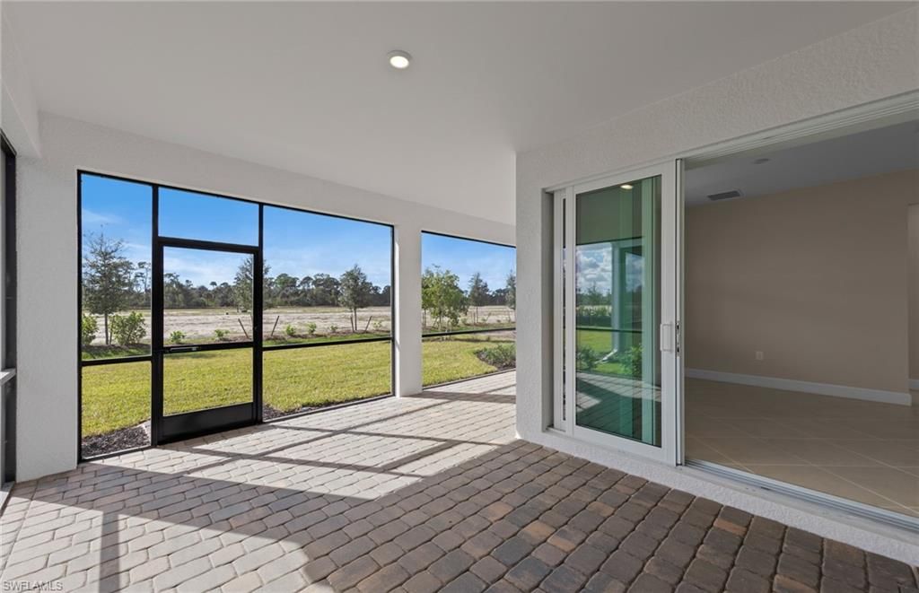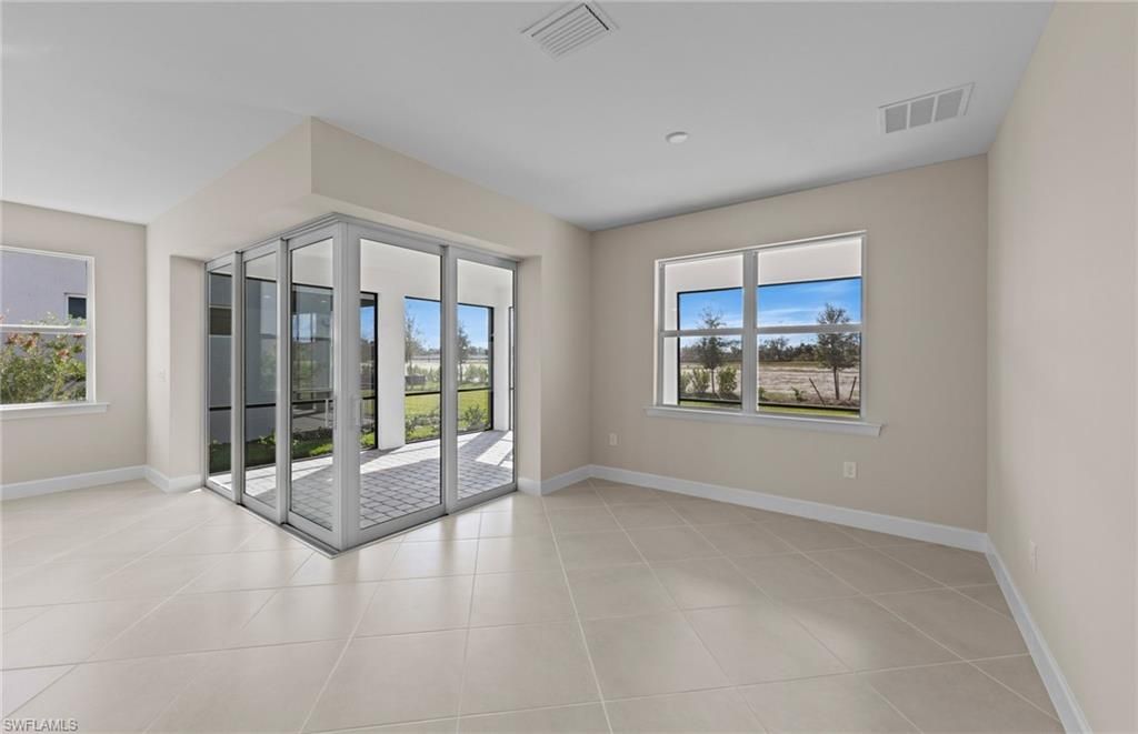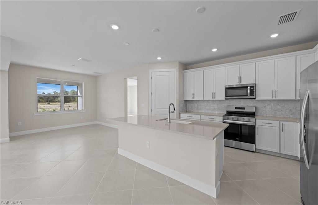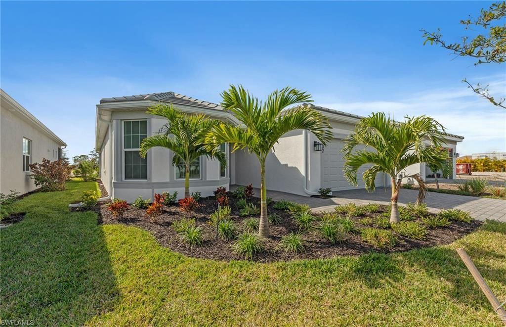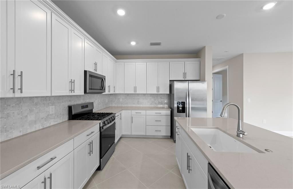 Move to Del Webb Oak Creek! This brand new Mystique home is move-in ready and features stainless steel appliances, quartz counters, custom stylish backsplash, white wood cabinets, tile flooring throughout, walk-in shower at owners suite bath and secondary bath, 8' ft. doors throughout, smart home package, impact glass, and 2 car garage with 4' extension. Enjoy indoor-outdoor living with zero corner sliding glass door to the extended covered screened-in lanai. Oak Creek is Del Webb’s newest 55+ community, situated in North Fort Myers. Homeowners will benefit from it being a natural gas, gated community with vacation-inspired amenities such as a resort style pool and spa, clubs and activities, a restaurant and covered Tiki, and a fulltime lifestyle director. Just beyond the gates homeowners can find shopping and dining, explore Fort Myers River District, relax on the Gulf Coast beaches, and experience new recreational activities while still being only minutes from everyday conveniences.