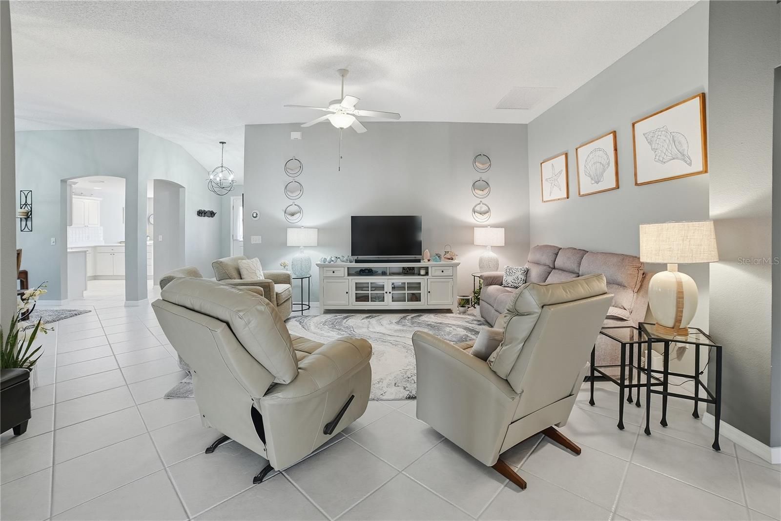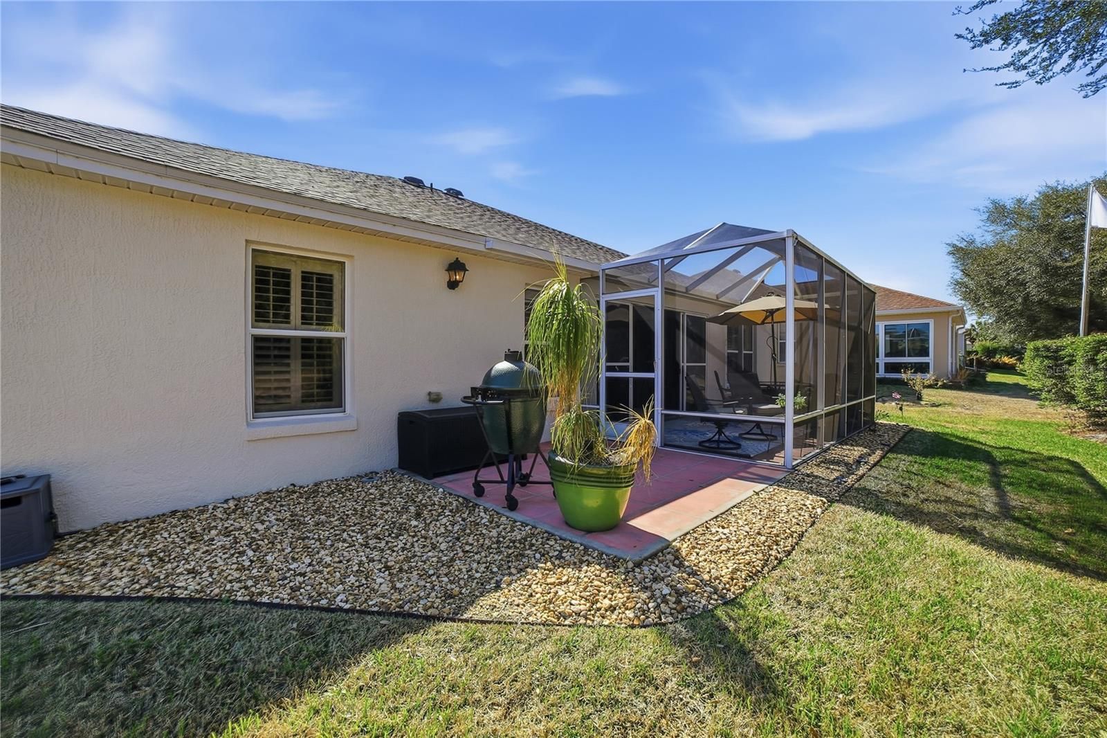JUST LISTED – GOLF COURSE VIEW-3/2 READY TO MOVE IN -FURNITURE LIST AVAILABLE (other items negotiable) Move right in and start enjoying breathtaking golf course views from this beautifully updated 3/2 Royal Palm Designer Block & Stucco home in the highly desirable Village of Chatham. Major updates provide peace of mind: Roof (2023), HVAC (2025), New Gas Water Heater, NO BOND and Freshly painted interior (2023) and exterior (2025). The low-maintenance garden, filled with butterfly-attracting plants, allows you more time to relax and unwind on your covered and screened front porch, spacious screened rear lanai, or your tinted glass-enclosed, climate-controlled lanai overlooking the Amberwood Par 3. Enjoy tranquility and privacy with no homes in your direct view — and even room to add a water feature or hot tub if desired. Inside, you’ll love the vaulted ceilings, separate dining room and family room, and a beautifully updated kitchen featuring 2025 quartz countertops, abundant cabinetry, new sink, faucet, garbage disposal (2025), and dishwasher (2026), plus both counter seating and a casual dining area. Plantation shutters (2025) enhance the home throughout. Additional highlights include: Gas connections for stove, dryer, HVAC, and water heater Large indoor laundry room with cabinetry, room for an office. Recessed kitchen lighting & updated fixtures throughout Updated two-panel interior doors Split-bedroom floor plan with private guest wing The spacious primary suite offers two large closets, new quartz countertops, updated sinks and faucets, and a gorgeous newly tiled shower. The 2-car garage features epoxy flooring (2024). This home offers updates, privacy, and stunning views — don’t miss your opportunity to make it yours.