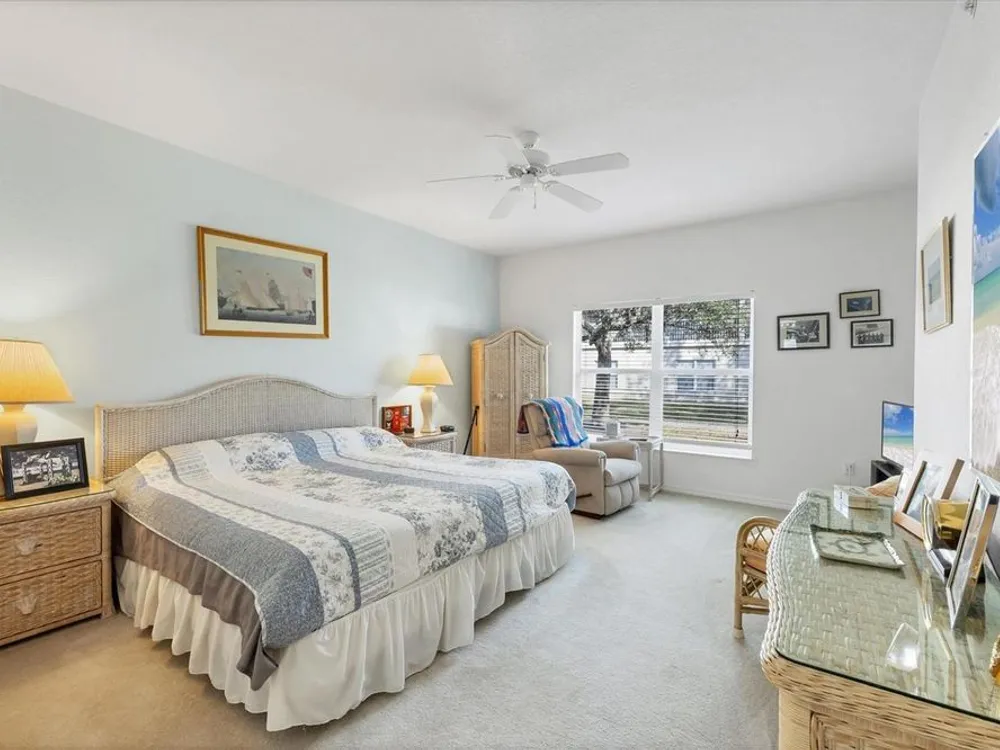 - Ceiling Fan(s), Eat-in Kitchen, High Ceilings, Main Level Primary, Solid Surface Counters, Walk-In Closet(s)