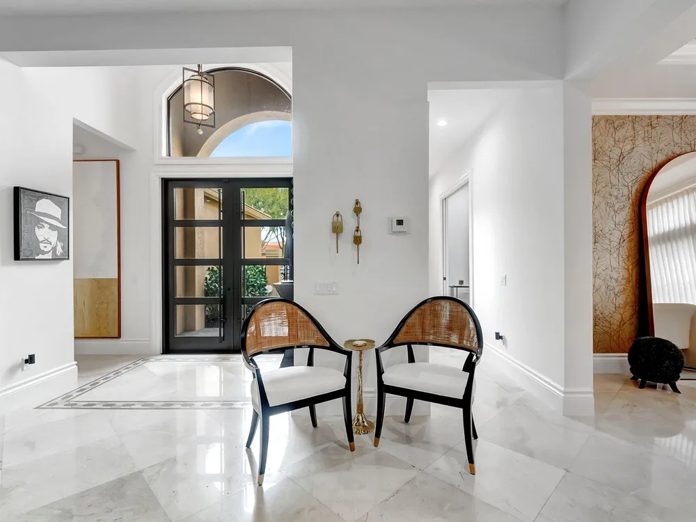 Step into luxury with this extensively remodeled Pamplona model with impeccable craftsmanship & high-end finishes throughout. The fully renovated kitchen features sleek Italian cabinetry & dramatic Michelangelo Calacatta porcelain countertops. The primary suite is a true retreat, boasting a complete bathroom remodel with spa-like elegance & modern flooring in bdrm. Impact windows replace the original glass block. New landscaping & impact front doors & transom add to stunning curb appeal. New window treatments, new a/c, shutters, whole house generator. Valencia Pointe has completed the clubhouse remodel-state of art amenities. This is a rare opportunity to own a meticulously upgraded home in sought-after 55+Valencia Point