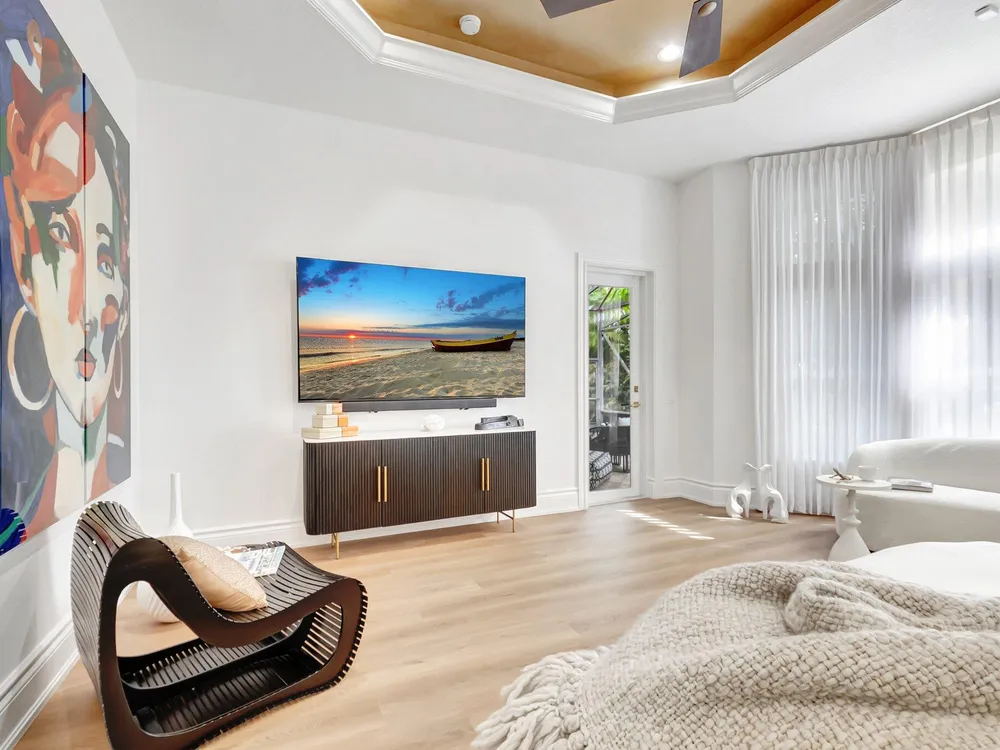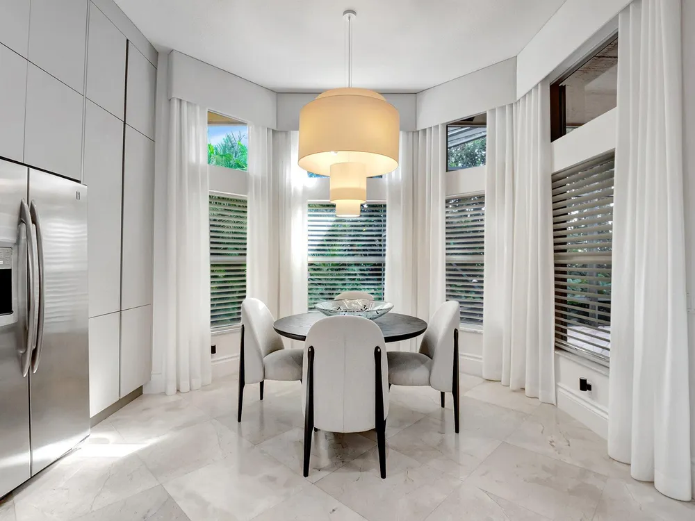 - Closet Cabinetry, Entrance Foyer, Split Bedrooms, High Ceilings, Walk-In Closet(s), Home Office, Family Room, Eat-in Kitchen, Separate/Formal Dining Room, Drapes, Impact Glass, Dual Sinks, Primary Downstairs, Sitting Area In Primary Bedroom, Separate Shower, Bathtub, Storm Shutters