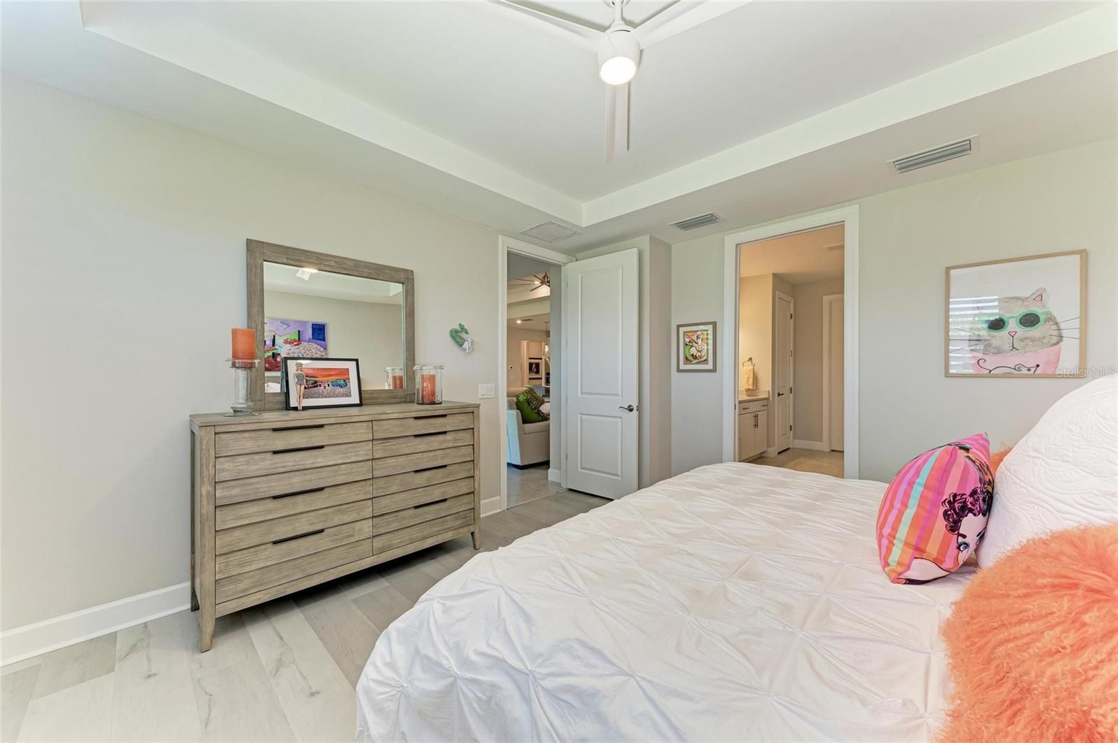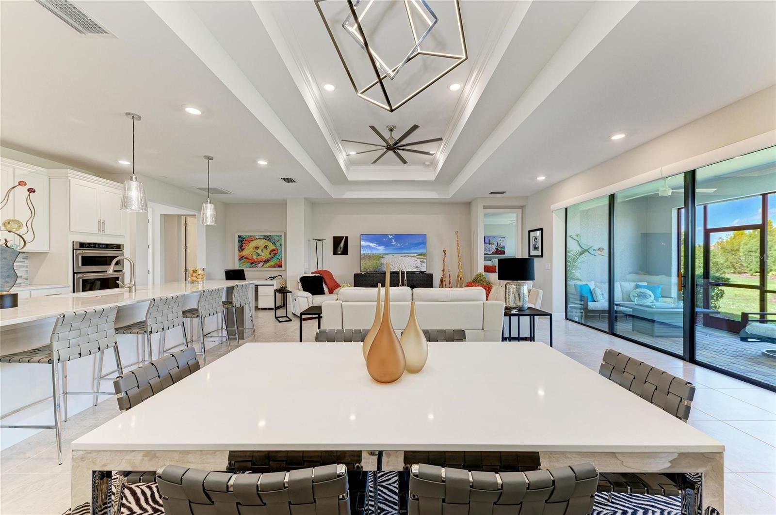 Nestled in the heart of Del Webb at Lakewood Ranch. A premier active lifestyle 55+ community. This STARDOM model blends modern comfort with timeless design. Boasting 2 master bedroom suites with a split floorplan for privacy, 2.5 bathrooms, and a flexible den/home office. Thoughtfully designed for both everyday ease and effortless entertaining. This open floor plan with over 2,200 square feet of living area screams of quality upgrades and seamlessly blends indoor and outdoor living with the 15' wide sliding glass doors to the lanai, flooding the home with natural light. Step outside to your screened lanai, perfect for morning coffee or unwinding in the evenings The gourmet kitchen takes center stage with its oversized island ( 3 inches short of 12'), quartz countertops, marble tile backsplash, built-in Kitchen Aid appliances, and walk-in pantry—making meal prep a breeze. The owner's suite is a true sanctuary with plantation shutters for privacy and the en-suite featuring dual sinks, walk-in shower, and generous walk-in closet. Storage space is more than ample throughout the home besides the over-sized laundry room, closet space, kitchen island tastefully designed lower cabinetry, coat closet etc. The extended garage provides more storage or hobby space or golf cart space all set on a well-sized 0.21-acre lot. Residents enjoy resort-style amenities including a clubhouse, fitness center, pools, pickleball, tennis, walking trails, and a full calendar of social events. Just minutes from dining, shopping, medical care, and world-famous Gulf beaches. Live the lifestyle you’ve earned—schedule your showing today!!!