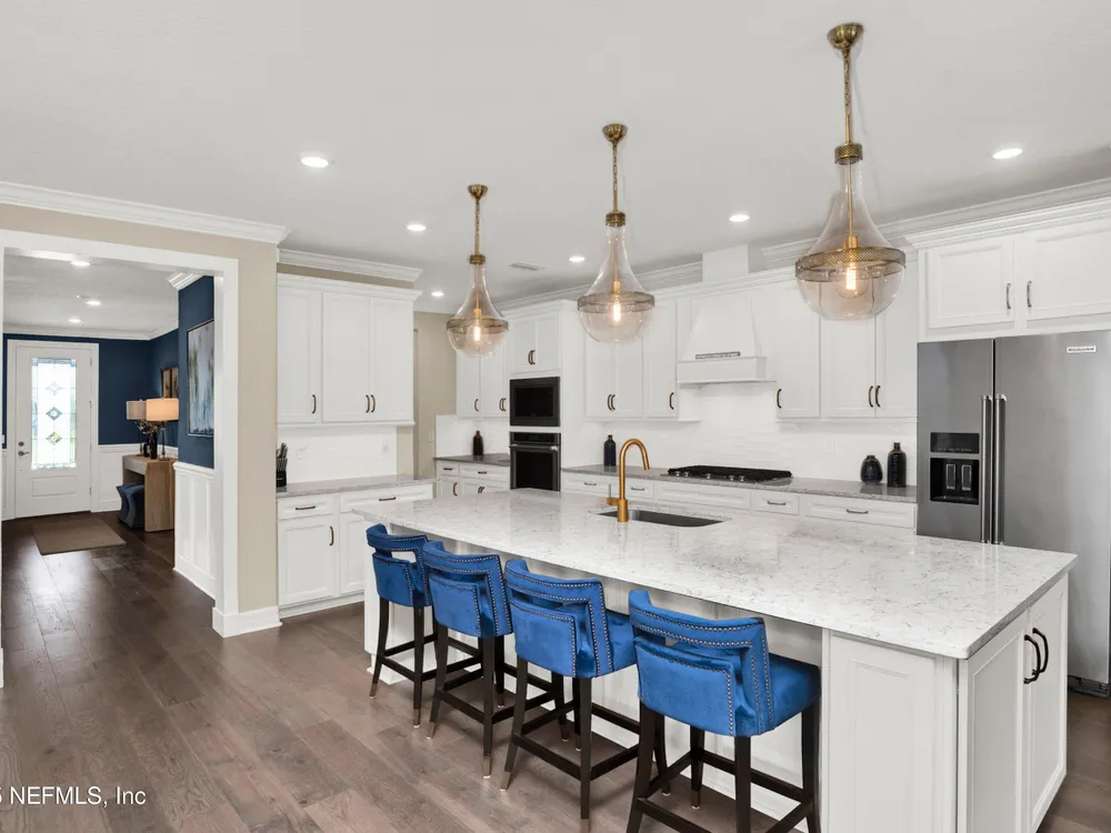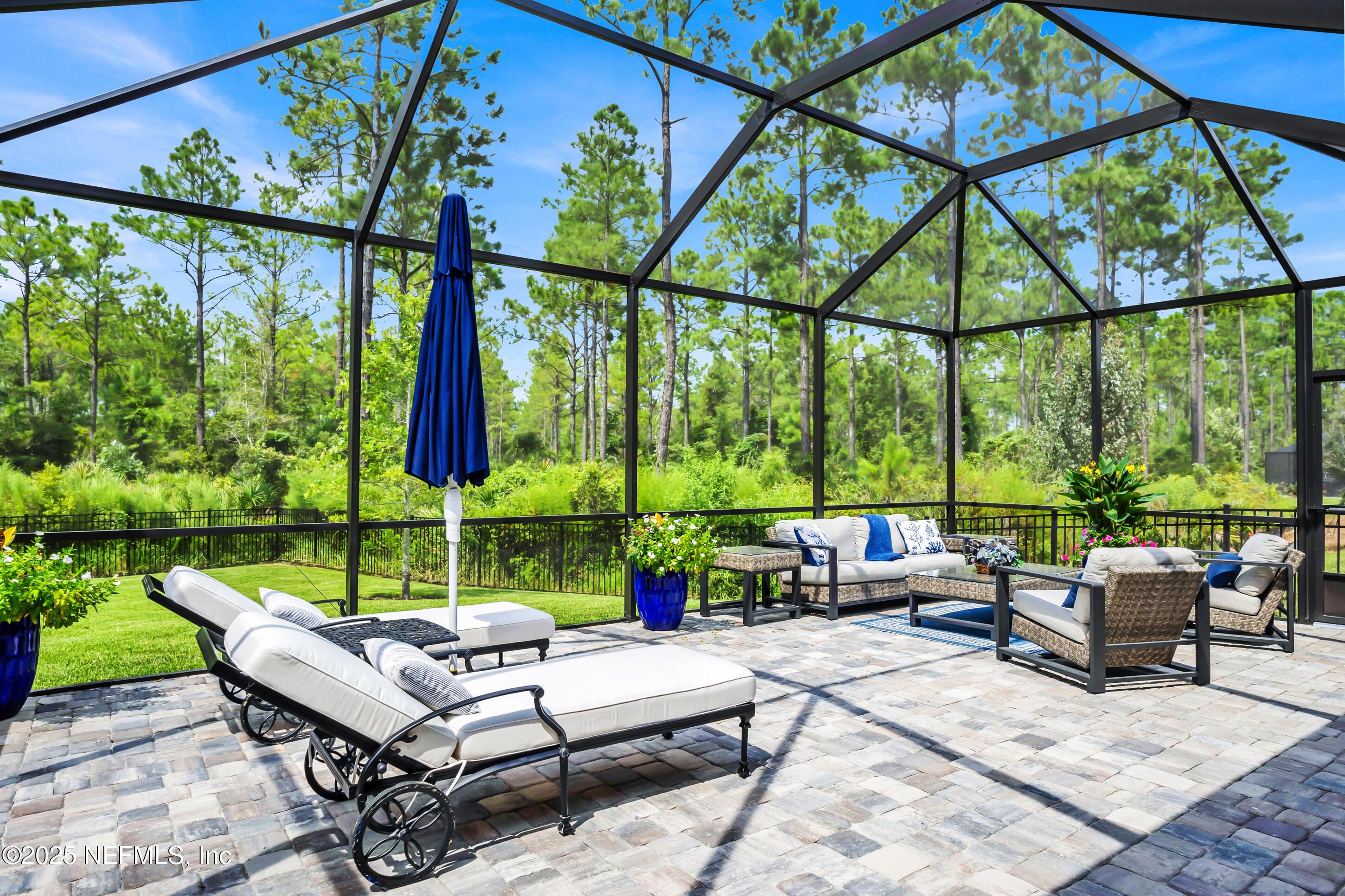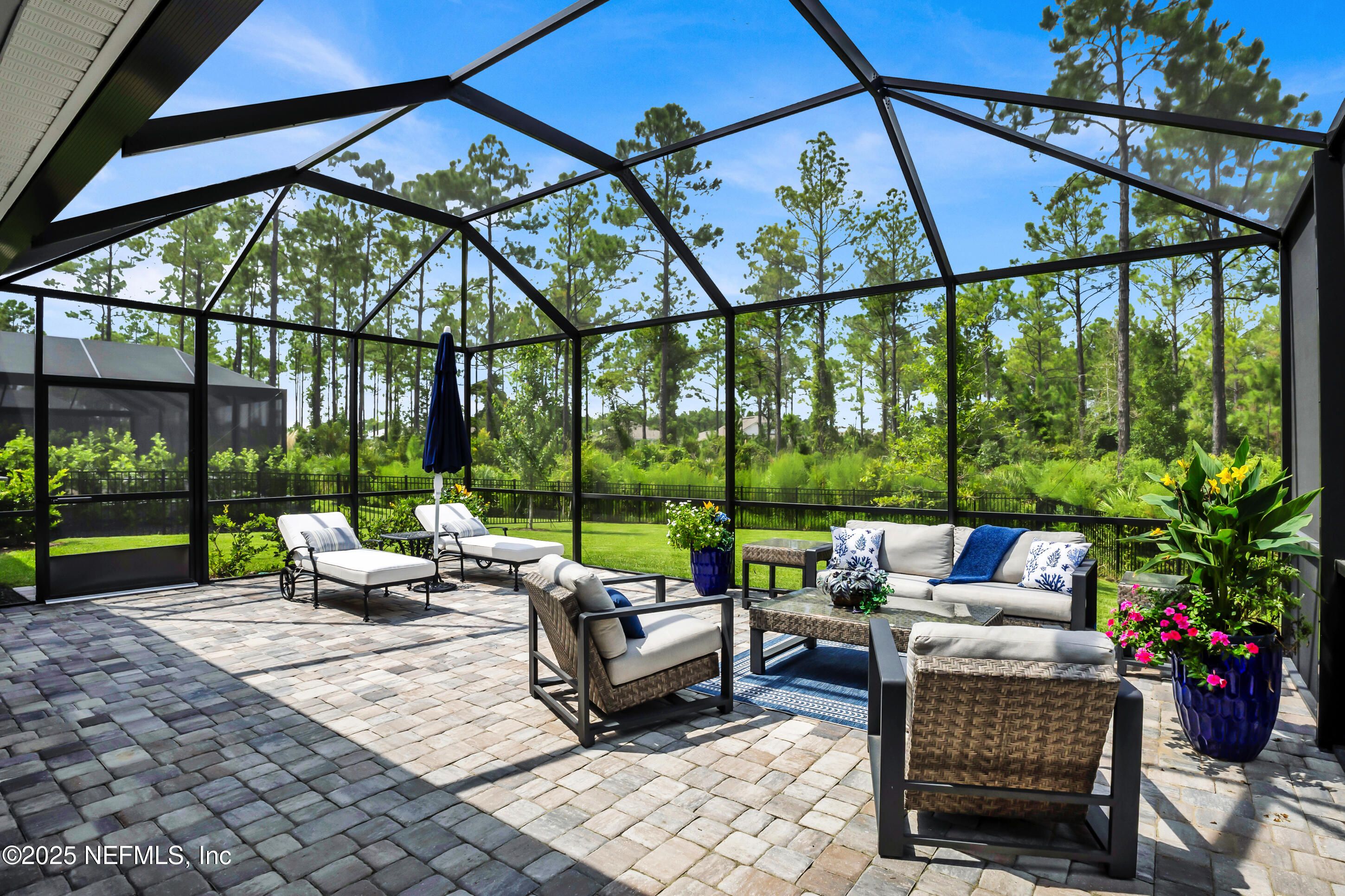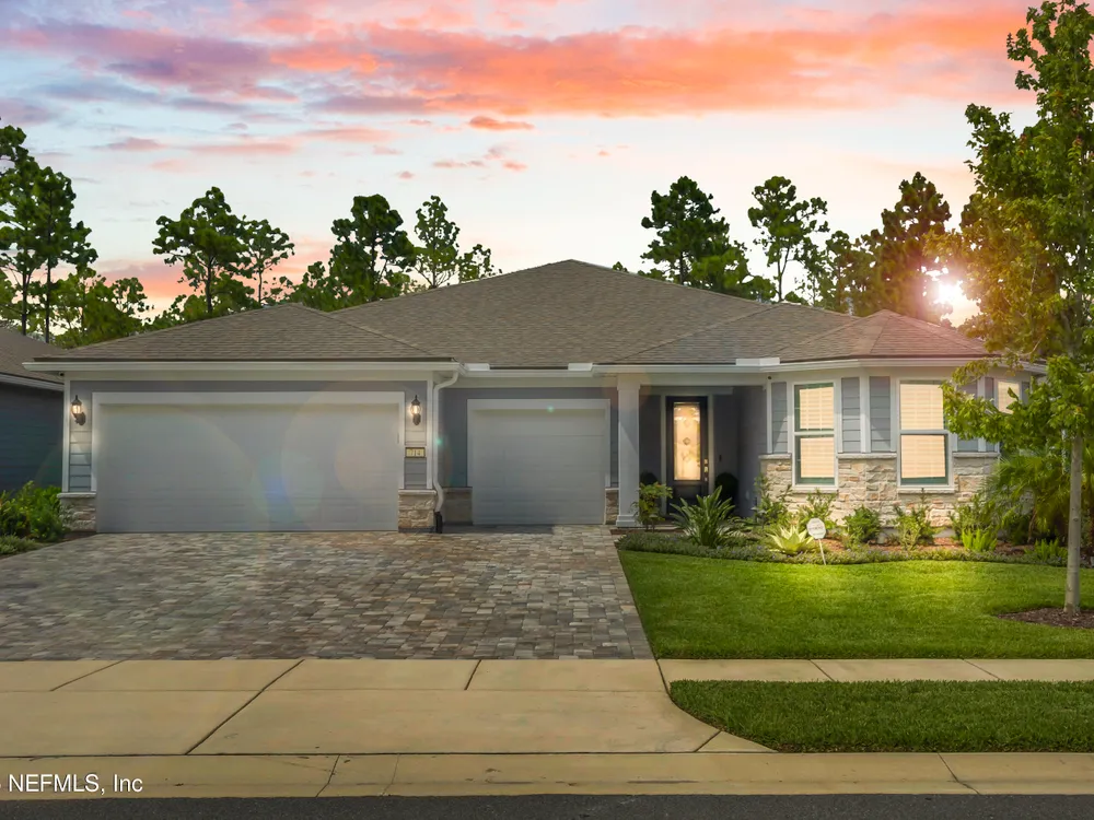 Why wait to build when you can have everything you want in this pristine Renown floor plan home in Nocatee's Del Webb Community. Built just a year ago, this house has ALL the bells and whistles, including wide-plank hardwood floors, a custom fireplace and mantle and a screened lanai facing a very private preserve area. This popular floor plan features 3 bedrooms/3 bathrooms allowing flexible spaces for guests or two separate offices. The gourmet kitchen features upgraded white wood cabinets, under cabinet lighting, and high-end appliances. The kitchen/family room/eating areas are open and airy - perfect for entertaining. The owners suite is super luxurious with upgrades galore! Need additional storage? This charming floor plan has 3 garage spaces and plenty of parking in the paver driveway. Pets? The backyard is already fenced and the lanai has a summer kitchen ready to fire up the grill. These sellers thought of everything!