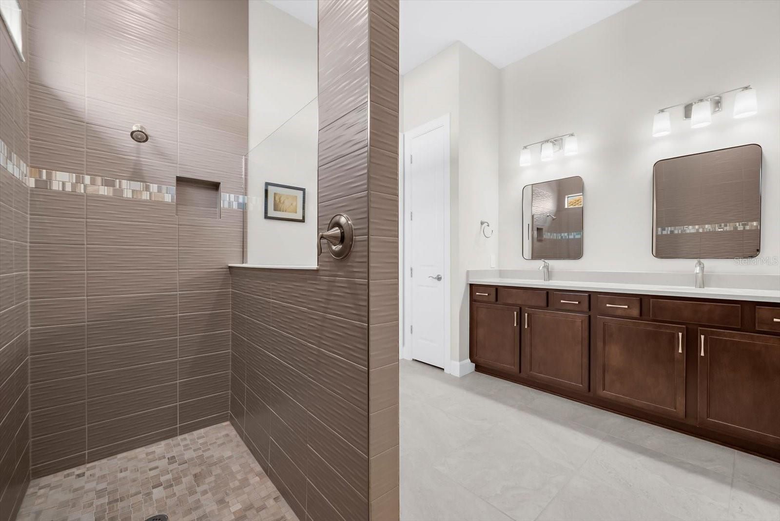 Your Perfect Private Pool and Spa Home Awaits. You’ve just found the perfect Prestige Model a stunning home where timeless elegance meets modern sophistication. Discover the best of Southwest Florida living in this beautifully crafted 2021 home, ideally located in the highly sought-after Del Webb 55+ community in Lakewood Ranch, the nation’s premier master-planned development. Nestled on a private corner lot just a short walk to the clubhouse, this nearly new home impresses with outstanding curb appeal and designer details throughout. Offering three bedrooms (two with private ensuites), a versatile third bedroom or office with glass French doors, and a guest half-bath, this floor plan combines comfort, privacy, and smart design. Natural light enhances the neutral color palette, ceramic tile flooring. Designer lighting, contemporary fans, plantation shutters, and a built-in drop zone add sophistication and function. Enjoy peace of mind with Smart Home technology, ring cameras, motorized privacy screens, and an in-wall pest control system. The chef’s kitchen is the heart of this home, boasting 42” cabinets with under-mount lighting, quartz countertops, and a stunning glass tile backsplash. Top-of-the-line KitchenAid stainless steel appliances include a five-burner gas cooktop with a sleek hood, built-in convection oven and microwave, and a large island with seating for four. A walk-in pantry and open flow to the dining and great room make this kitchen perfect for cooking and entertaining. The owner’s retreat offers a peaceful escape with a tray ceiling and luxurious ensuite featuring dual vanities, modern mirrors, and a walk-in shower with floor-to-ceiling tile. the two spacious walk-in closet provide ample storage. Guests will enjoy their private ensuite with a custom mirror and shower/tub combination. The laundry room is thoughtfully designed with cabinets with washer and dryer, utility sink. Step outside to your extended, screened lanai a private retreat ideal for relaxing or entertaining. Enjoy a fully equipped outdoor kitchen with a grill, refrigerator, and sink. The private heated saltwater pool and spa offer year-round enjoyment, while motorized privacy screen provide protection and convenience. Surrounded by lush landscaping, this space captures the essence of resort-style living. Additional highlights include 8-foot interior doors, soaring ceilings, the great room is very spacious including tray ceilings and high-end lighting and fans throughout, including on the lanai. This immaculate, move-in ready home blends elegant design, practical luxury, and an unbeatable location with one of Florida’s premier communities. Don’t wait a home of this caliber in Del Webb rarely last long. Schedule your private showing today and experience the exceptional Florida lifestyle you’ve been dreaming of.