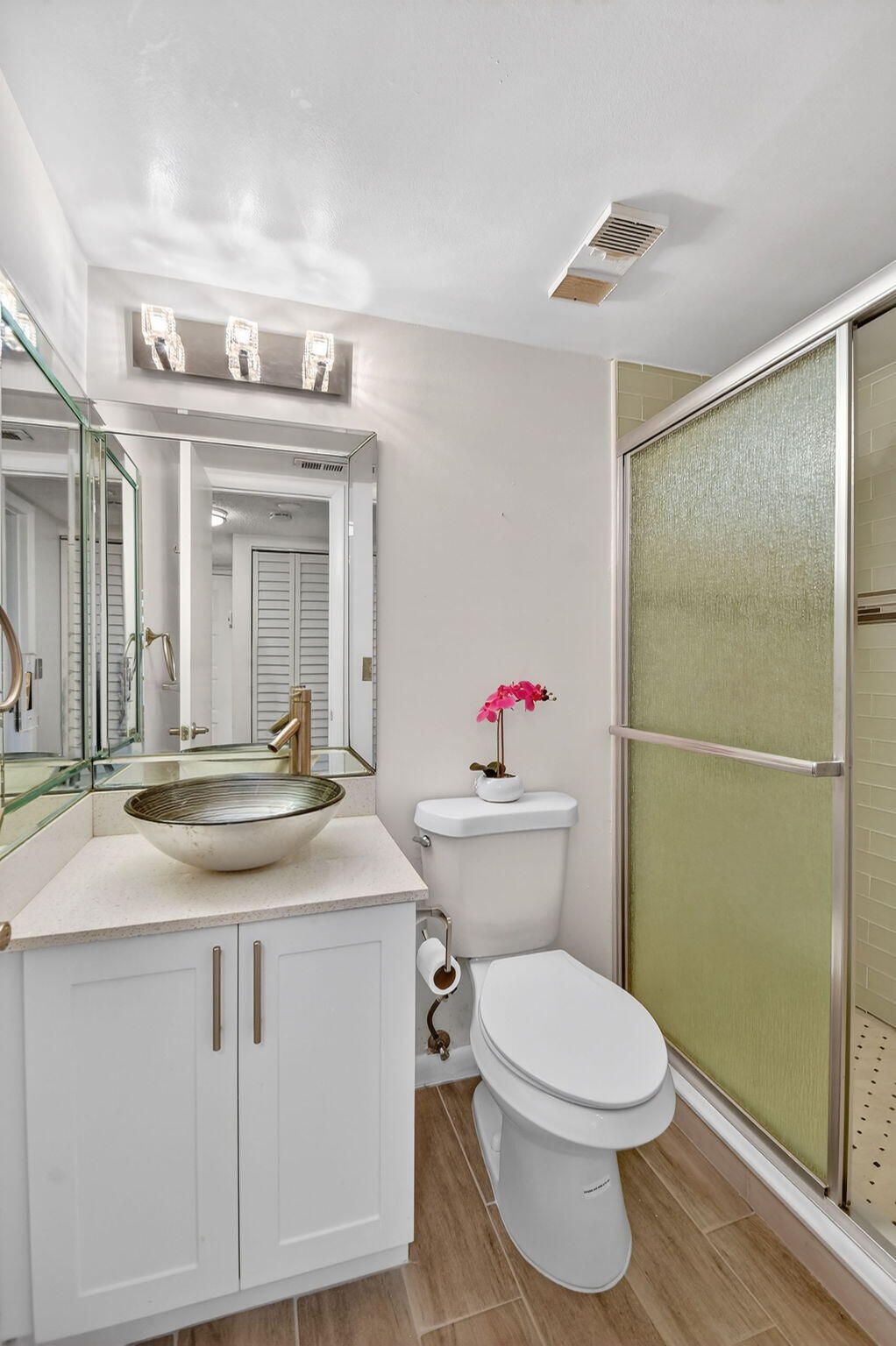 This beautifully maintained 2-bedroom, 2-bath condo offers the perfect blend of comfort, convenience, and modern style. Step inside to a bright, open-concept layout featuring wood-look tile plank flooring throughout and thoughtfully updated finishes. The renovated kitchen shines with stainless steel appliances, sleek cabinetry, and ample counter space -- ideal for both everyday living and entertaining. Additional upgrades include impact windows and a new A/C, providing efficiency, comfort, and peace of mind. The spacious primary suite offers a walk-in closet and private en-suite bath, while the second bedroom is perfect for guests or a home office. Enjoy the added convenience of an in-unit washer and dryer and assigned parking.