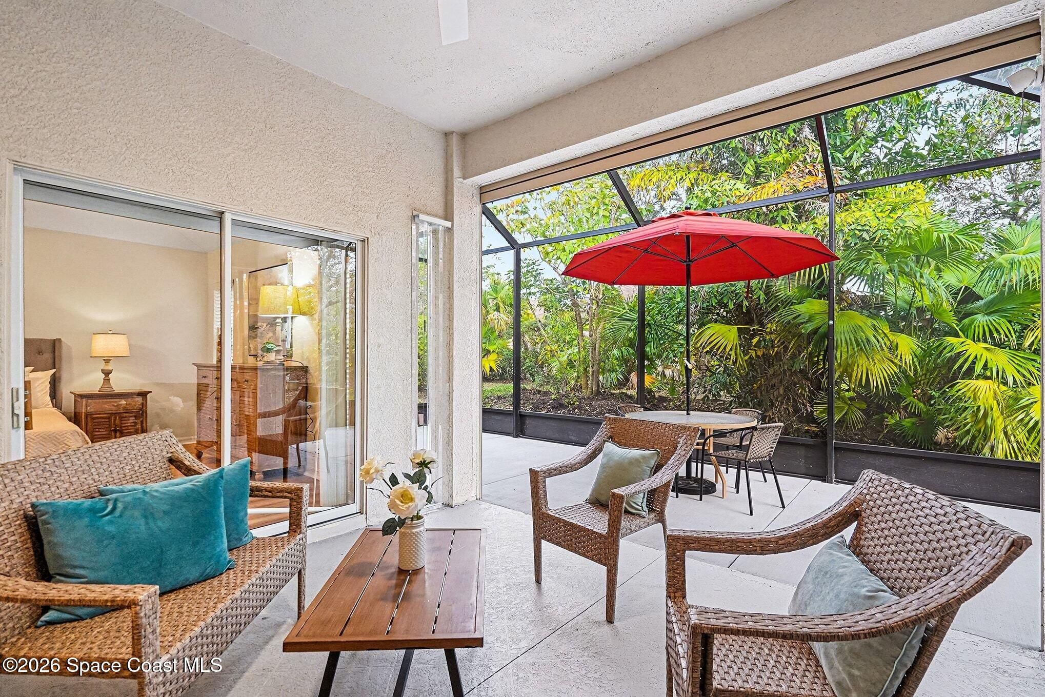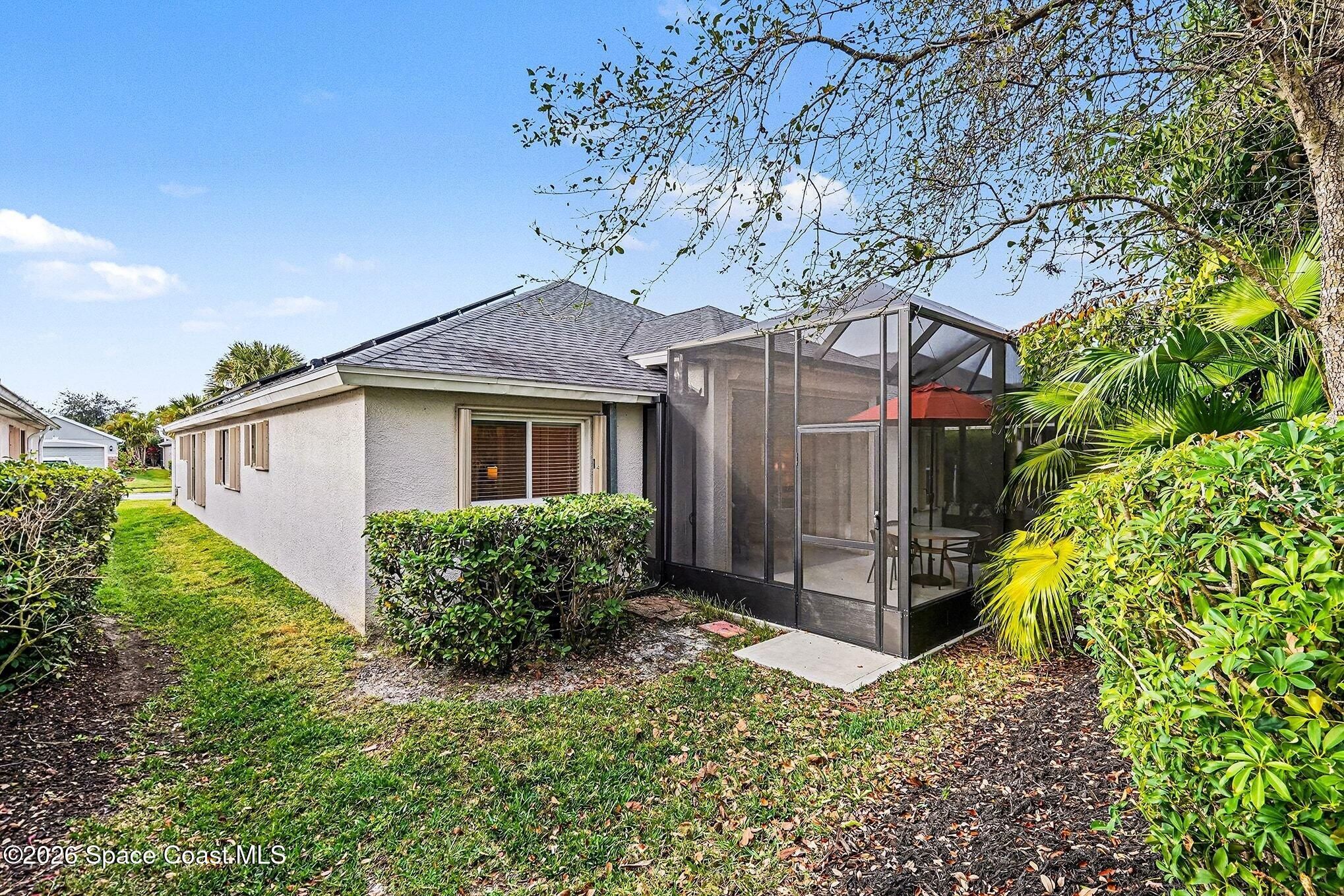 Simplify your life and reduce your energy bills!! Enjoy your own private tropical paradise in the most prestigious, sought after 55+ resort style, maintenance free community nestled in the heart of Viera! This one of a kind solar temperature controlled home and lifestyle can be yours. Granite countertops, water treatment system, solar panels, screened entry way, accordion storm shutters and extended screened lanai overlooking a tropical oasis are just the beginning. You will love the split floor plan! 4beds,3 baths vaulted ceilings and spacious eat-in kitchen, breakfast bar, family room, master bedroom suite, walk-in closet and large master bath with zero threshold shower entry. Enough room for everyone and everything. Home backs up to mature landscaping for a very private space. HOA includes Lawn Maintenance,exterior paint of house scheduled this year,22,000 sq.ft.Clubhouse with gym, Resort Heated Pool/Spa, Tennis, Shuffleboard,Basketball,Bocci,Billiards,Island Grill + much more.