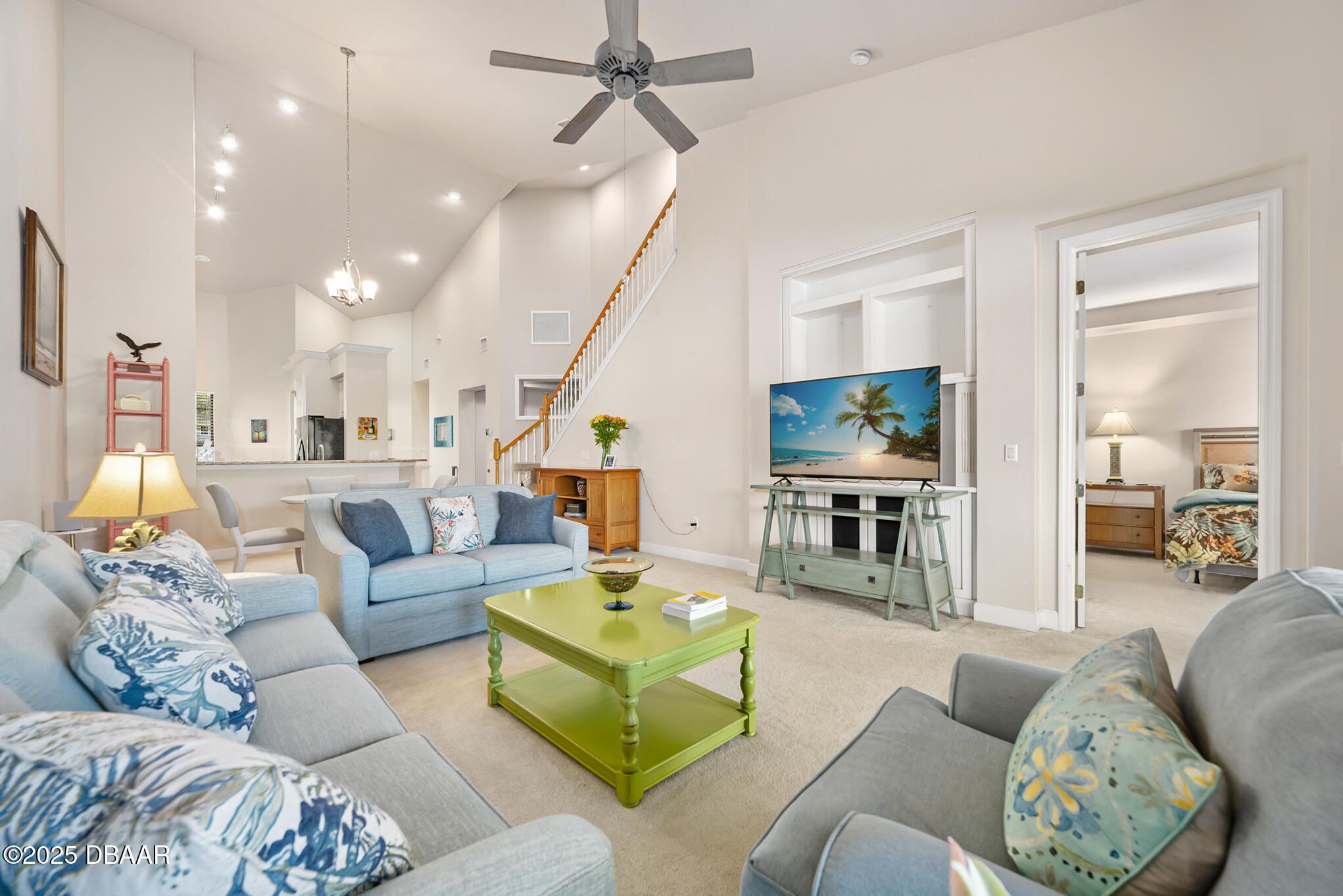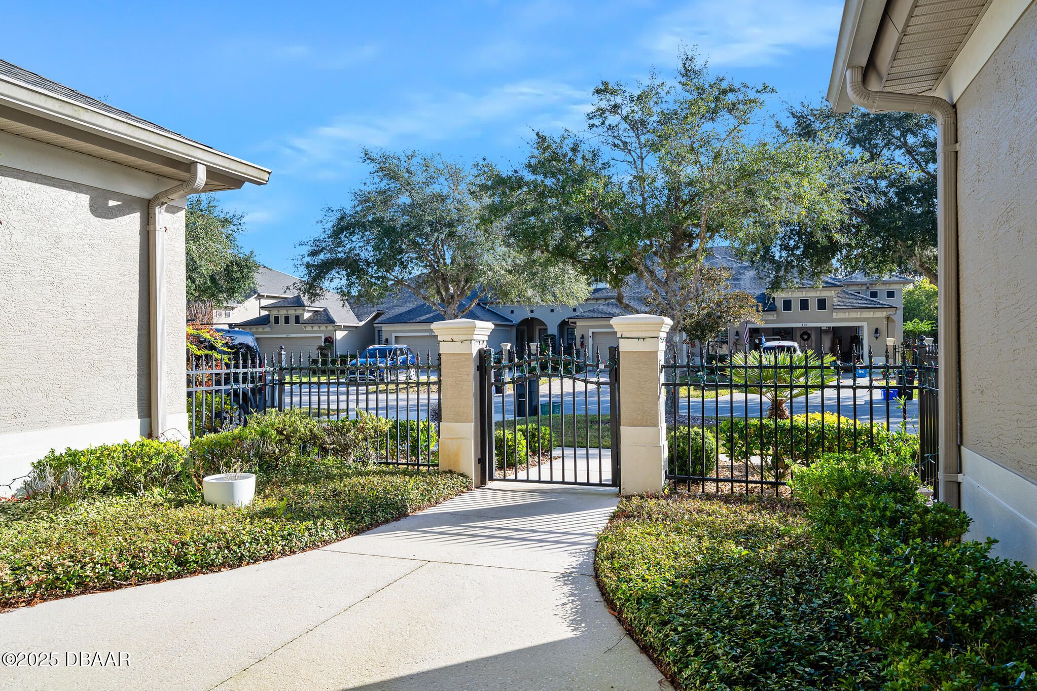 Discover the perfect blend of comfort, elegance, and Florida living in this stunning townhome nestled within an exclusive gated community Plantation Bay Community. From the moment you arrive, the pavered driveway sets the tone for the quality and care found throughout the home. Step inside to an airy open floor plan designed for effortless living and entertaining. The spacious kitchen features gleaming granite counters ample cabinetry and flows seamlessly into the living and dining areas, all framed by serene views of the lake and the lush golf course beyond. With two luxurious primary suites, this home offers exceptional flexibility—ideal for multi generational living, hosting guests, or simply enjoying extra space and privacy. A den offers the opportunity for a 3rd bedroom. Unwind on the screened patio, where gentle breezes and tranquil water and golf course views create the perfect backdrop for morning coffee or evening relaxation. Located in one of Florida's most sought after, gated communities with a new state of the art Clubhouse and country club. Here there are a la carte options for joining the country club, 2 golf courses, 2 pools, a fitness center, spa, tennis and pickleball courts. This townhome offers not just a home, but a lifestylepeaceful, secure, and surrounded by natural beauty.