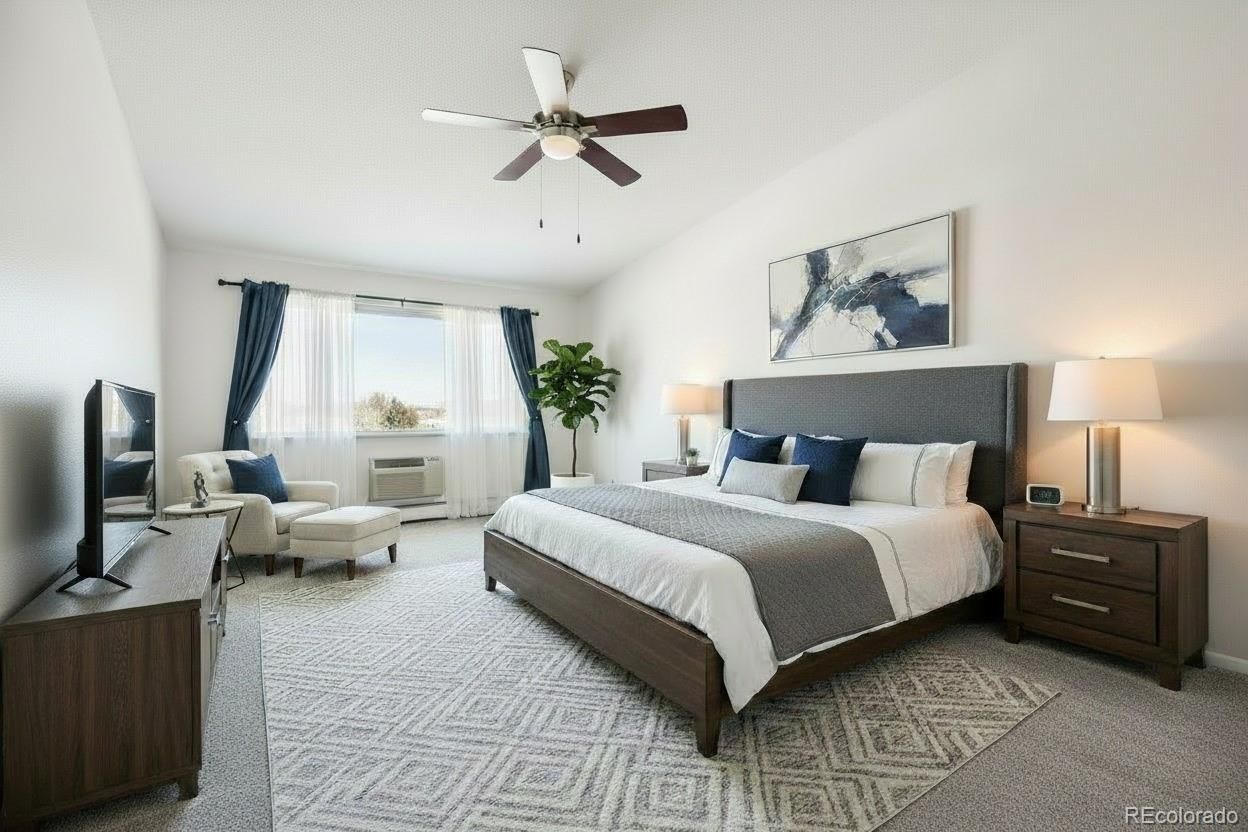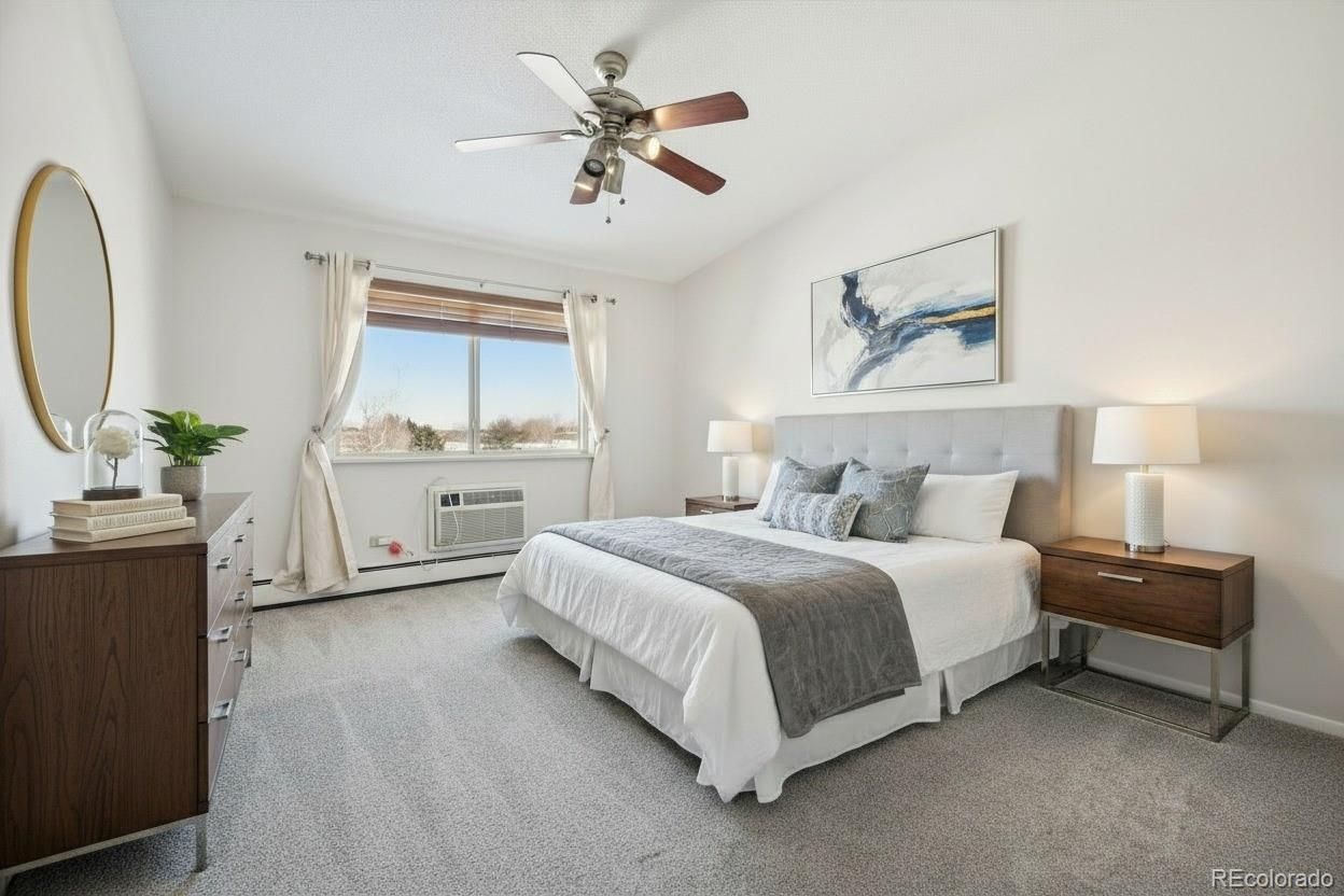 *Remodeled Penthouse Condo!* Move Right In! Views of trees and golf course in the distance! Desirable 1380 sf floorplan features 2 bedrooms, 2 bathrooms, + large bonus den or 3rd room, and an additional multi-purpose room for storage or small hobby/office space! All new paint & carpet! 1 Newer Detached Garage w/Opener included! Remodeled kitchen w/updated: cabinets, quartz countertops, stainless appliances, and tile backsplash. Bathrooms w/updated vanities- granite tops. Primary bedroom oversized with en-suite 3/4 bathroom and spacious walk-in closet. Multi-purpose room is great for storage or mini-office/hobby room. Also included are 3 wall ac units- living room and both bedrooms. Screen enclosed lanai with 2 new slider doors. Penthouse floor has vaulted ceilings! Building close to highline canal. Additional bonus storage room in building on same floor. If you are looking for space and storage, this condo is a great find! **Windsor Gardens is Colorado's Largest Age 55+ Active Adult Living Condo Community. Did you know? Monthly HOA Dues include annual property taxes! And heat, water, sewer, trash, round-the-clock patrolling community responders, full time onsite association management, grounds/building maintenance, and activities department. Enjoy clubhouse amenities such as fitness center, indoor/outdoor pools, hot tub, sauna, billiards, library, craft rooms for ceramics, sewing, woodworking, and 9 hole par 3 golf course and onsite restaurant both open to the public. Stay engaged with a wide array of activities, clubs, and events scheduled every month. Additional features include garden plot program, private walking trail and nature preserve, and RV/Boat storage. The Highline Canal runs full length along south side of the complex. RTD Bus Stops located thru-out the community. FHA/VA approved. Close to restaurants, stores, shopping…Minutes to Lowry, Hwy 225, Cherry Creek…Easy access to DIA and downtown. Come see for yourself what Windsor Gardens has to offer. ©2021