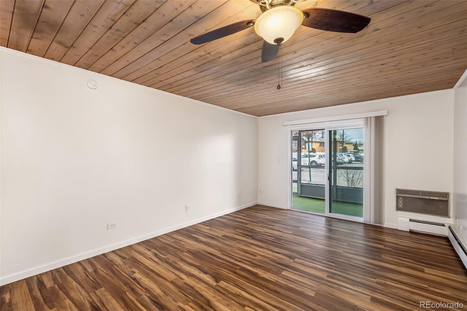 Welcome to this move-in-ready 1-bedroom, 1-bath ground-floor condo in Windsor Gardens, Denver’s premier 55+ active adult community. This well-maintained unit offers a peaceful retreat and features a spacious enclosed lanai/covered patio with eastern exposure and abundant natural light. The open living area includes fresh laminate, and the large bedroom offers generous closet space. A rare detached one-car garage includes keypad entry, remote opener, and built-in shelving for additional storage. Monthly HOA dues include annual property taxes, heat, water, sewer, trash, grounds and building maintenance, security patrol, on-site management, and access to extensive amenities. Windsor Gardens features a 9-hole par-3 golf course, clubhouse, fitness center, indoor and outdoor pools, hot tub, sauna, library, billiards, craft rooms, on-site restaurant, garden plots, walking trails, Windsor Lake, and a full calendar of activities. RTD bus stops throughout the community. Conveniently located near Lowry, Cherry Creek, Hwy 225, DIA, downtown Denver, shopping, dining, medical services, and outdoor recreation. Pets allowed per association guidelines. FHA/VA approved. Enjoy low-maintenance, resort-style living in Colorado’s largest 55+ active adult community. Schedule your showing today.