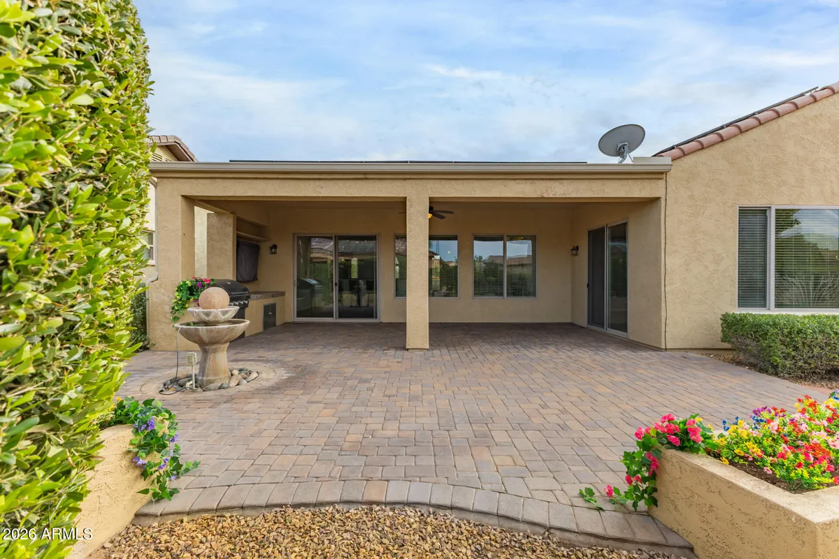LIVE THE LIFE YOU ALWAYS DREAMED!! Your new home offers all the upgrades & options you expect from a beautiful ''Concord'' model! Start w/ an outdoor living space that features a built-in BBQ, TV, water fountain, ext. paver patio, all surrounded by a lush desert landscape w/ PVC irrigation! Enjoy your morning coffee on the expansive front courtyard! The home is just as gorgeous inside w/ details that inc. a Gourmet Chef's dream kitchen w/solid Cherry cabinets, pull-out shelves, stainless appliances, gas cooktop, granite counters & center island. This extraordinary home features 10' ceilings w/ outstanding crown molding, a Palladian window, designer tile floors, custom French doors, stunning entertainment center & Fireplace! FULL 3 CAR GARAGE w/ 8' DOORS!! PAID SOLAR lease!! MOVE-IN READY! Sun City Anthem at Merrill Ranch offers a 48,000 SF recreation center w/ craft rooms for quilting, pottery, glass works, jewelry & crafts, spacious ballroom w/ stage for dancing, theatrical productions, concerts & more. PLUS full gym, work out rooms, indoor lap pool & spa, walking track, cafe area, card rooms, poker tables, pool table, ping pong table, business center, class room for interesting seminars! Troon Poston Butte Golf Course is one of the nicest in the area. Sun City offers Pickleball, Tennis, Bocce Ball, Horseshoes, Shuffleboard, clubs for all activities.......LIVE WHERE THE SURROUNDINGS DELIGHT, INSPIRE & CHALLENGE YOU!