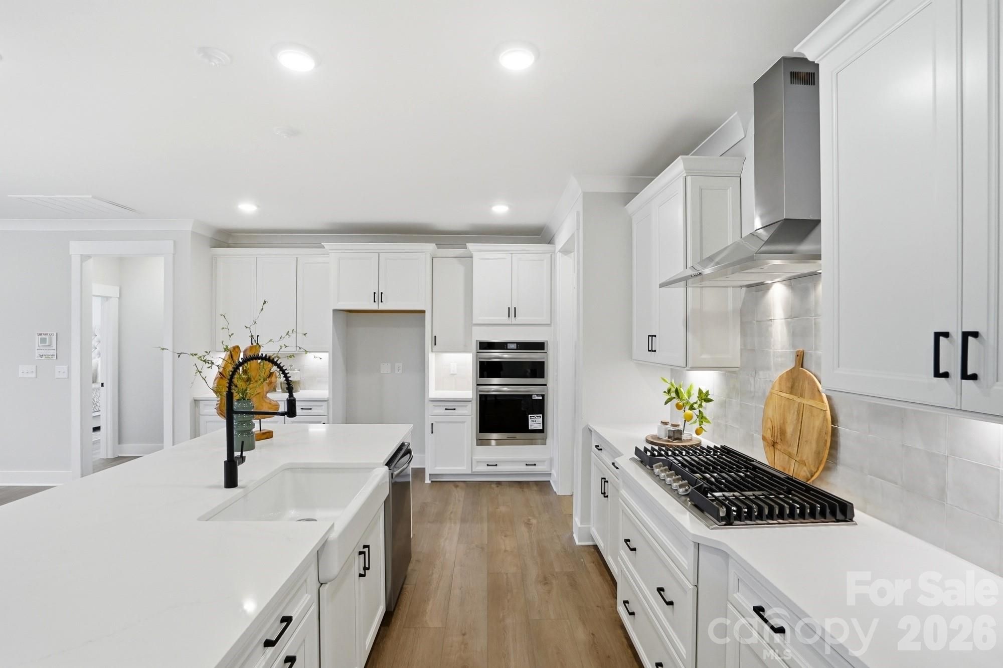 - Dishwasher, Disposal, Exhaust Hood, Gas Cooktop, Microwave, Self Cleaning Oven, Tankless Water Heater, Wall Oven