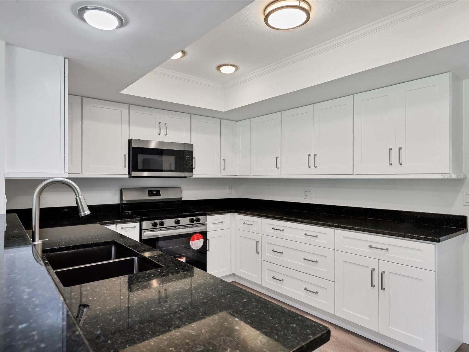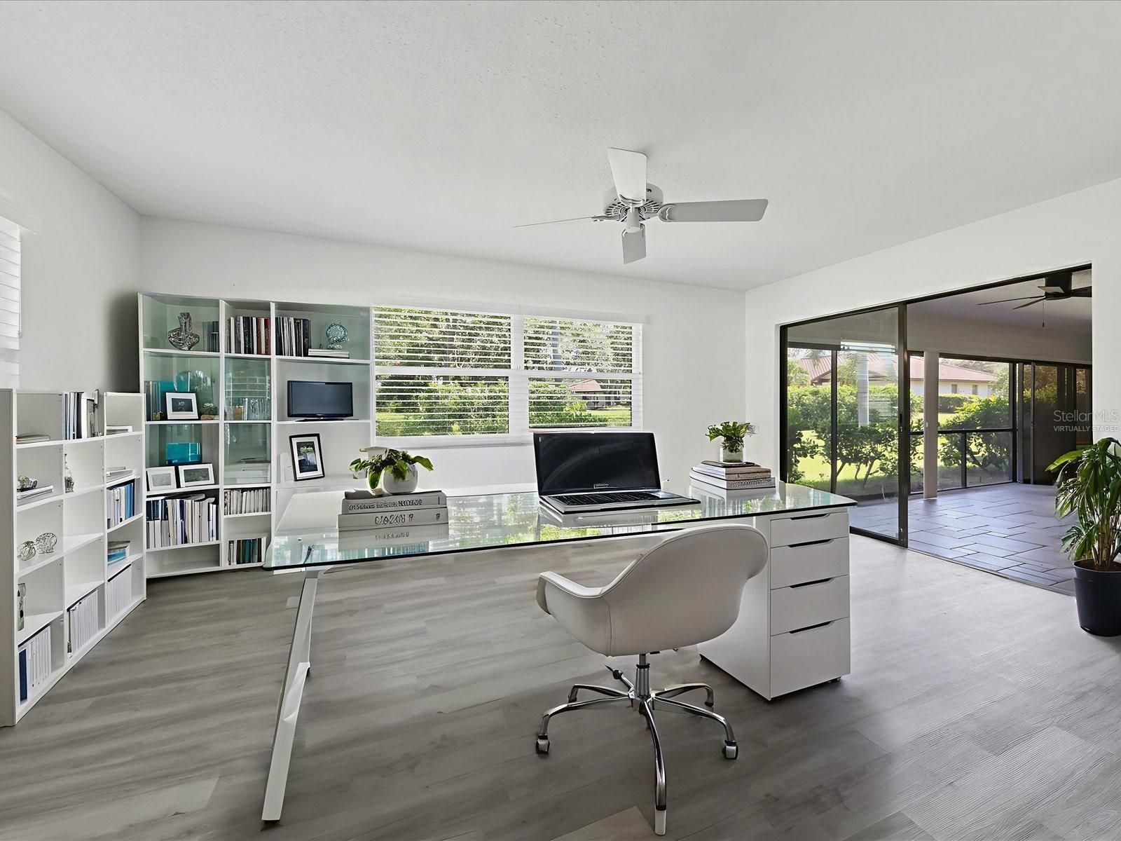 One or more photo(s) has been virtually staged. COMPLETELY UPDATED VILLA, LIGHT & BRIGHT, OPEN & AIRY TWO BEDROOMS PLUS DEN OR OFFICE FLEX SPACE. 2000 Sq/ft Living area with Luxury Vinyl Plank flooring throughout. Shows like New! Recently Painted in & out, Granite Counters, Soft-close Cabinets, Updated Lighting, All new SS Appliances. Plus Spacious, air-conditioned, Tiled Lanai with Glass doors & New View screening and Greenspace views! Primary Bedroom with Ensuite Bathroom, Dual Closets & Access to the Flex Space, which also opens to the Lanai. All on One Floor, no Stairs. New Roof in 2022 & New AC in 2025. 2 Car Attached Garage with new Epoxy floor. Courtyard entrance for additional lounge space. This Villa sits on a Cul-de-Sac which has a Lovely Park in the middle. Community Pool & Clubhouse area nearby, and its Heated in the Winter. Lawn care & Cable TV, Internet are included in the Quarterly Fee. Palm Aire Country Club has Memberships available for Golf, Tennis, Pickleball, Pool, Fitness & social Dining. UTC Mall, Benderson Lake Park, Shopping & tons of Restaurants nearby. I75 a few miles East & SRQ Airport a few miles West.