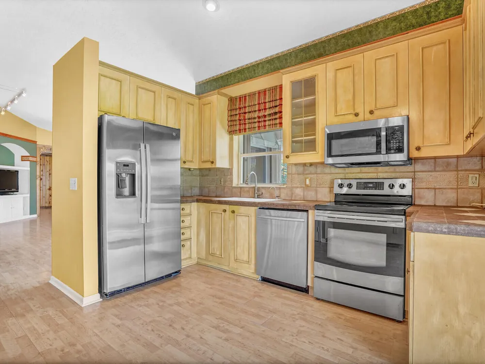 - Electric Garage Door, Dishwasher, Dryer, Microwave, Electric Range, Refrigerator, Washer