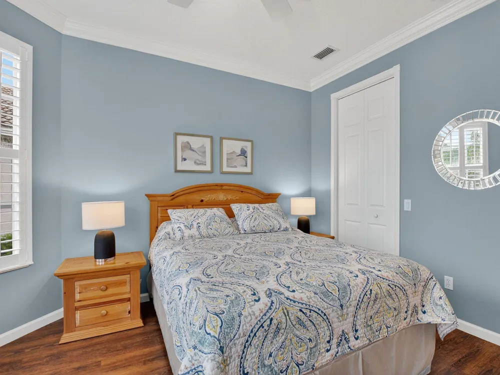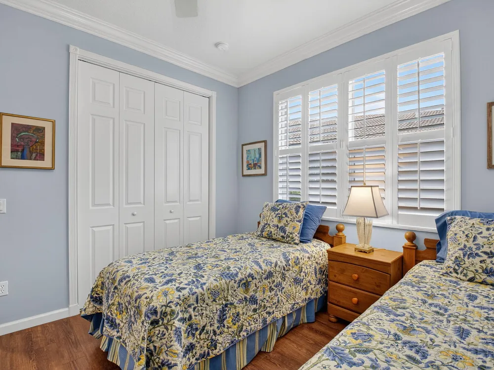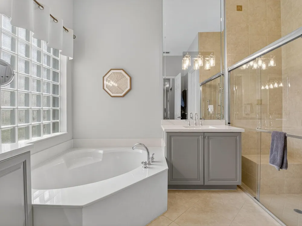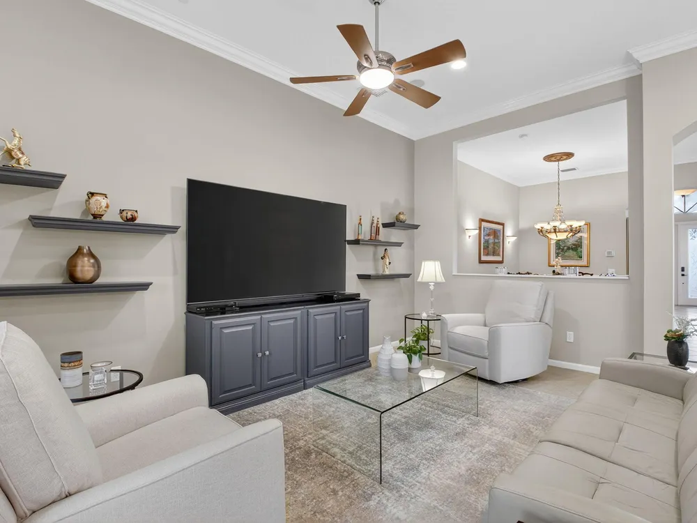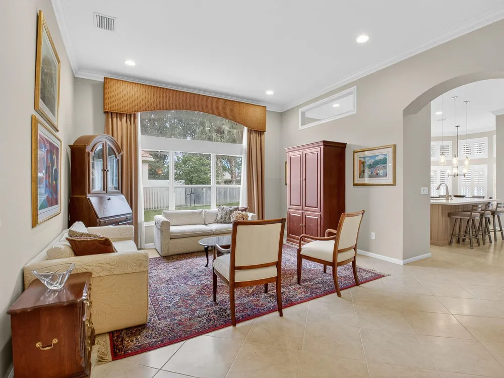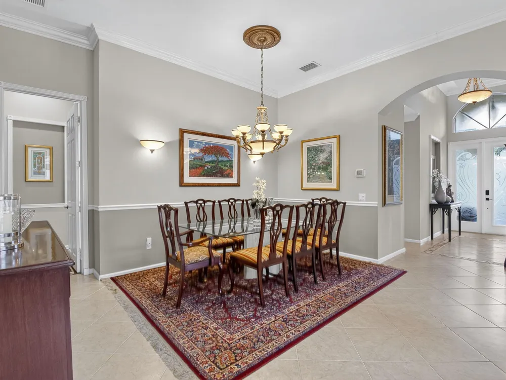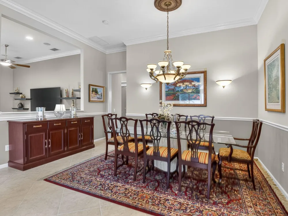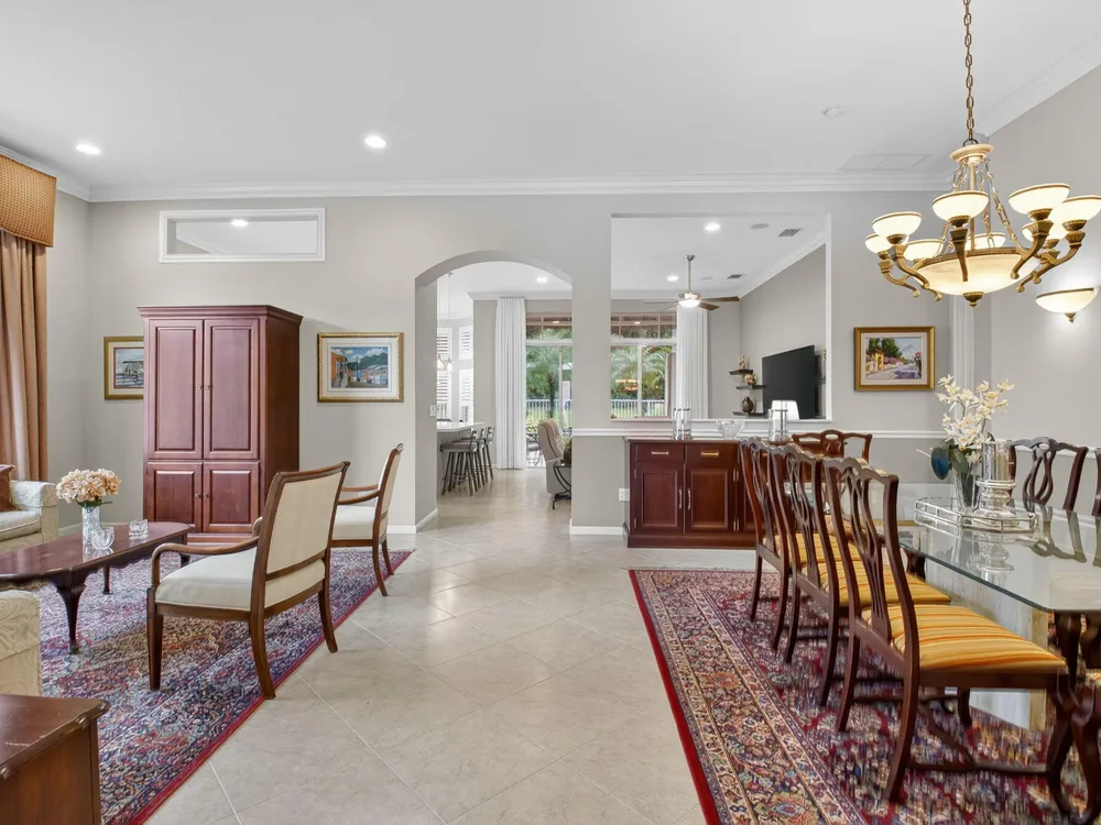 Fabulous updated 4BR/2.1BA Gibraltar model w/wall opening sits on oversized fenced in lot (8396 sq ft) w/room for a pool. Enjoy your private in-ground SPA with new heater & pump, plus 20' motorized retractable awning perfect for relaxing or entertaining. Contemporary kitchen w/quartz counters, updated island & pullouts in all cabinets, Both kitchen & baths shine with quartz finishes. Plantation shutters add timeless style. Additional highlights include custom closet systems for organized living, extended garage w/epoxy flooring, accordion shutters for all windows. With its open, modern layout and luxurious touches, this home truly stands out--move-in ready! Enjoy resort-style clubhouse, cafe, fitness center, lap & resort pools, tennis, pickleball, bocce, billiards, social events & more.