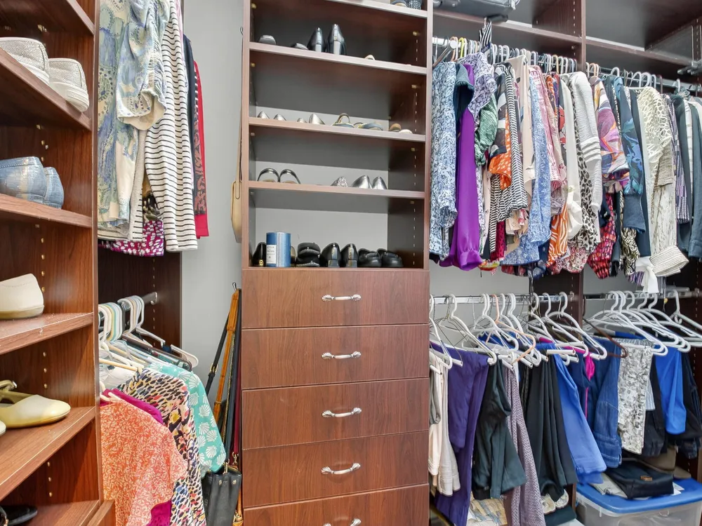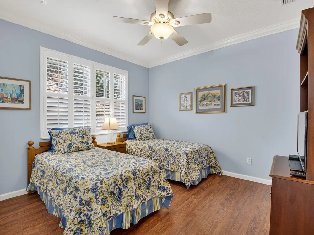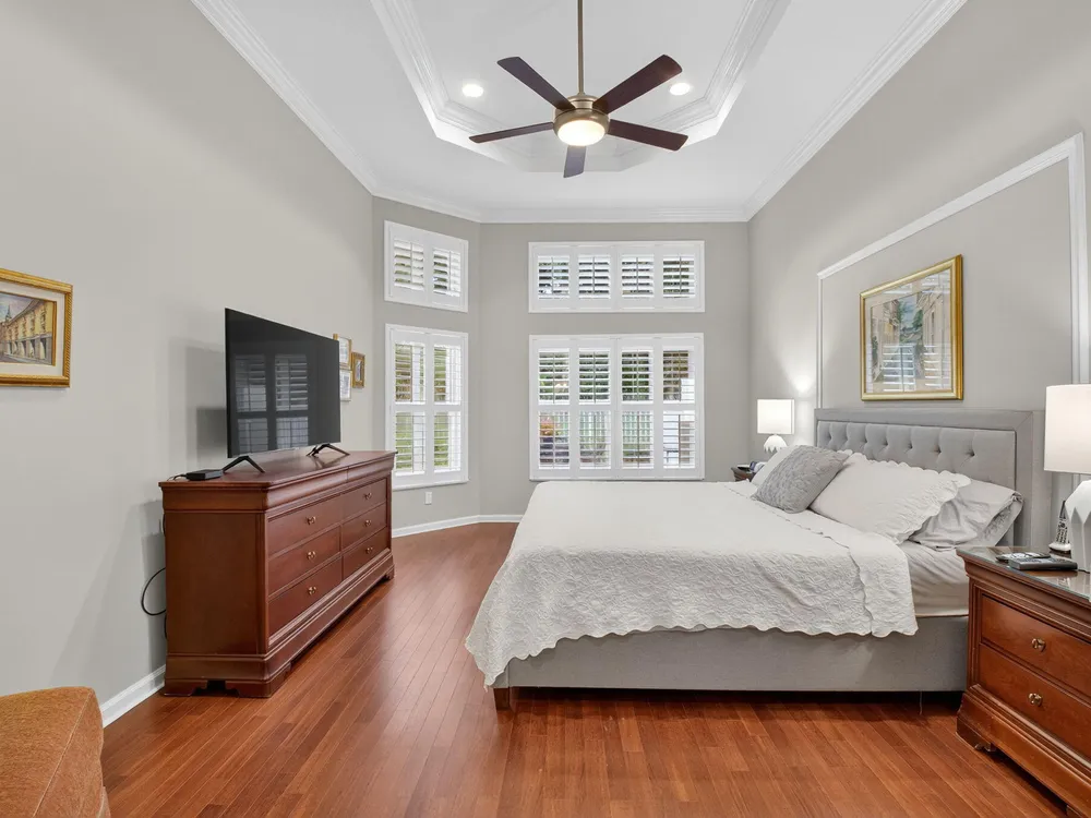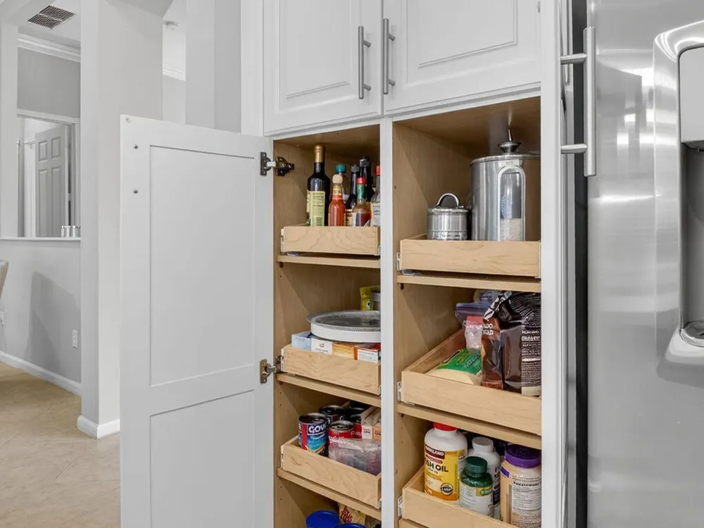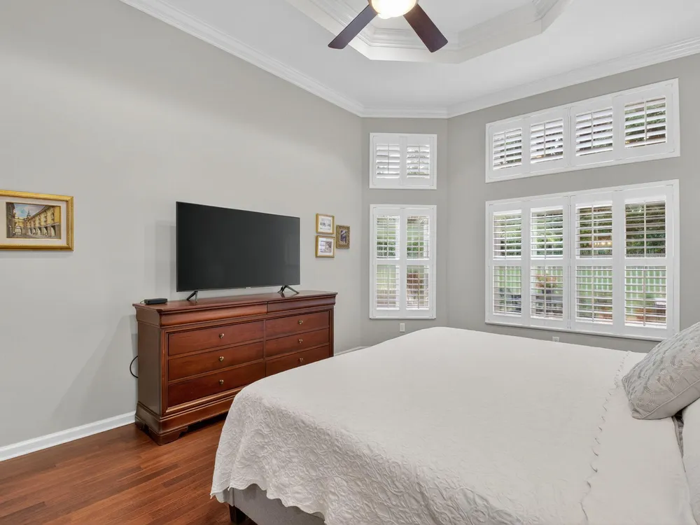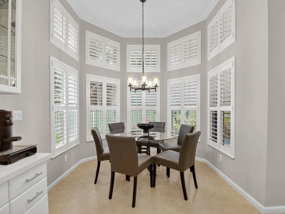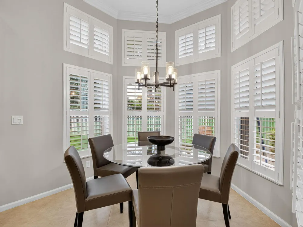 - Built-in Shelving, Closet Cabinetry, Kitchen Island, Pantry, Split Bedrooms, High Ceilings, Walk-In Closet(s), Attic, Home Office, Family Room, Breakfast Area, Eat-in Kitchen, Separate/Formal Dining Room, Awning(s), Plantation Shutters, Single Hung Metal Window(s), Dual Sinks, Primary Downstairs, Sitting Area In Primary Bedroom, Separate Shower, Bathtub, Storm Shutters