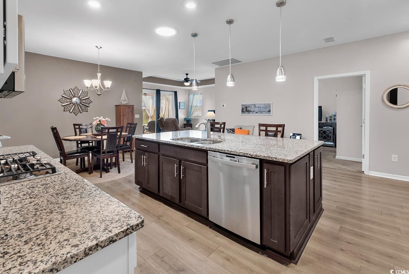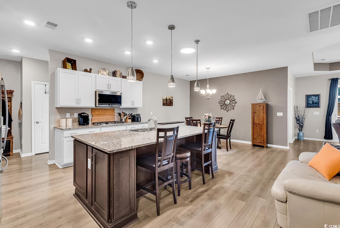 The perfect place to call home for those seeking comfort, connection, and convenience. Built in 2021 and move-in ready, this inviting home sits in a community filled with amenities with something for everyone. Expand your space with the fenced yard, and enter the screen porch thru tall sliders that open on either end and enjoy the afternoon sun and gorgeous sunset through the light filled rooms, step out to the expanded patio enclave for added privacy seating. This open-concept home layout connecting the kitchen, dining, and living room. The gourmet kitchen package features a GE Profile appliances gas cooktop, double electric wall ovens (with convection), an island for casual meals, a solar tube overhead and plenty of storage—ideal for home chefs and busy lifestyles alike. The split floor plan places the primary suite—with walk-in closet and double vanity bath—privately away from two other bedrooms and a full bath, creating space for everyone. Heritage Park is about active living for everyone. Neighborhood amenities include sidewalks, swimming pool, a covered pavilion, pickleball and bocce ball courts, and even a dog park—so everyone, including pets, feels right at home. There's always something to do, whether it's making new friends at the clubhouse, staying active with year-round sports, or just soaking up the sun at the pool. Plus, you're only minutes from North Myrtle Beach, top golf courses, schools, shopping, and dining. Move in and start enjoying the Heritage Park lifestyle—there’s room to grow, thrive, and make memories that last.