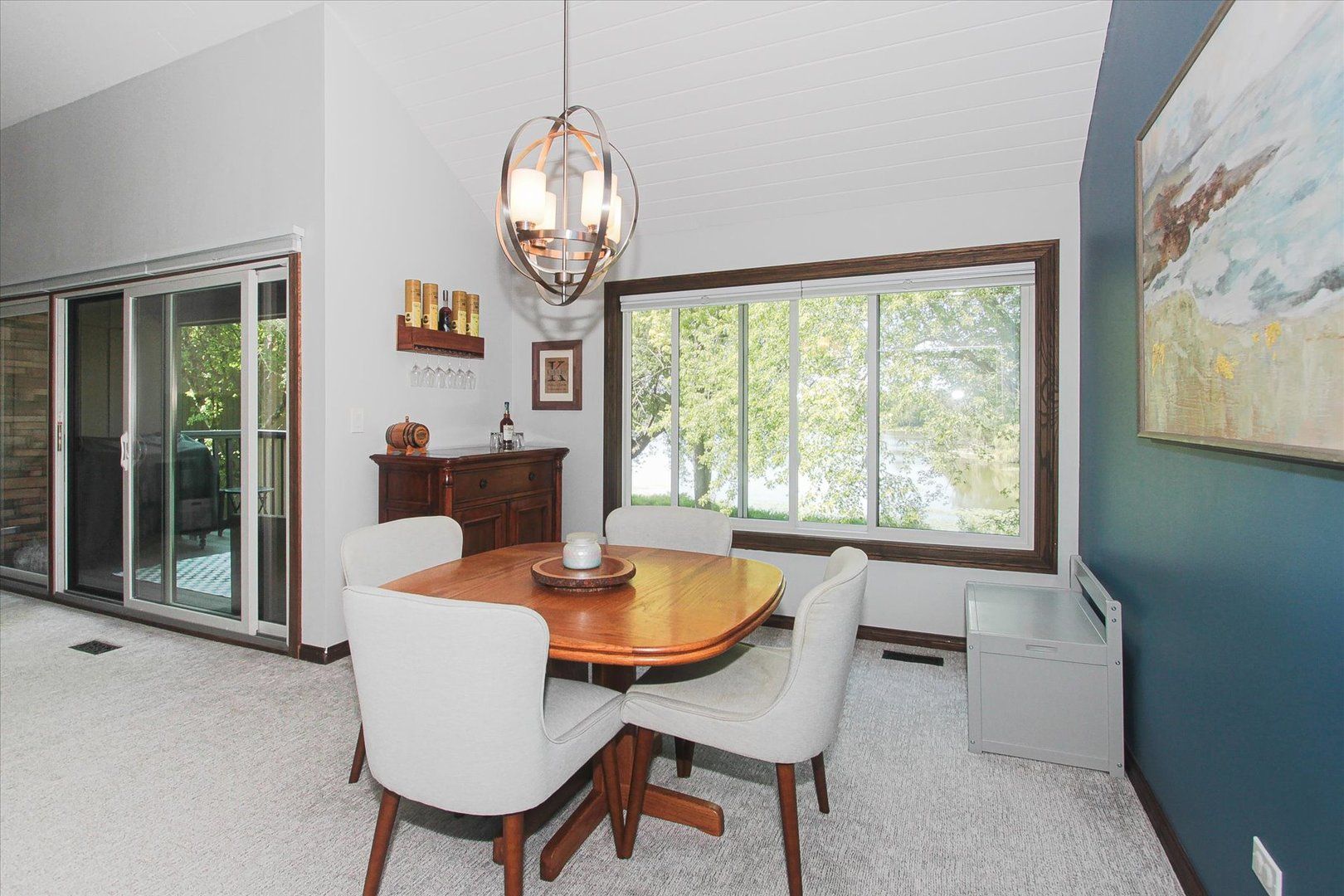 YOU WILL LOVE EVERYTHING ABOUT THIS LAKEFRONT HOME! Well LOCATED on the 100 acre lake, with views of the lake and forest preserve; Enjoy the picturesque westerly view from the large Trex balcony; UPDATES THROUGHOUT for comfortable living - New Heat Pump and A/C (2024), Water softener (2022), Water Heater (2020), NEWER WINDOWS and washer and dryer and carpet and paint; REMODELED kitchen opens to the dining room with views of the lake and includes new cabinets, backsplash, granite countertops and SS Appliances; and has a hardwood floor; The LOFT with a hardwood floor is a perfect place for an office, hobby area, or quite reading room; LIVING ROOM has a vaulted ceiling and a stunning stone stacked fireplace from floor to ceiling; Reverse Osmosis system is not included; SO MUCH HAS BEEN DONE TO MAKE THIS LOVELY HOME IN MOVE-IN CONDITION. All of this in a UNIQUE RESORT STYLE GATED COMMUNITY with a 100 acre lake, 37 acre forest preserve, 8 tennis courts, Bocce, Pickleball, Platform tennis, A marina with sailboats, kayaks, canoes, fishing boats, flatboards all for resident use, In and Outdoor pools, Renovated COMMUNITY BUILDING WITH A BALLROOM, PARTY ROOM, FITNESS CENTER, library, conference room game room and more; Highly rated Barrington Schools, FULL TIME SECURITY, A welcoming community with lots of activities and organizations for all ages to enjoy.