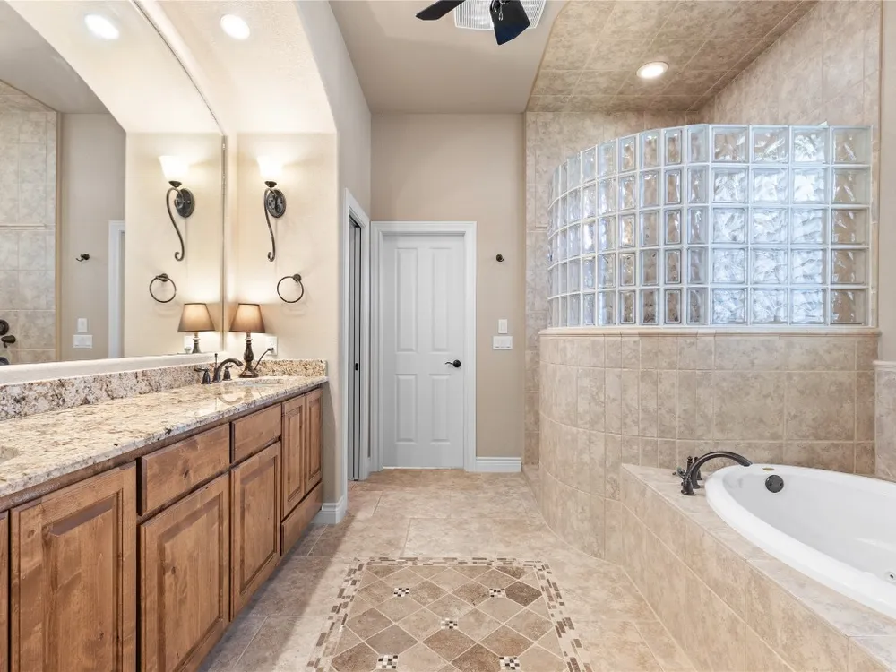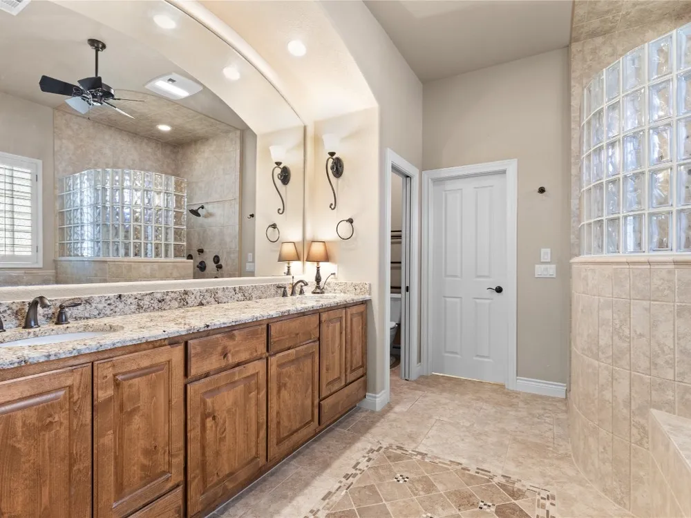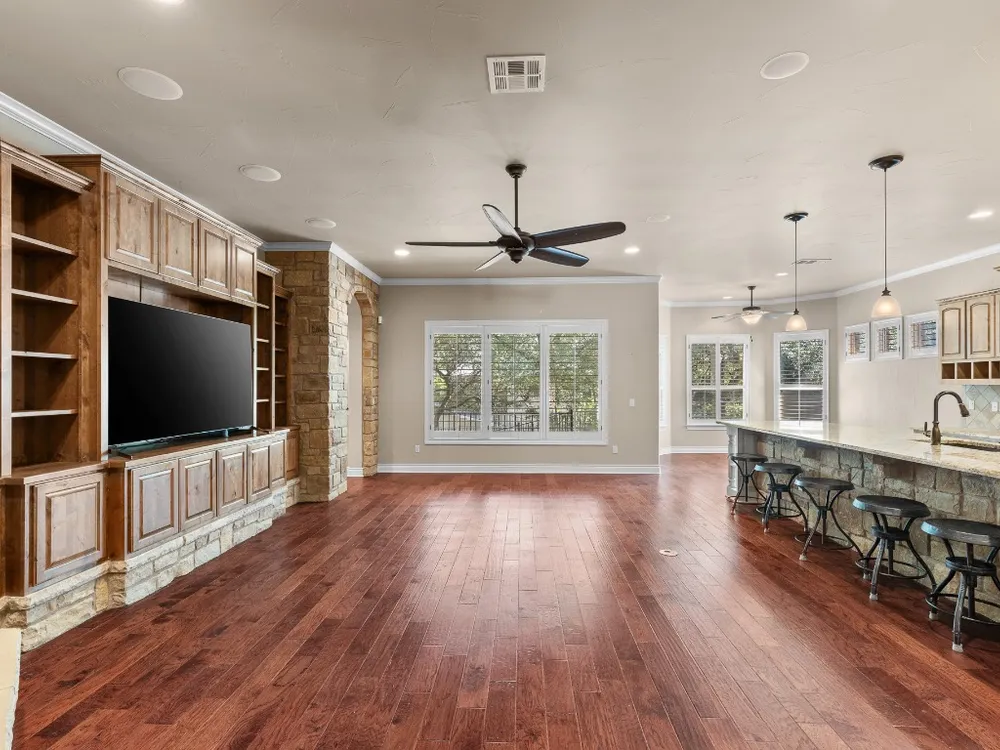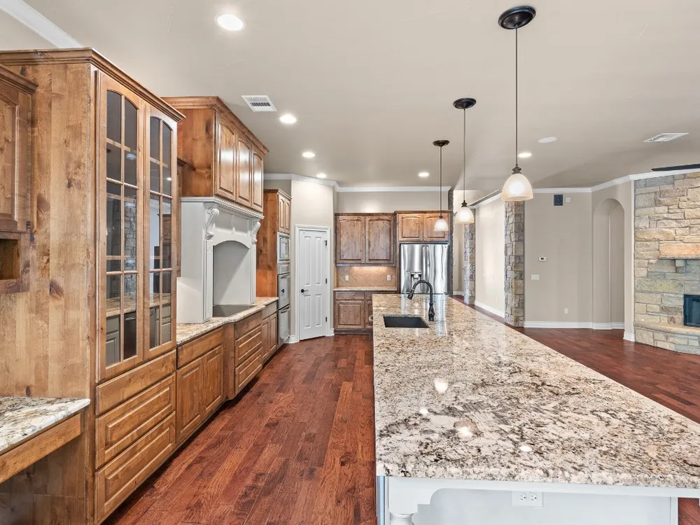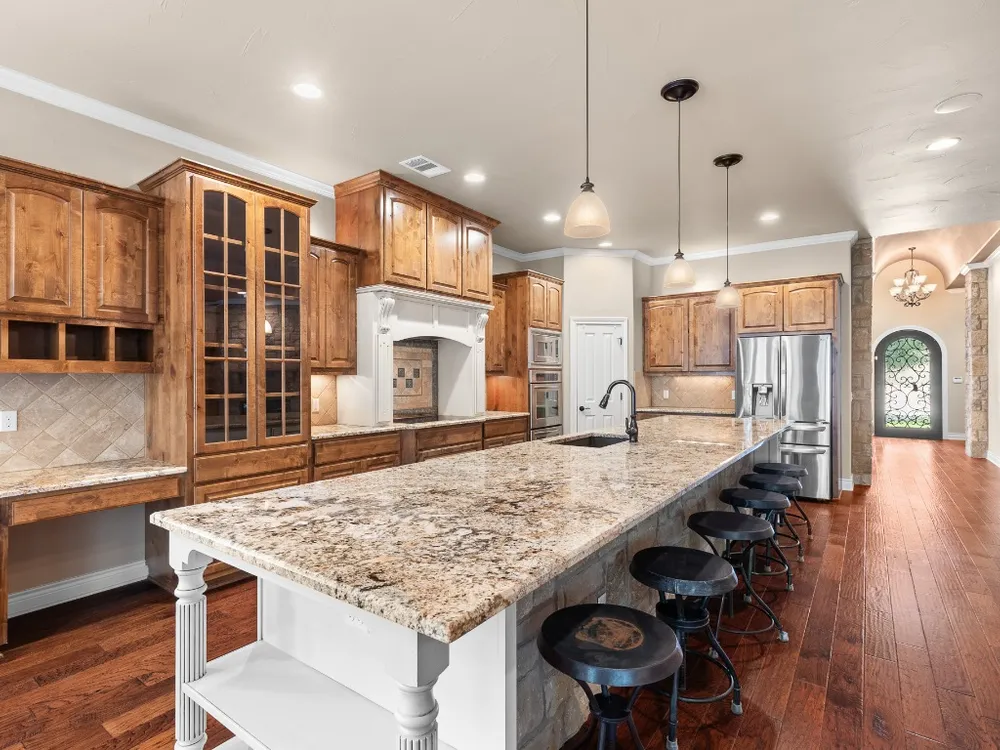 - Breakfast Bar, Bookcases, Built-in Features, Ceiling Fan(s), Separate/Formal Dining Room, Entrance Foyer, Granite Counters, Kitchen Island, Multiple Living Areas, Multiple Dining Areas, Multiple Primary Bathrooms, NoInteriorSteps, Pantry, Natural Woodwork, Walk-In Closet(s)
