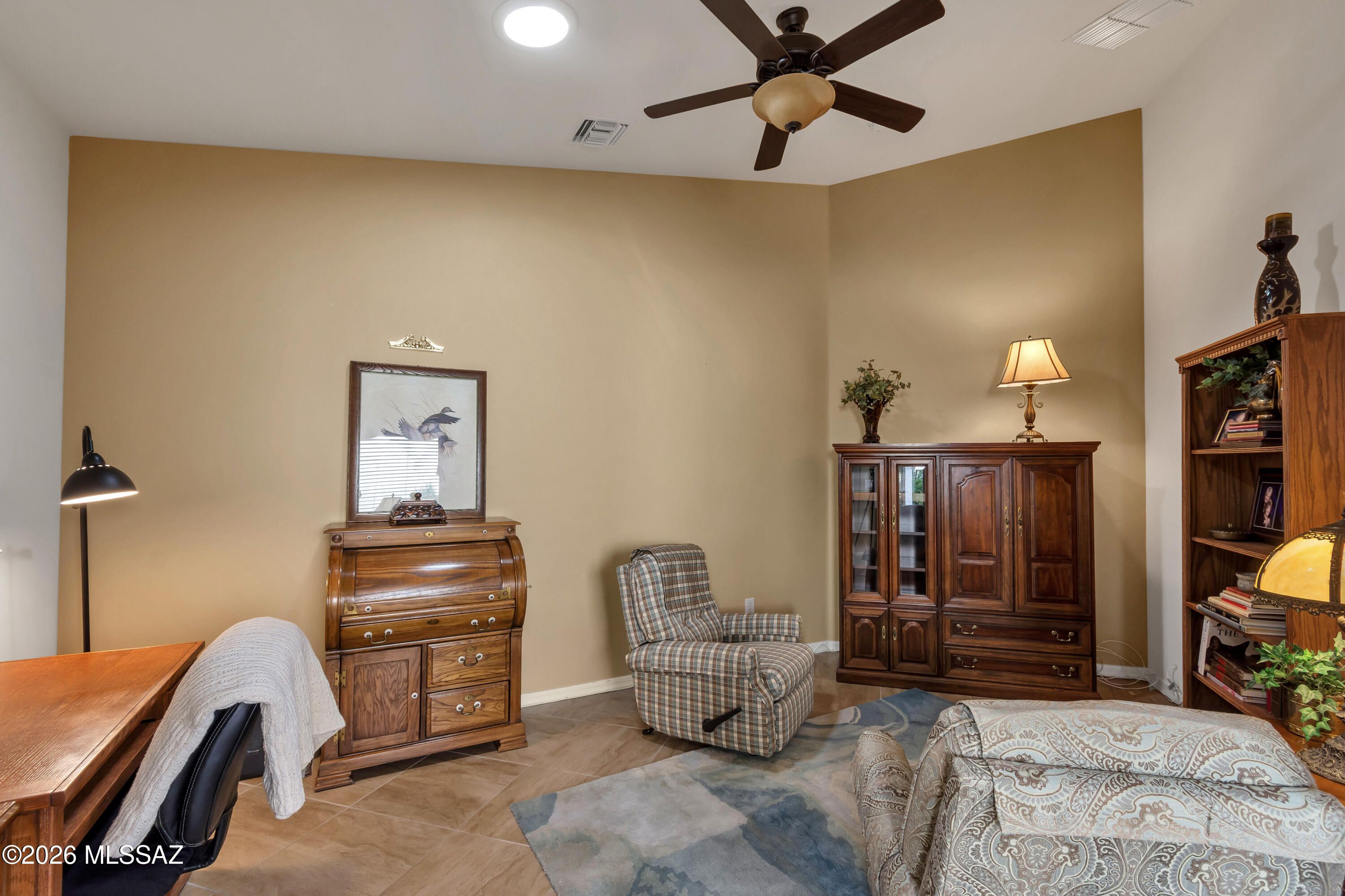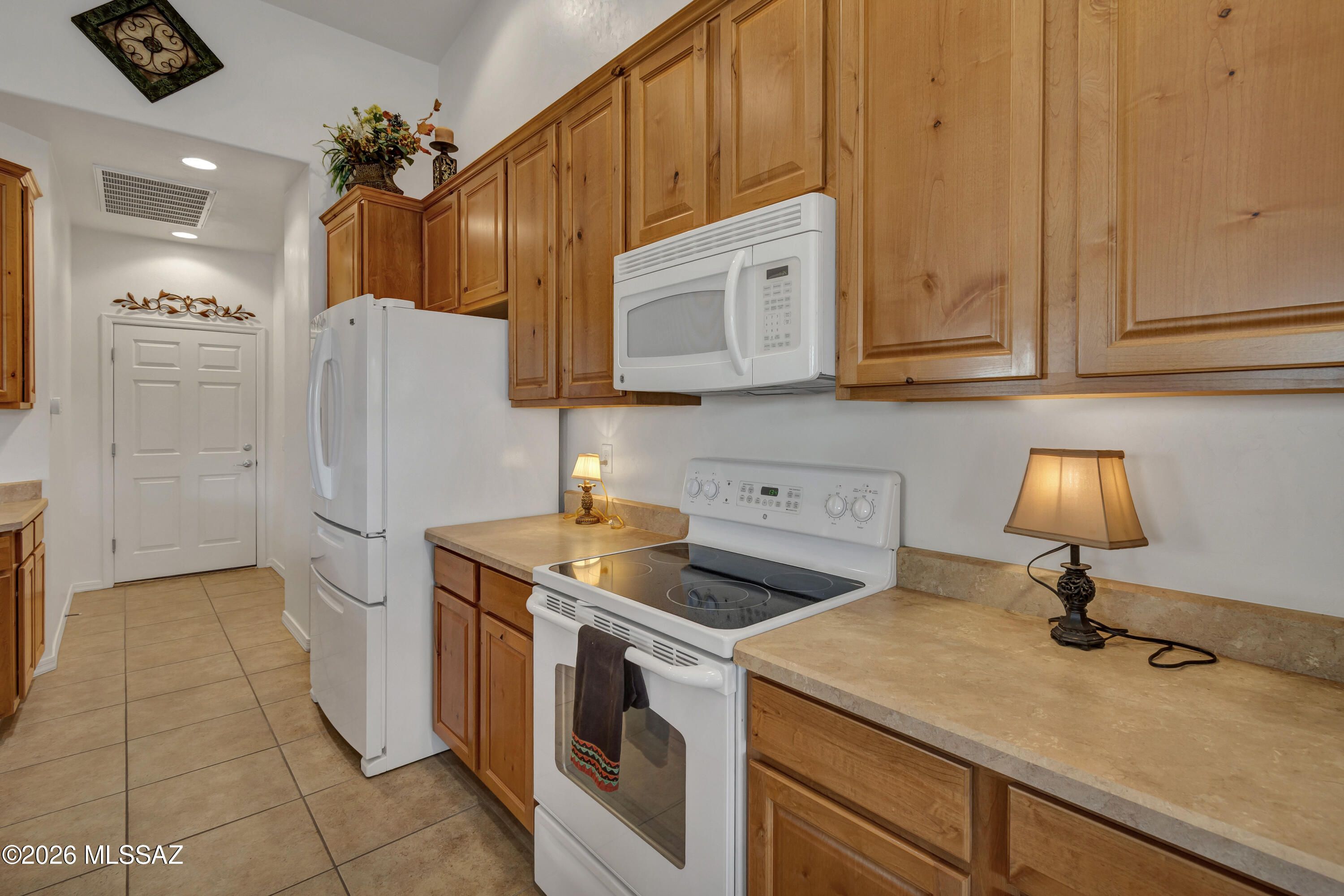 Welcome to your new home in Green Valley!! This home is situated at Las Campanas Village, a 55+ gated adult community where your monthly HOA covers exterior maintenance, paint, stucco, roof, front yard maintenance, irrigation, pest control, trash, and basic cable! This beautiful well cared for home features an open concept floor plan featuring 2 BR, 2 BA +Den. As you walk in from room to room, you will notice all the care that went into putting this home together, and making you feel welcome and at home. This well decorated home features neutral tile throughout and neutral soothing wall colors. The kitchen is perfect for entertaining with oversized cabinets,