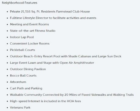 - Association Fee Includes: Fifty Five and Up Community, Clubhouse, Fitness Center, Pool, Sidewalks, Tennis Court(s), Underground Utilities, Trail(s), Cable TV, Maintenance Grounds, Internet, Recreation Facilities