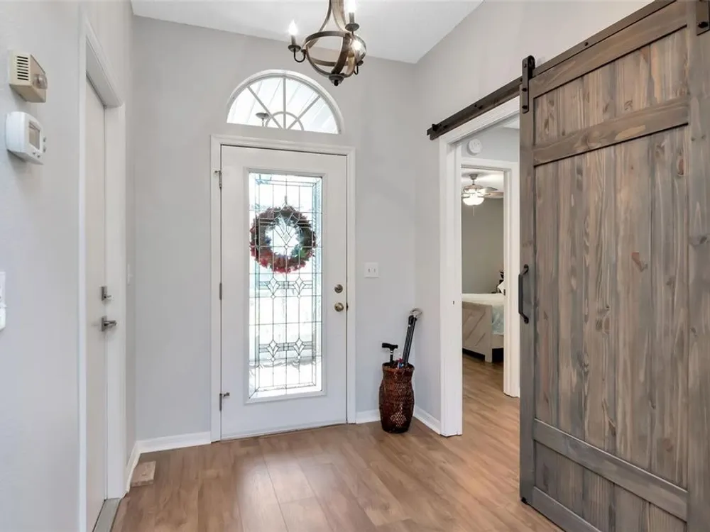 - Ceiling Fan(s), Eat-in Kitchen, Living/Dining Room, Open Floorplan, Main Level Primary, Solid Surface Counters, Split Bedrooms, Thermostat, Walk-In Closet(s)