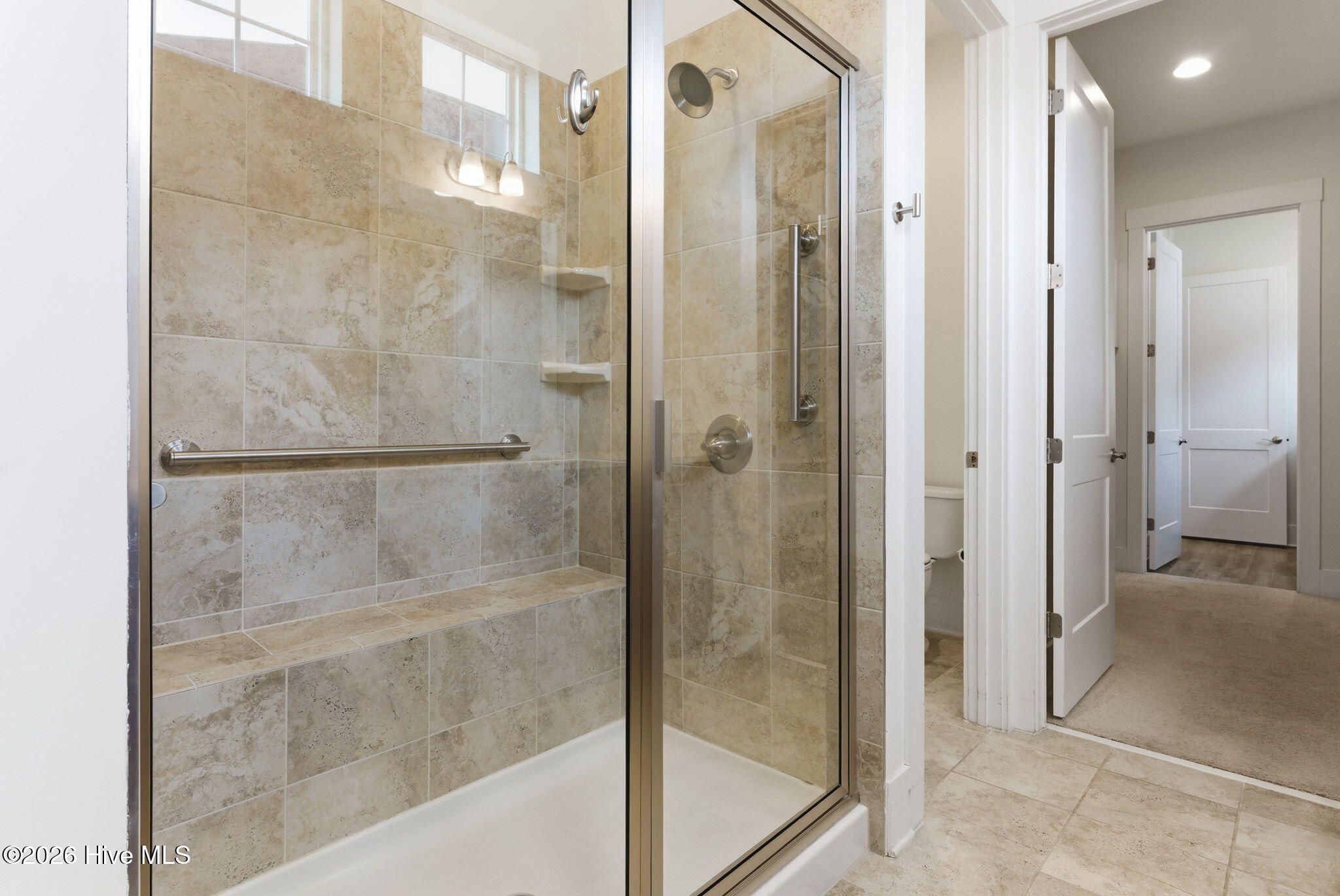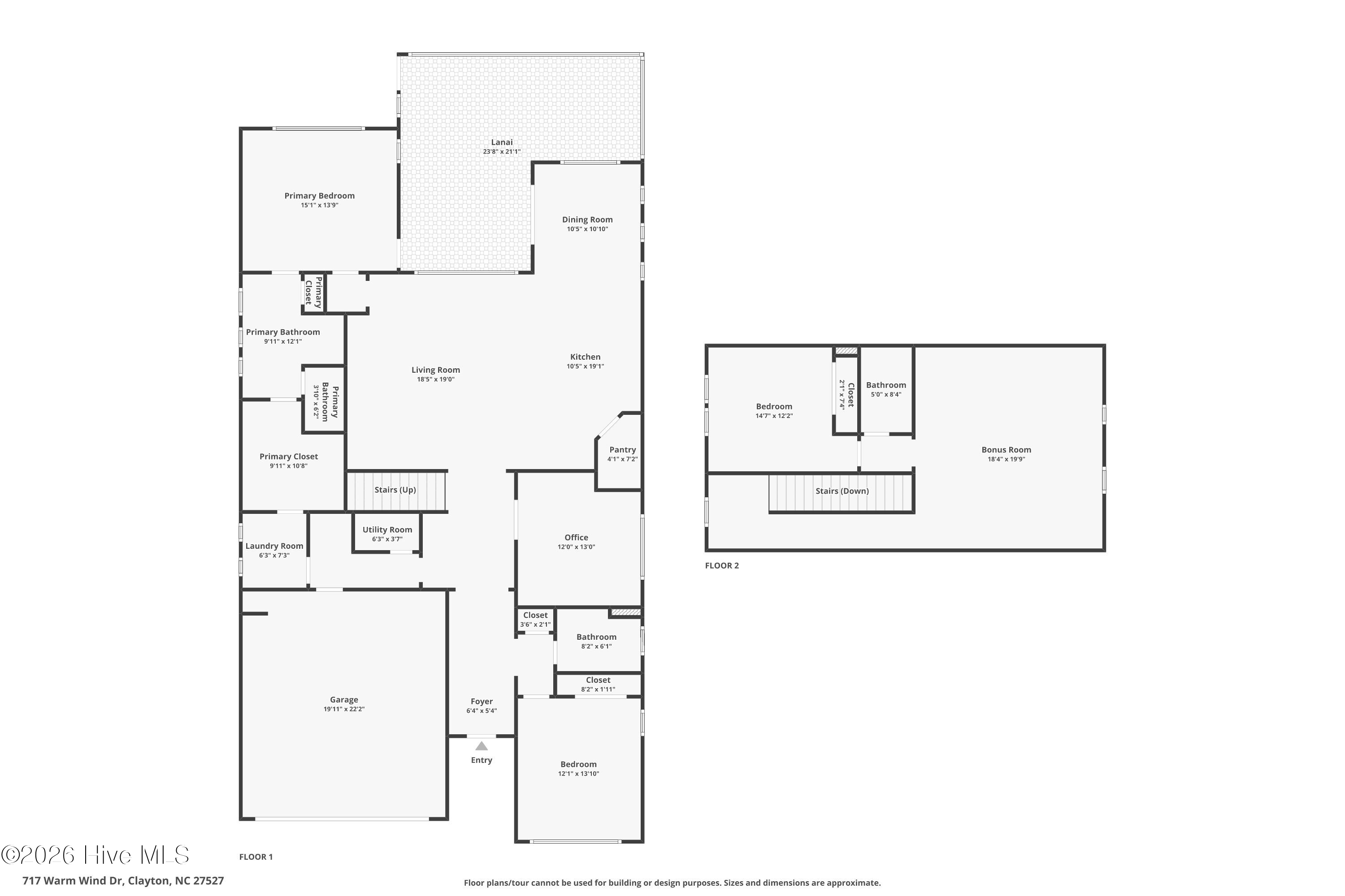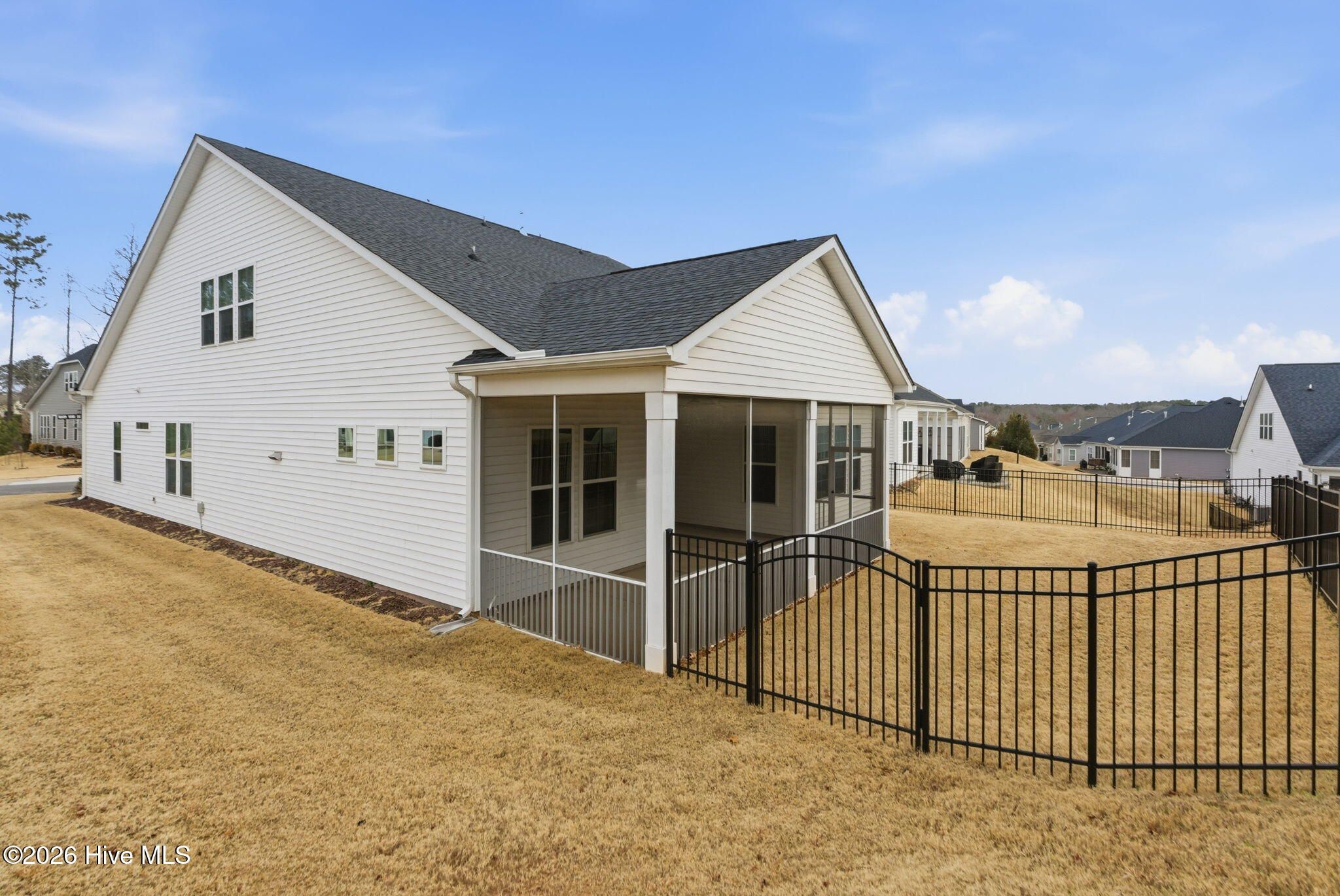 Located in the sought-after 55+ community of Forge Creek at Flowers Plantation in Clayton, this beautifully designed home offers space, comfort, and convenience in one of the area's most desirable active adult neighborhoods. The well-planned layout lives primarily on the main floor, offering both functionality and flexibility for everyday living. Inside, soaring ceilings and an open floor plan create a bright, airy feel throughout the main living areas. A charming office just off the foyer provides the perfect work-from-home space. The kitchen anchors the home with granite countertops, stainless steel appliances, a gas range with tile backsplash, a large island, and an oversized pantry for ample storage. The kitchen flows seamlessly into the dining area and family room, creating an ideal space for both everyday living and entertaining. The main-floor primary suite offers privacy and comfort, featuring a massive custom walk-in closet and a beautifully appointed bathroom with a glass-tiled shower and separate water closet. The suite also opens directly onto the expansive screened porch overlooking the large backyard--perfect for morning coffee or relaxed evenings outdoors. Also on the main level, you'll find a convenient laundry room, an additional bedroom, and a full bathroom, providing flexible space for guests. Upstairs, a spacious bonus room offers endless possibilities for movie nights, game days, or a second living area, along with an adjacent bedroom and full bathroom that create a private retreat ideal for visiting family and friends. A two-car garage adds practical storage and parking space, completing the home's thoughtful design. As part of Forge Creek at Flowers Plantation, residents enjoy an active lifestyle with community amenities just one block away, including a park with dog parks, bocce ball courts, a scenic pond, and walking trails. You're also just minutes from Harris Teeter, shopping, and local restaurant
