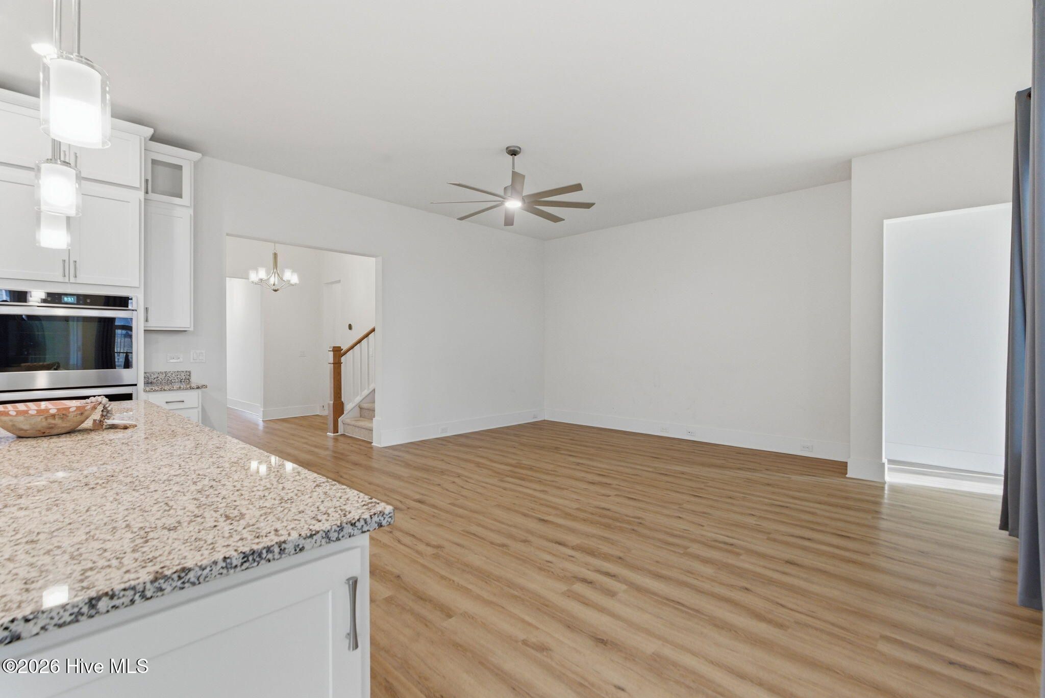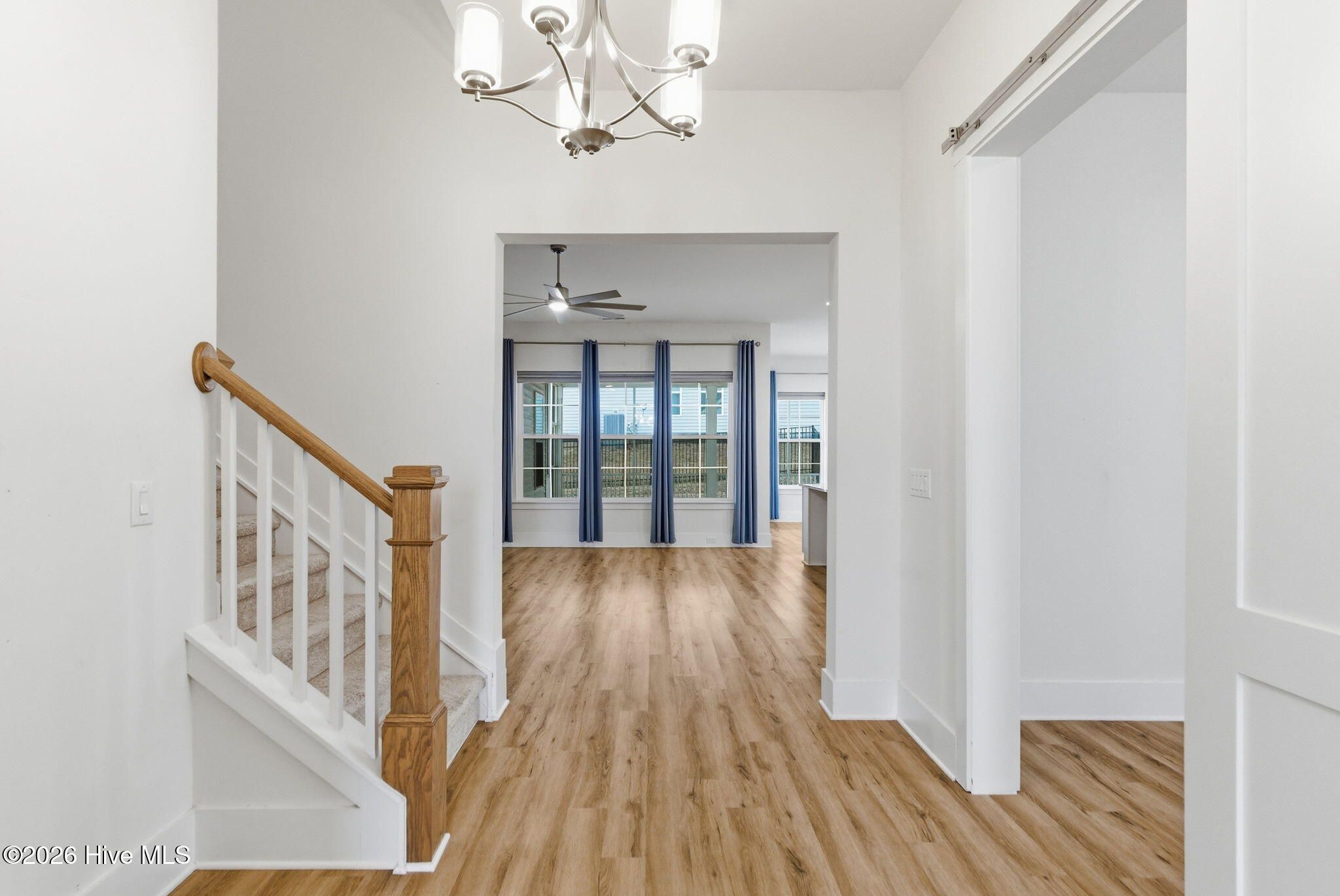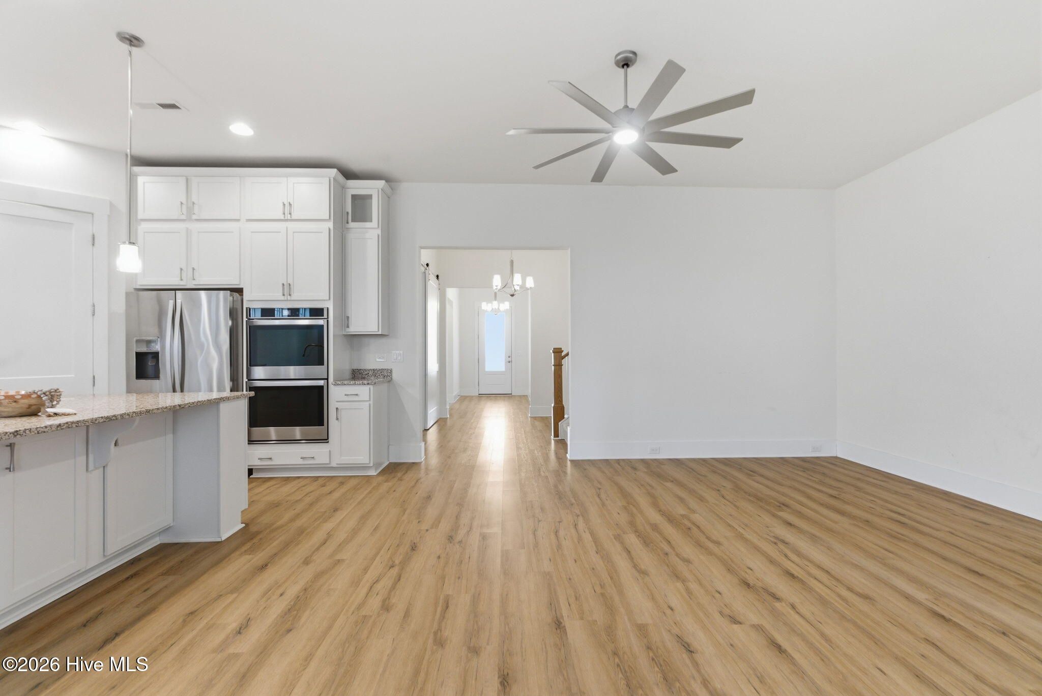 - Master Downstairs, Walk-In Closet(s), High Ceilings, Entrance Foyer, Kitchen Island, Ceiling Fan(s), Pantry, Walk-In Shower, Blinds