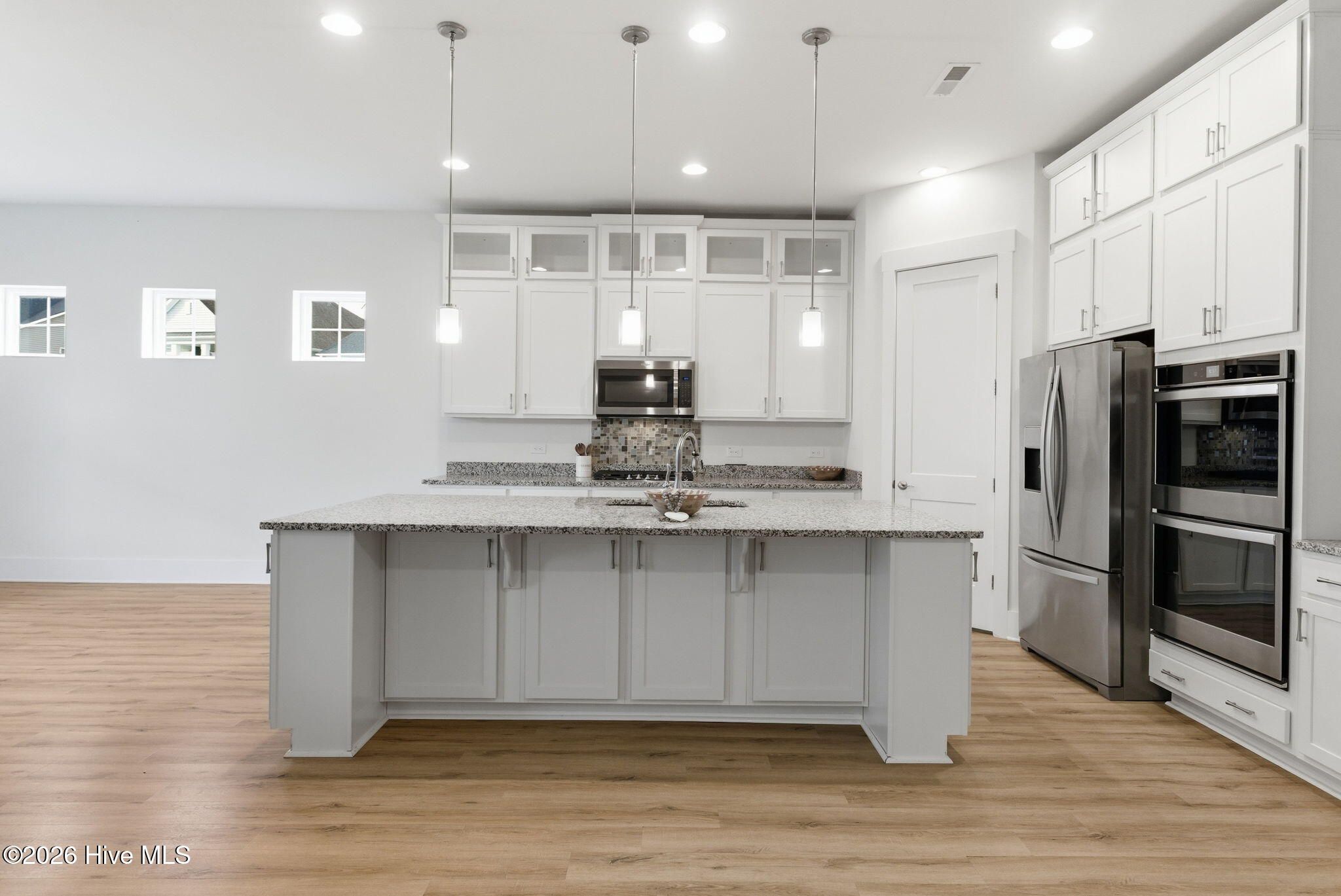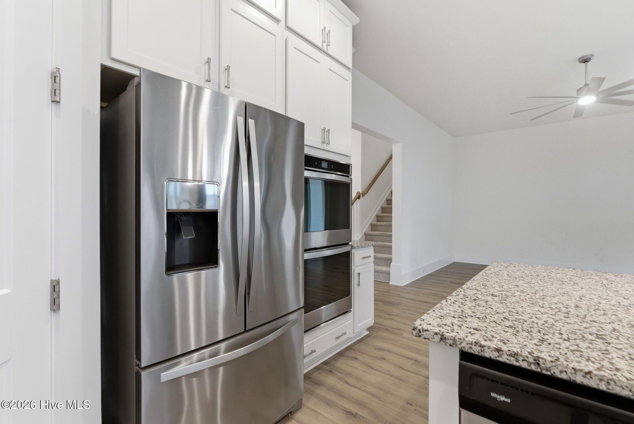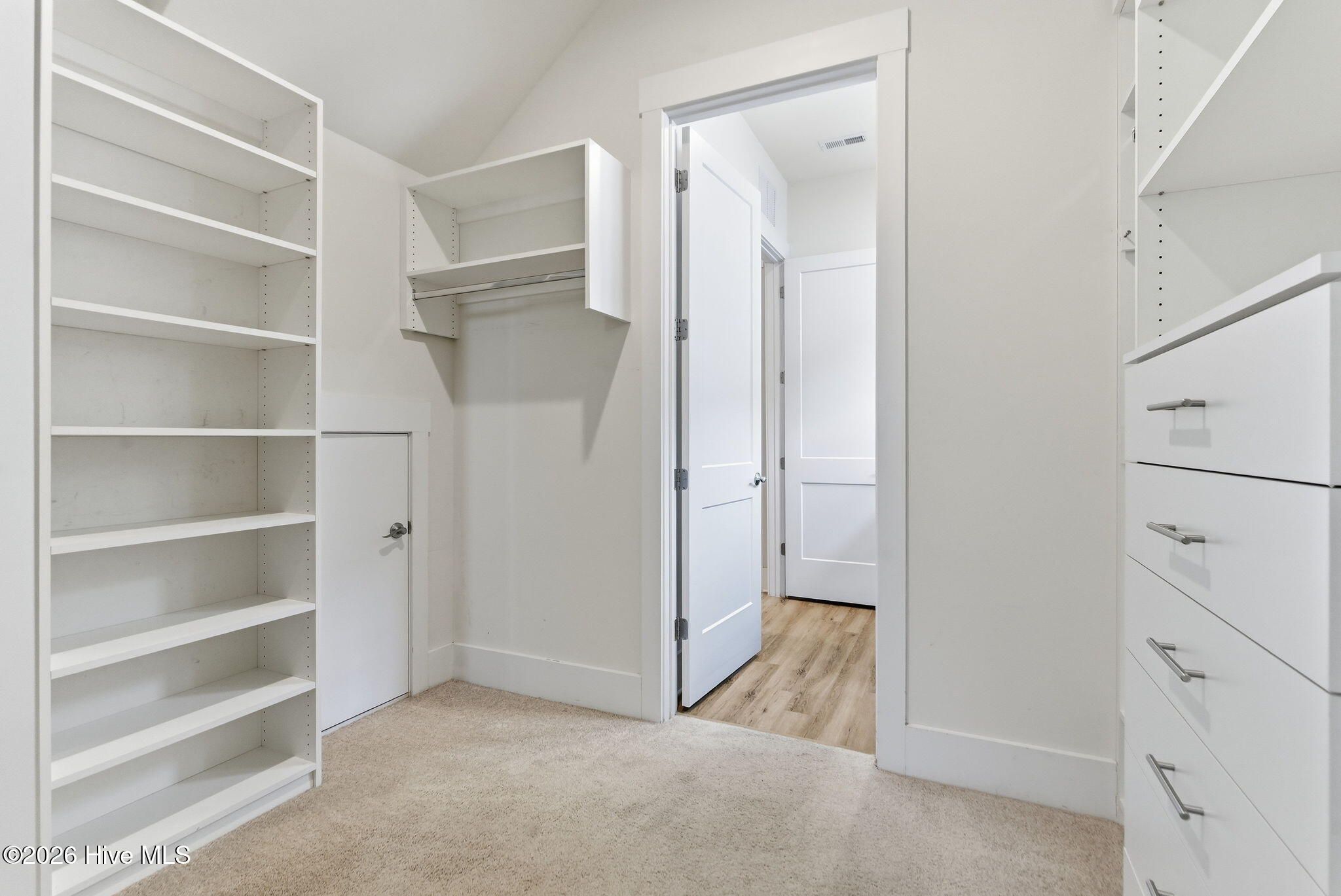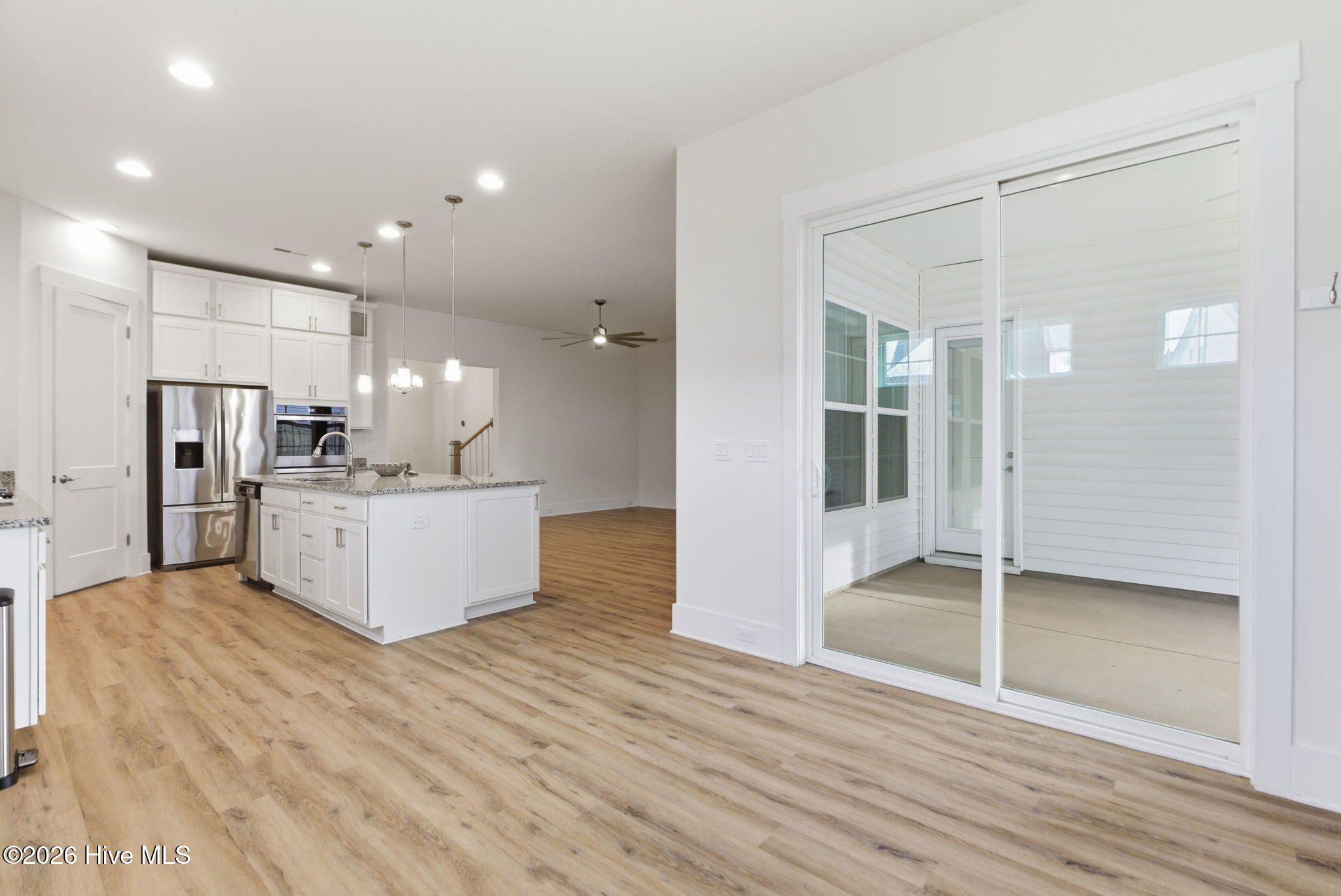 - Master Downstairs, Walk-In Closet(s), High Ceilings, Entrance Foyer, Kitchen Island, Ceiling Fan(s), Pantry, Walk-In Shower, Blinds